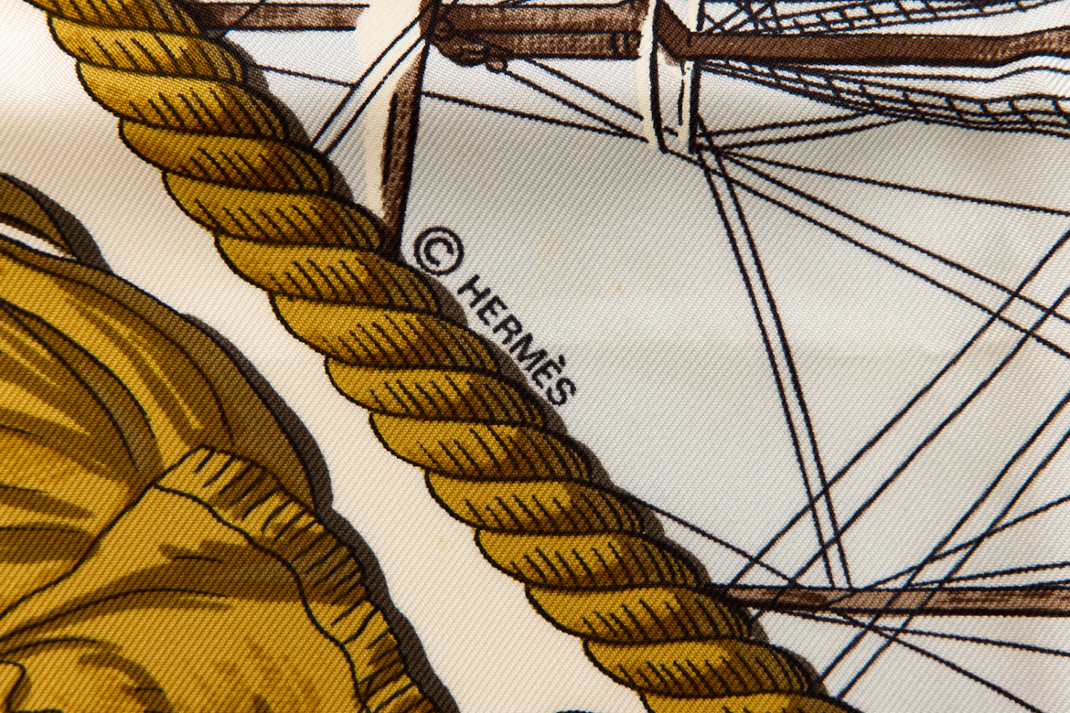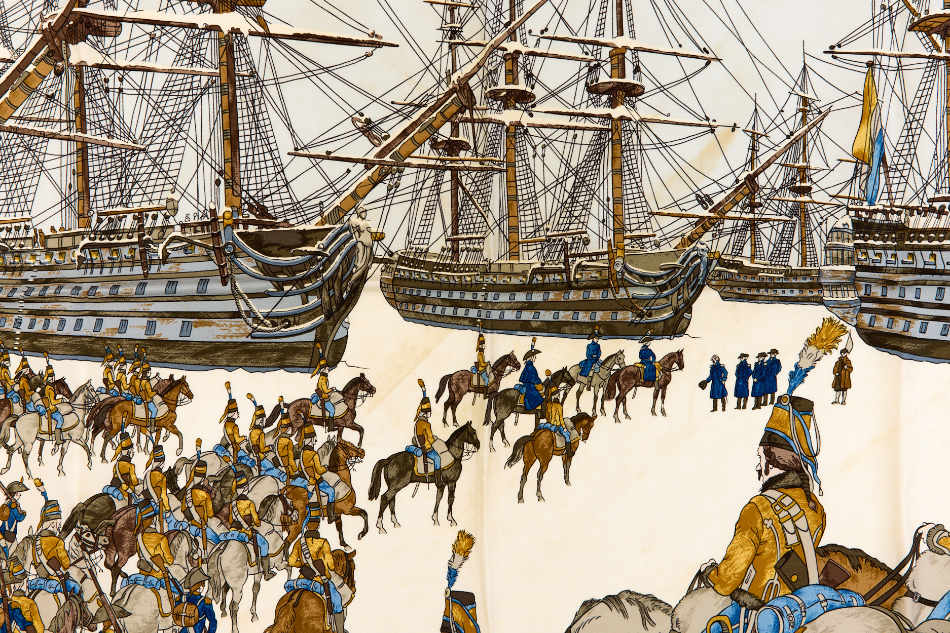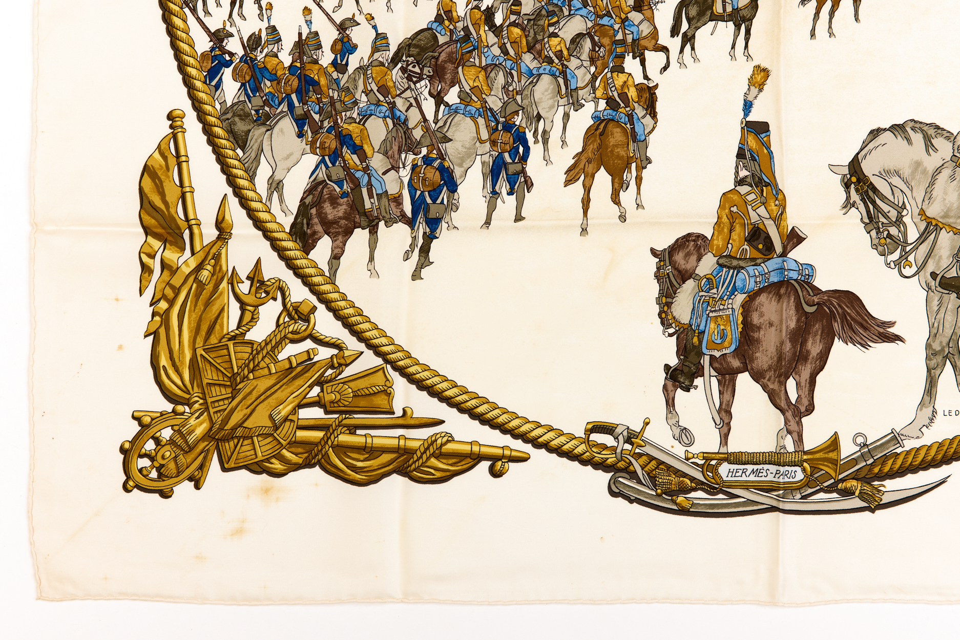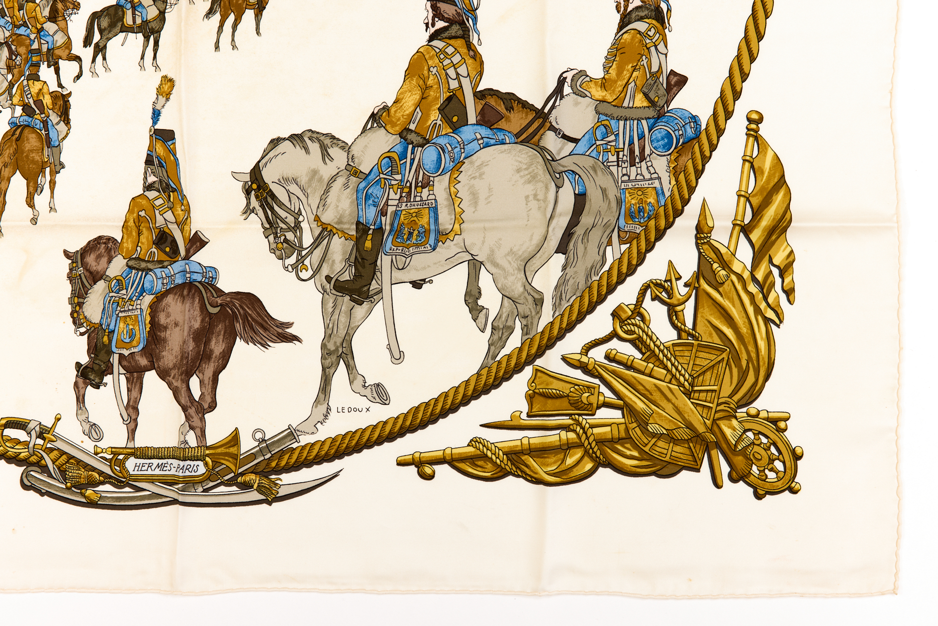 Hermes Silk Scarf Carre 90 “Marine et Cavalerie” White Silk Scarf