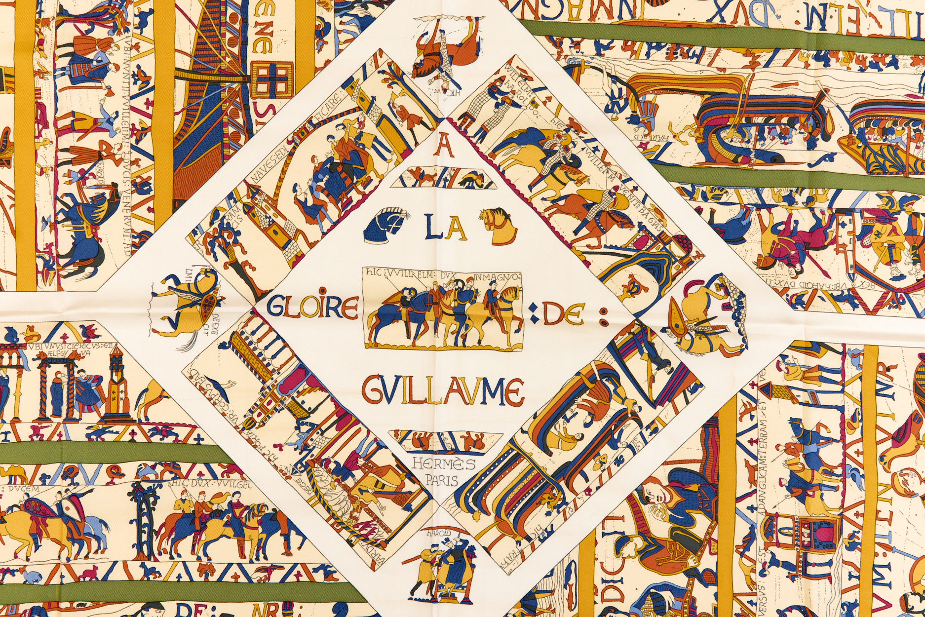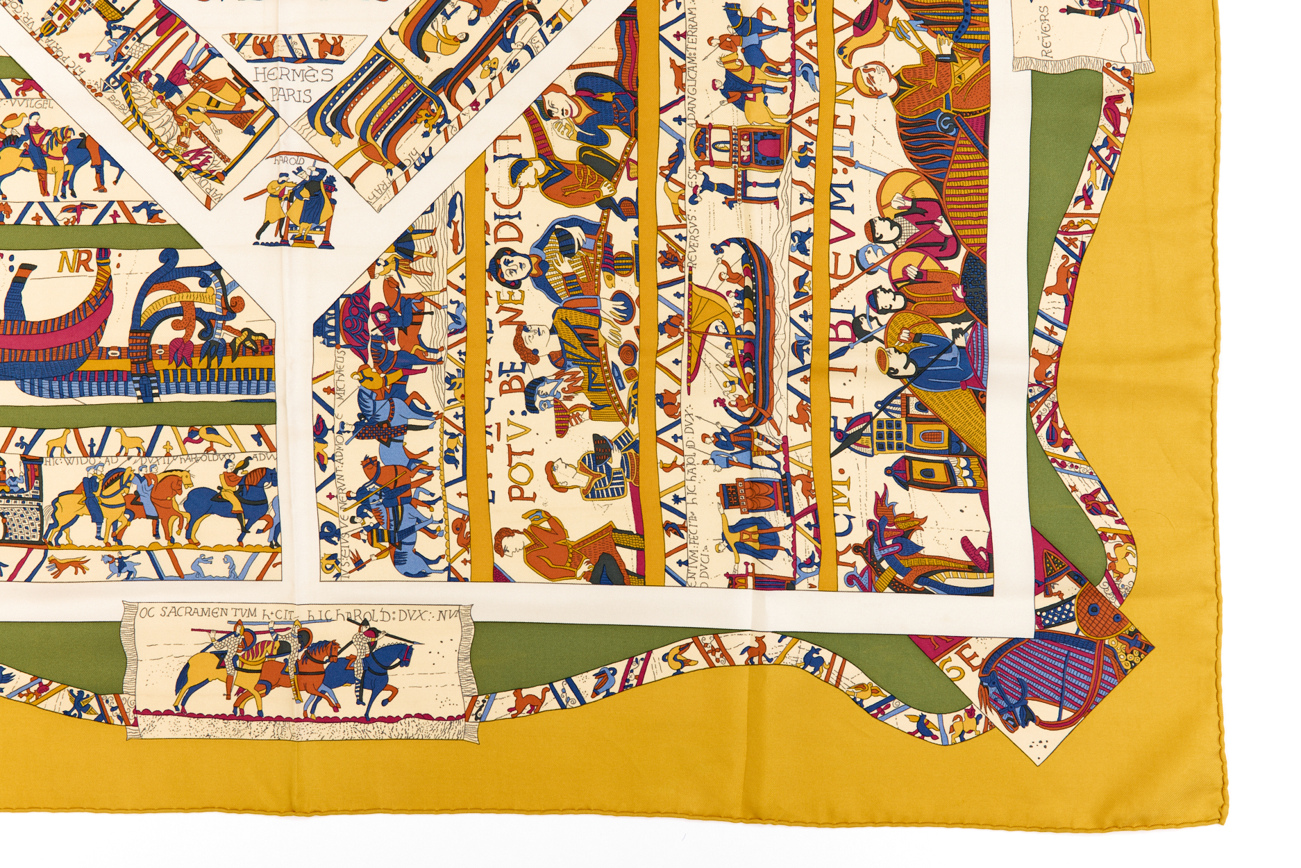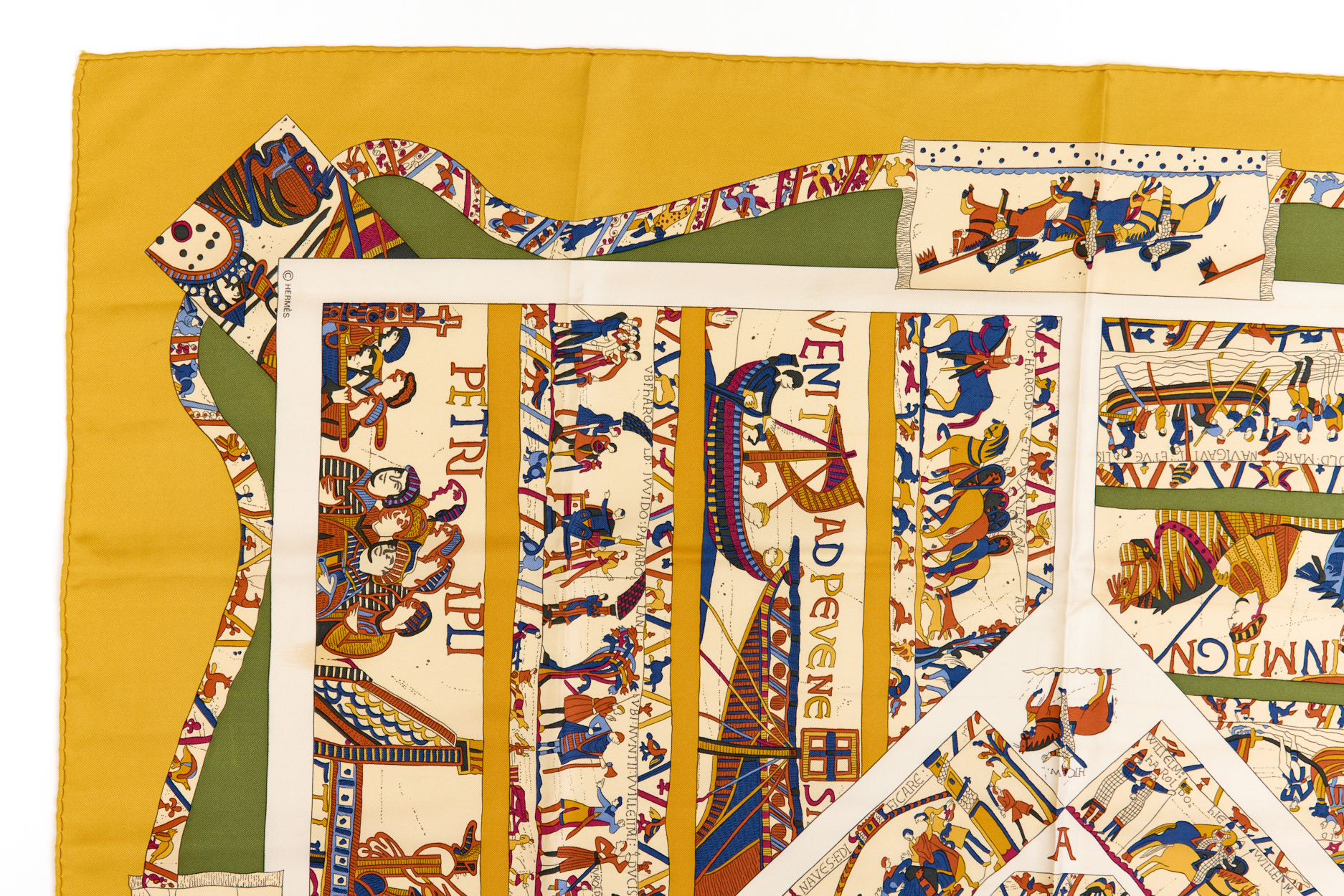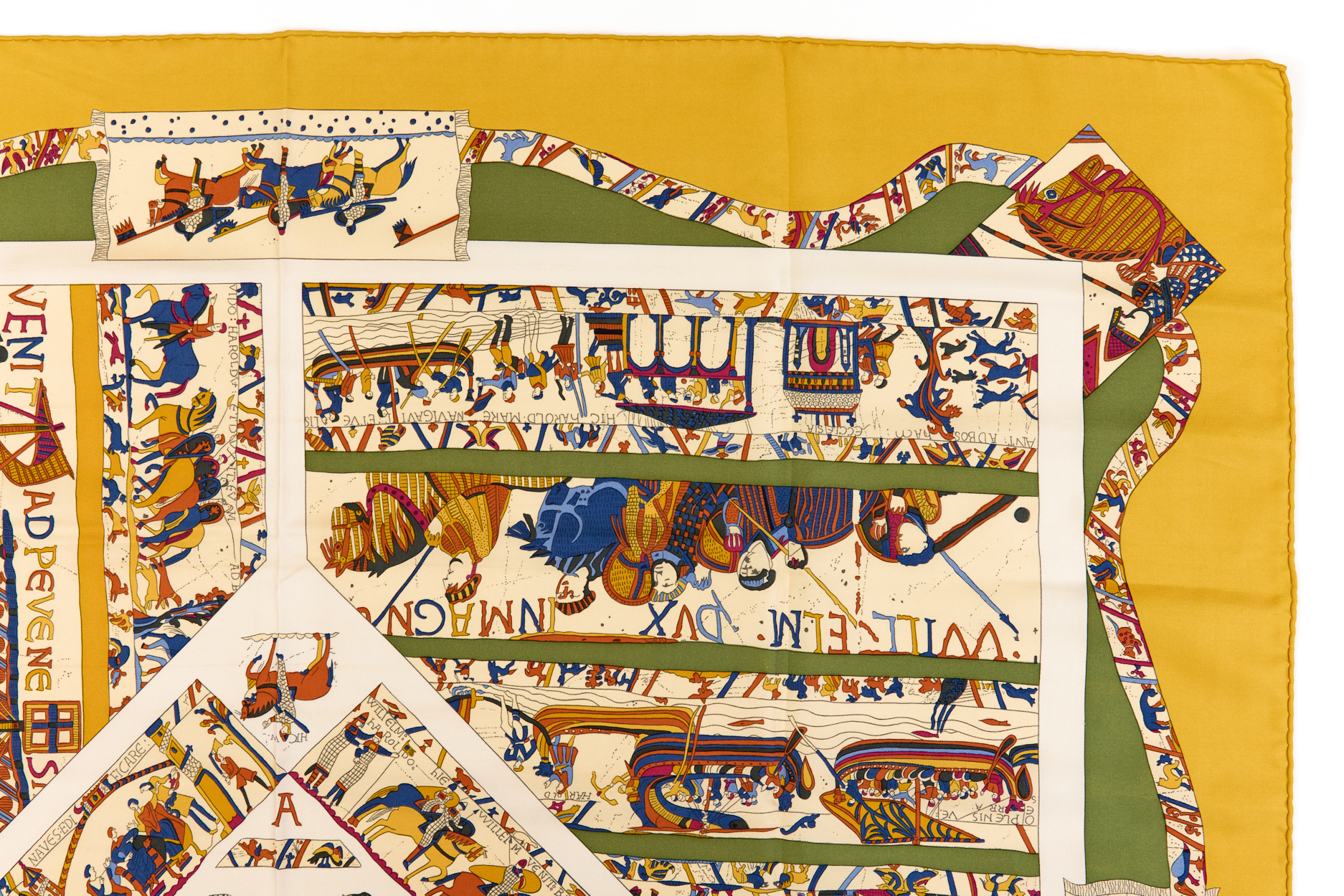 Hermes Silk Scarf Carre 90 “A LA GLOIRE DE GVILLAVME” Yellow Silk Scarf