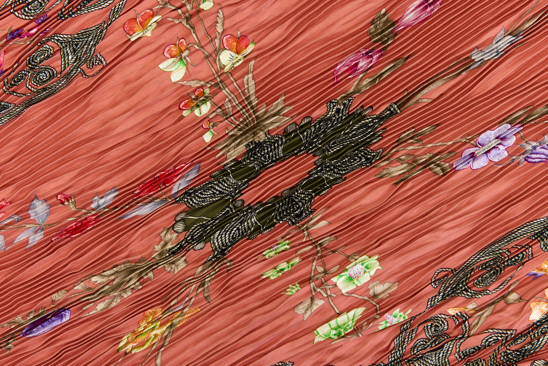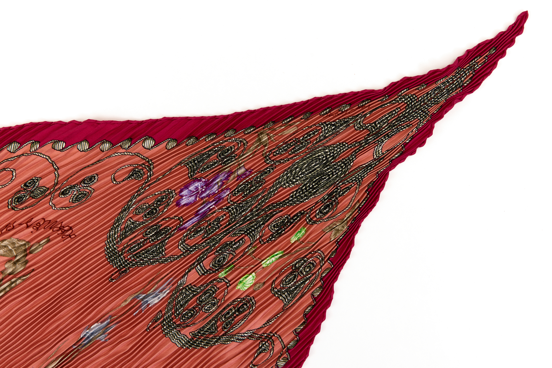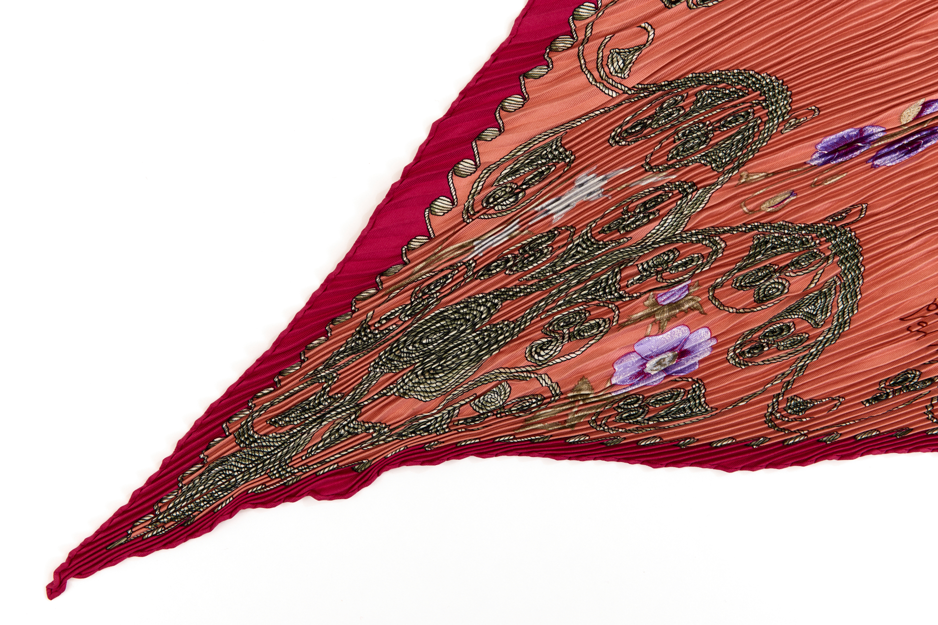 Hermes Silk Scarf Carre 90 “ARABESQUES” Pink,Red Silk Pleats Scarf