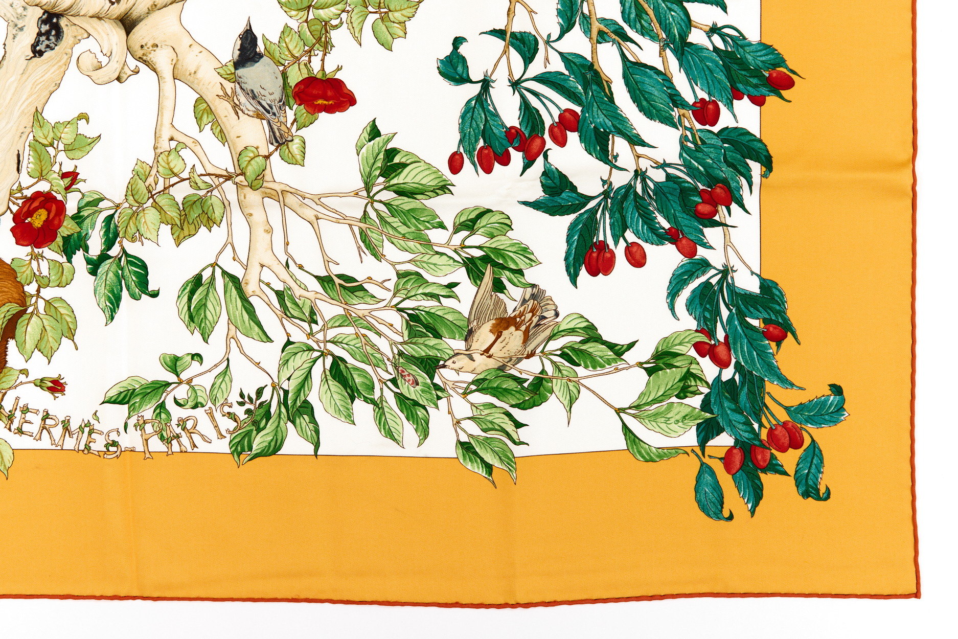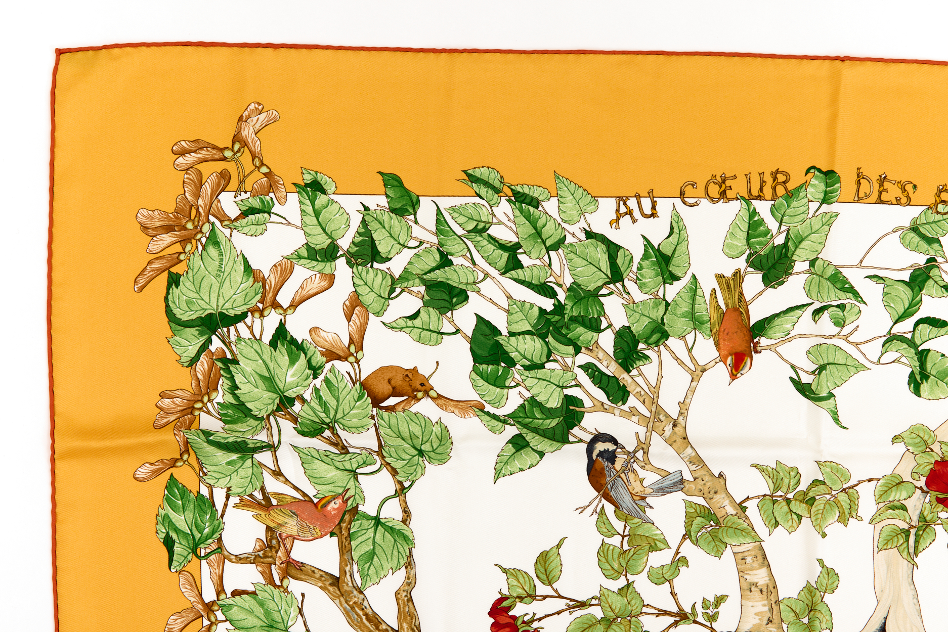 Hermes Silk Scarf Carre 90 “AU COEUR DES BOIS” Yellow Silk Scarf