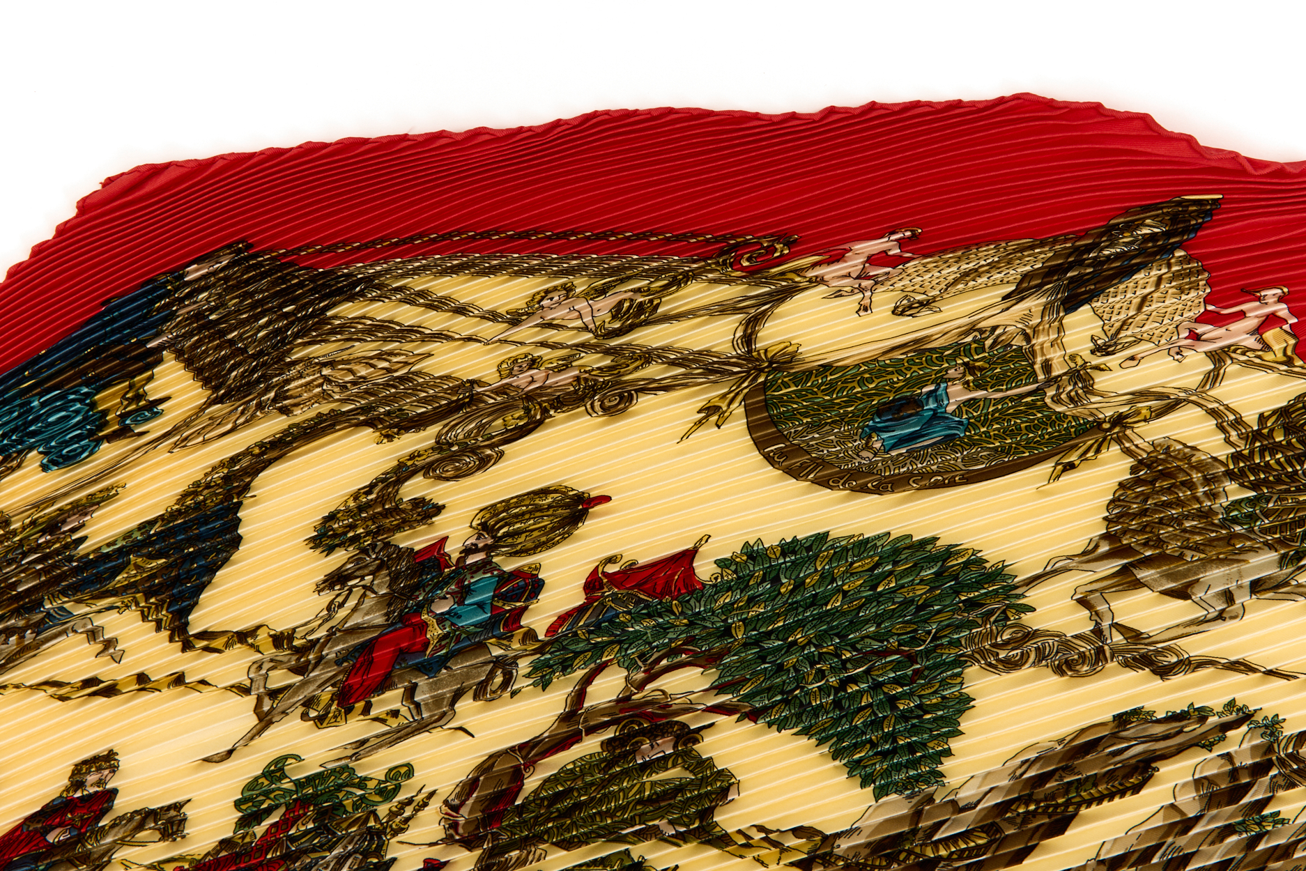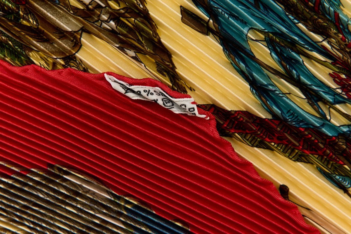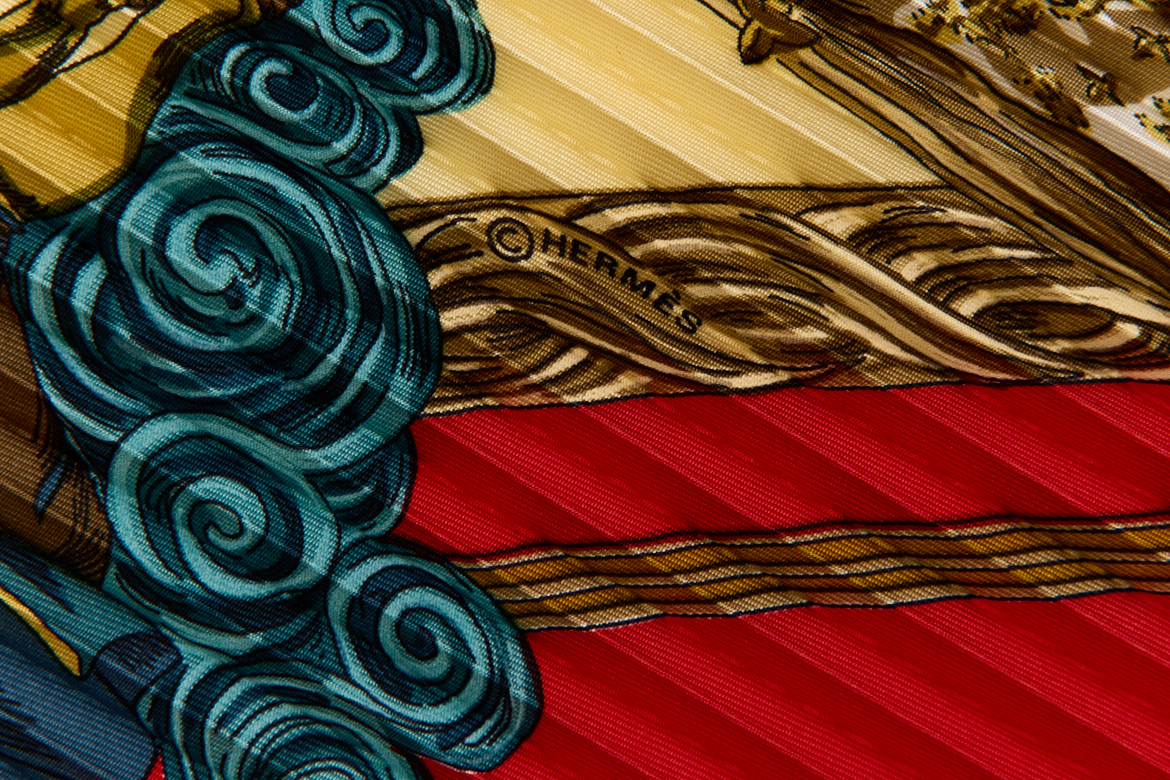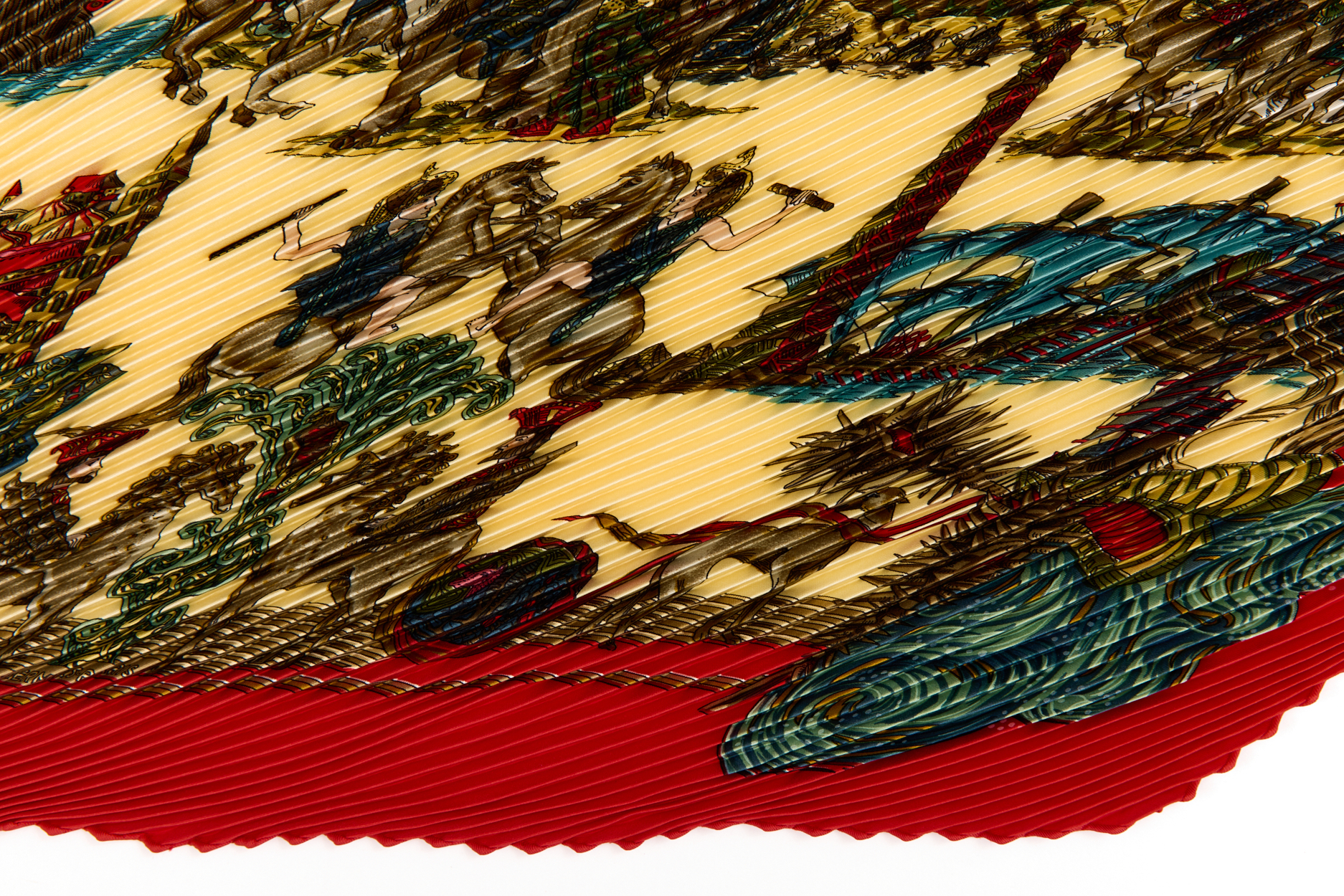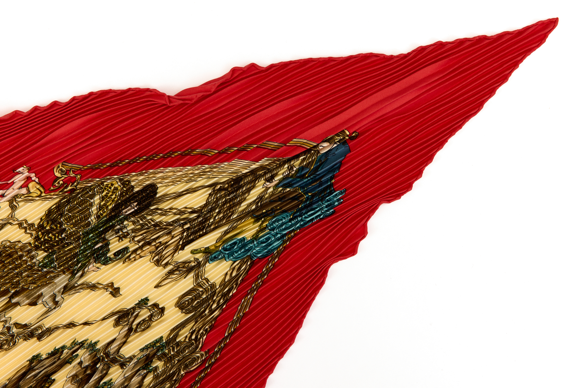 Hermes Silk Scarf Carre 90 “Au FIL de la SOIE” Red Silk Pleats Scarf with Box
