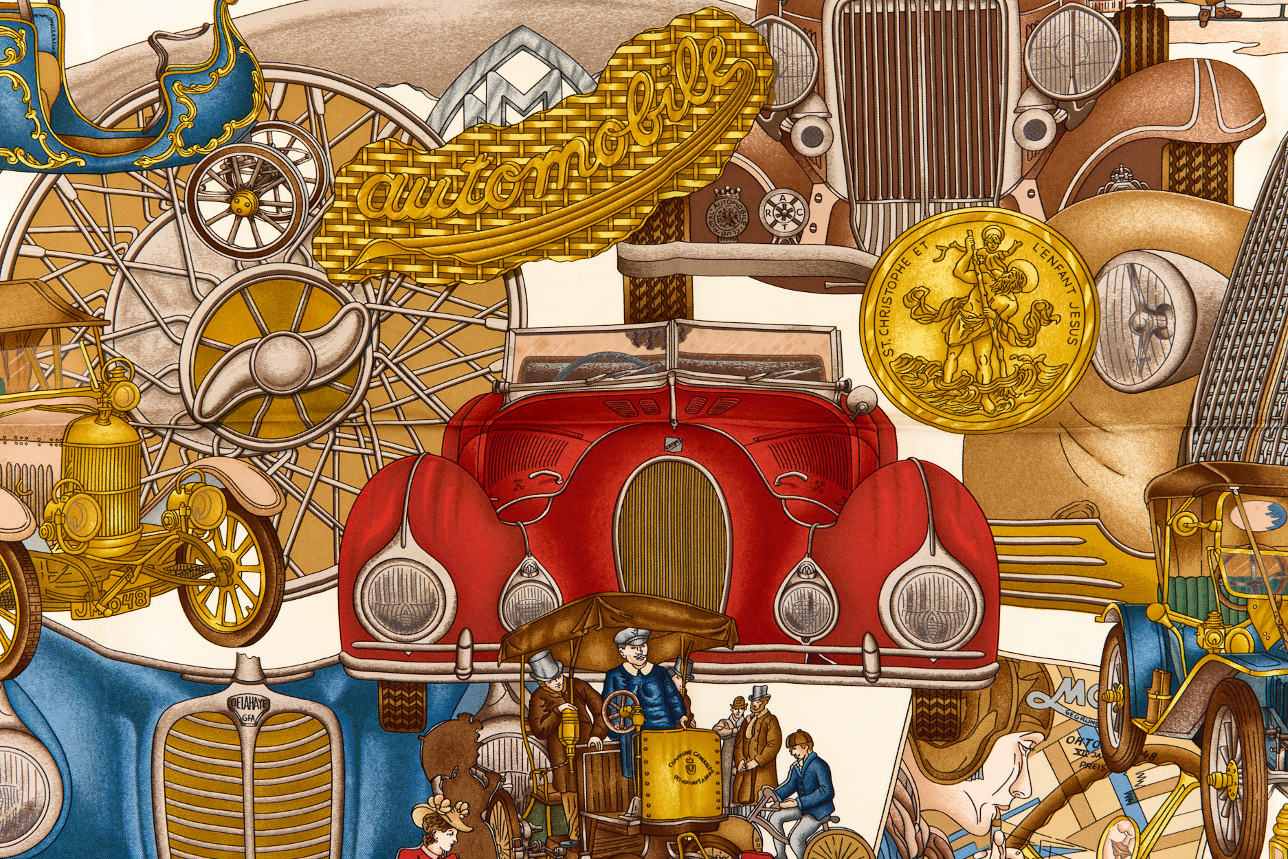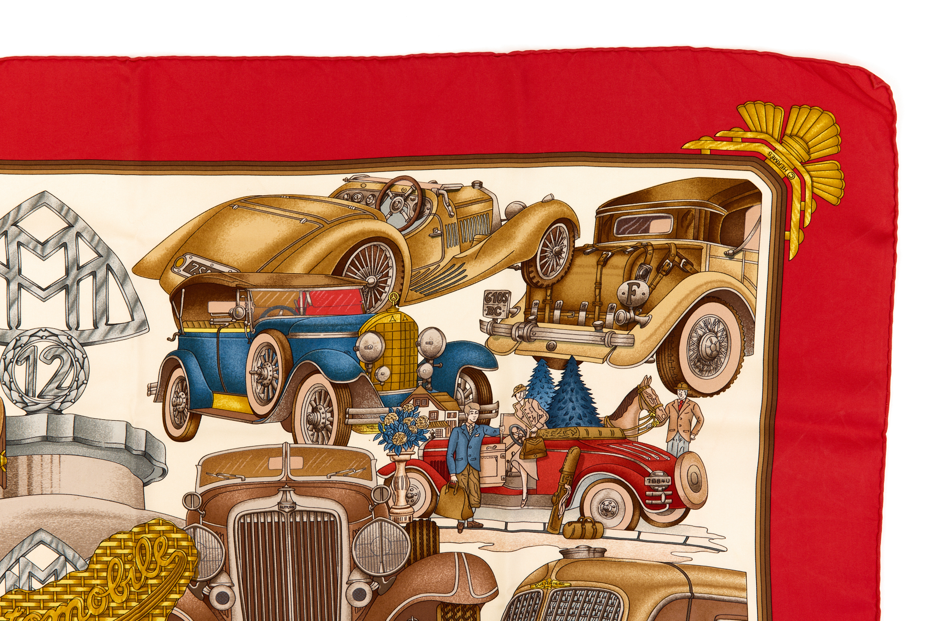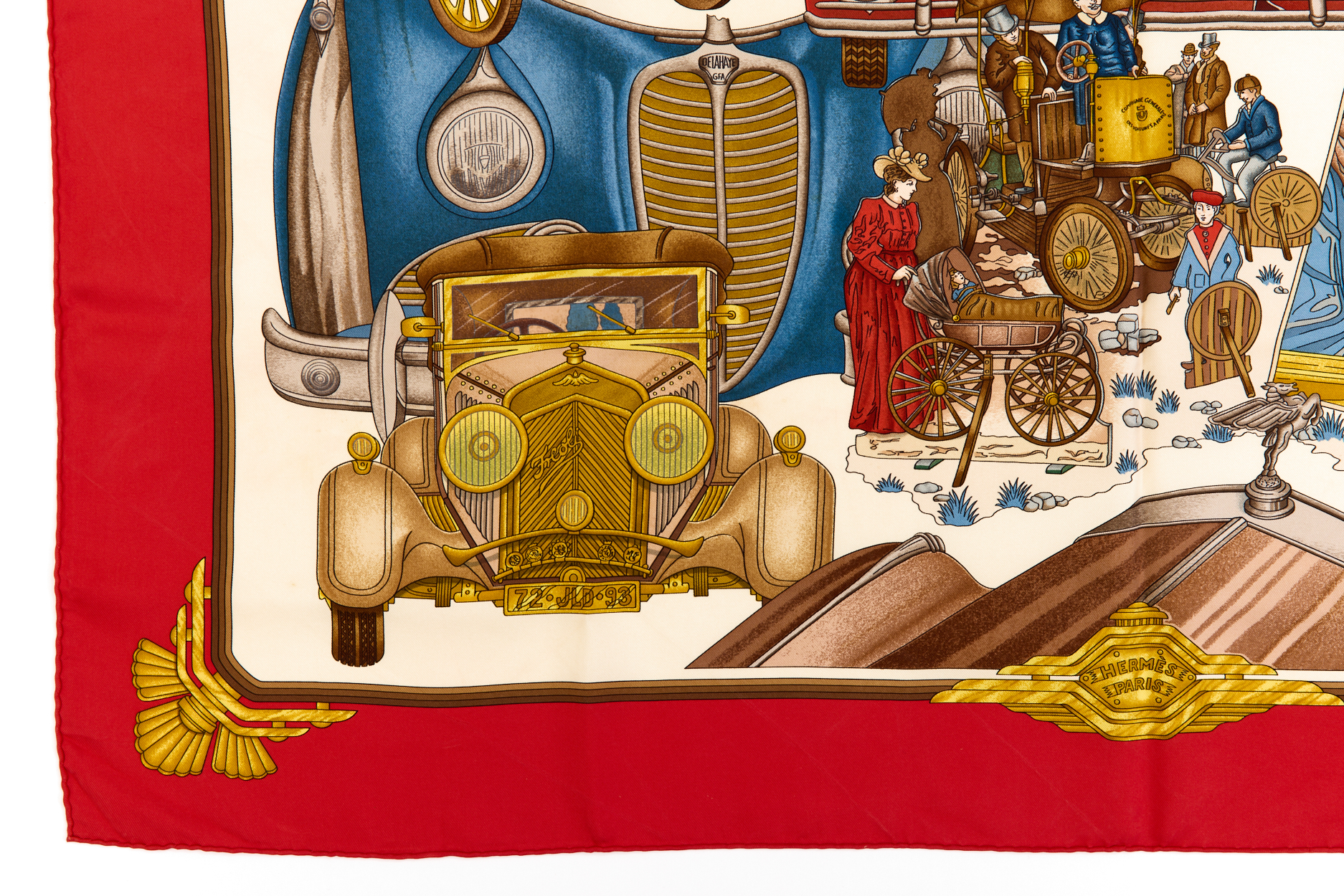 Hermes Silk Scarf Carre 90 “Automobile” Red Silk Scarf