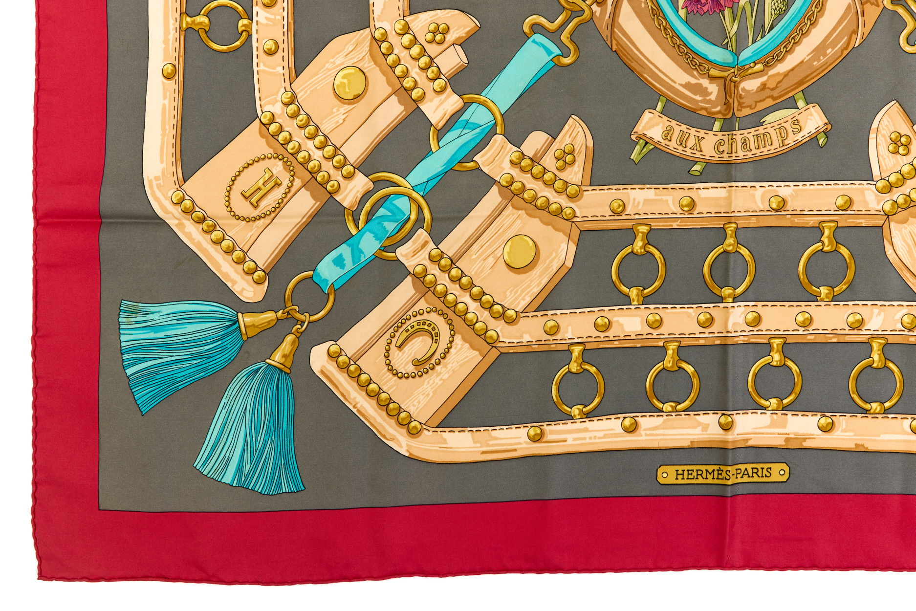 Hermes Silk Scarf Carre 90 “aux champs” Red Silk Scarf Brand : HERMESDesign by Cathy Latham Issued 1970Item : ScarfSize : 88.5cm * 88.5cmMaterial : 100% SilkCondition Score: B+*For reference. The condition shown in the image takes precedence.*Please see the last two photos to see if the tag is still attached