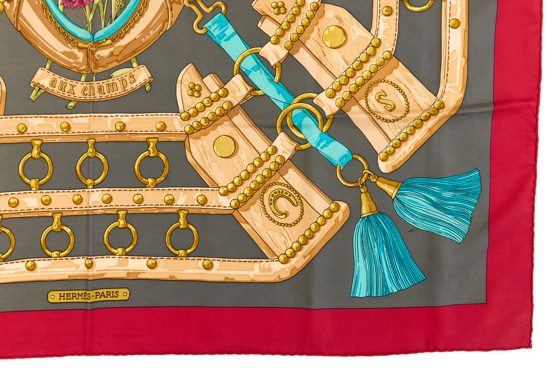 Hermes Silk Scarf Carre 90 “aux champs” Red Silk Scarf
