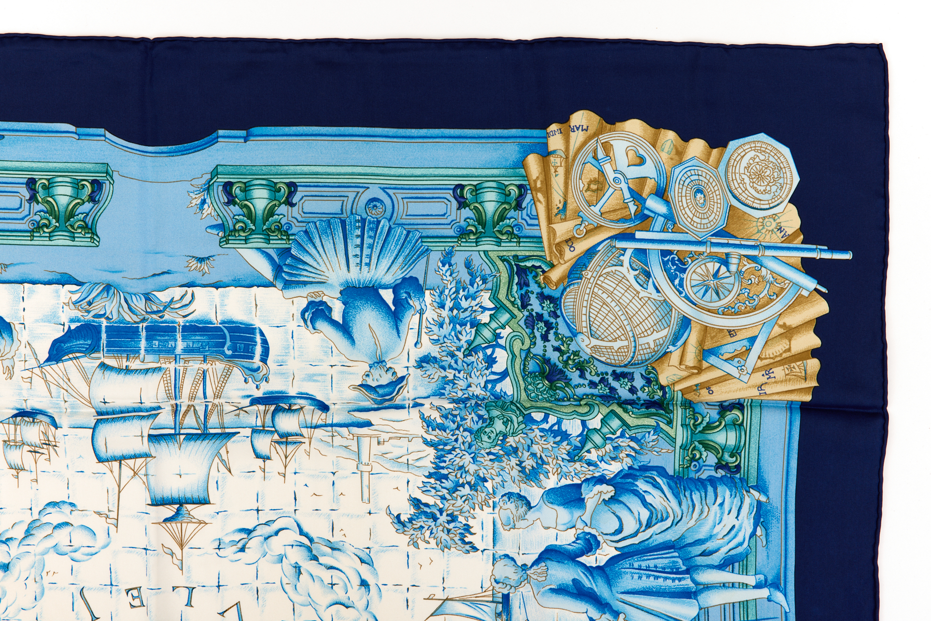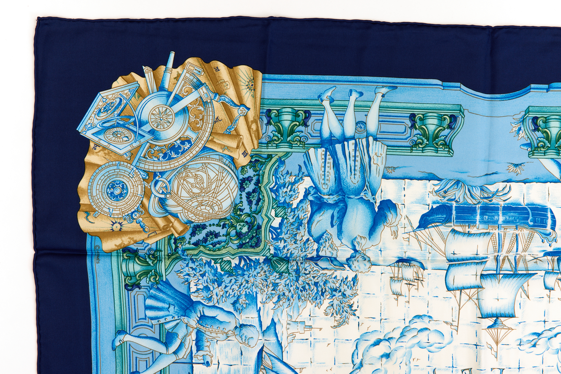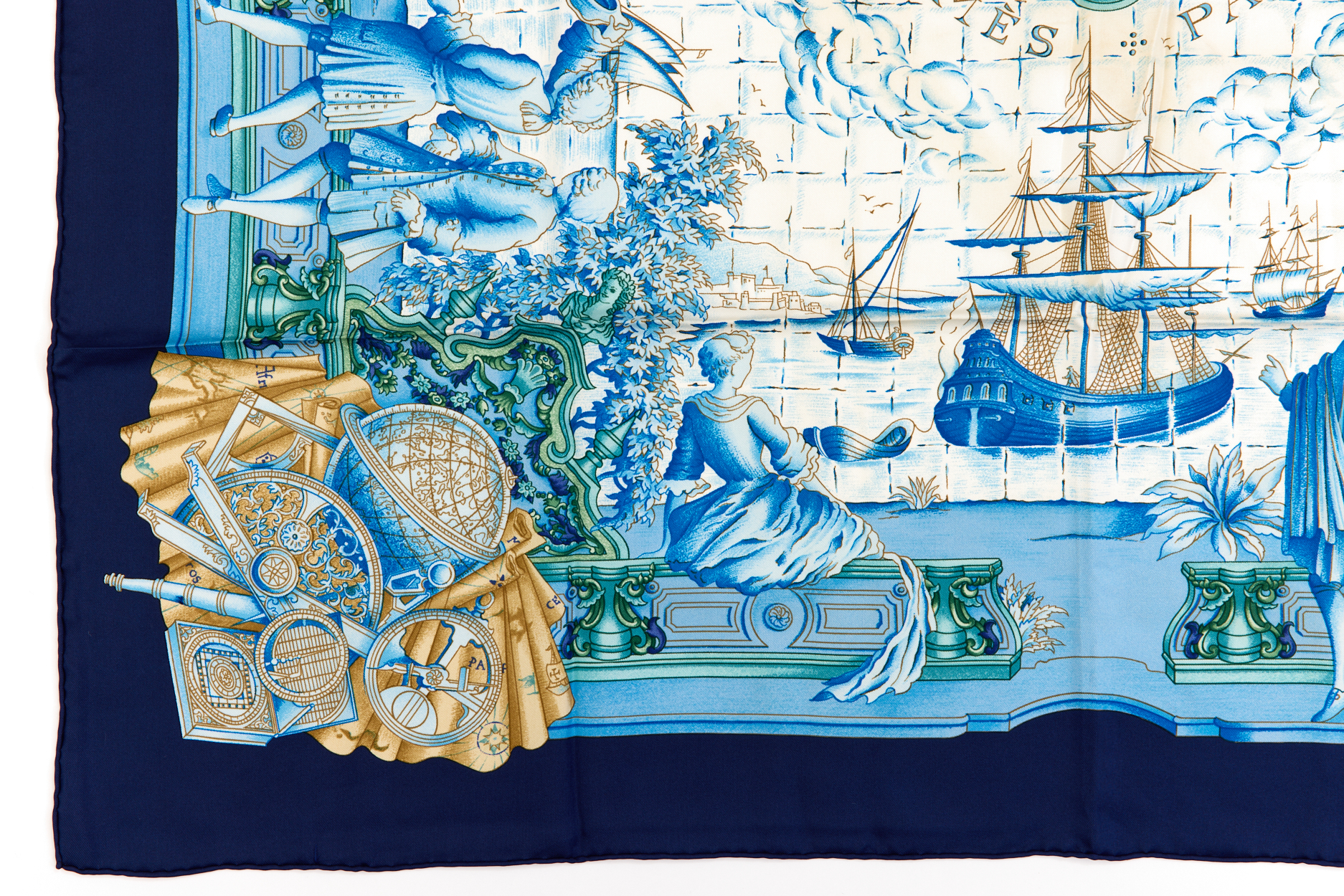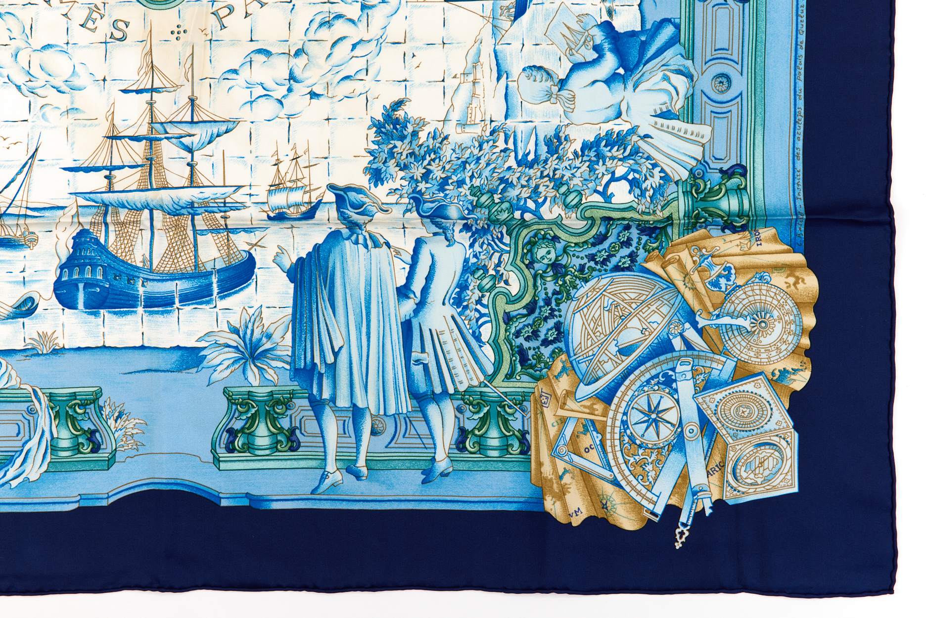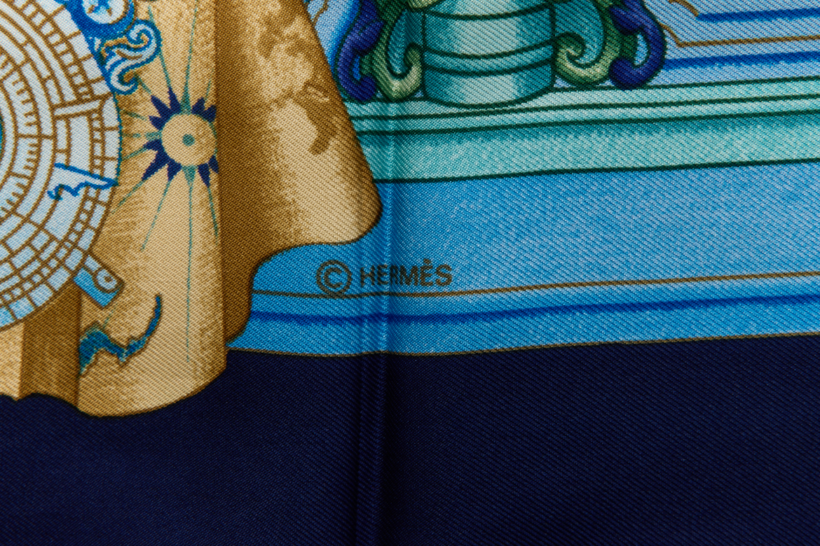 Hermes Silk Scarf Carre 90 “AZVLEJOS” Blue Silk Scarf