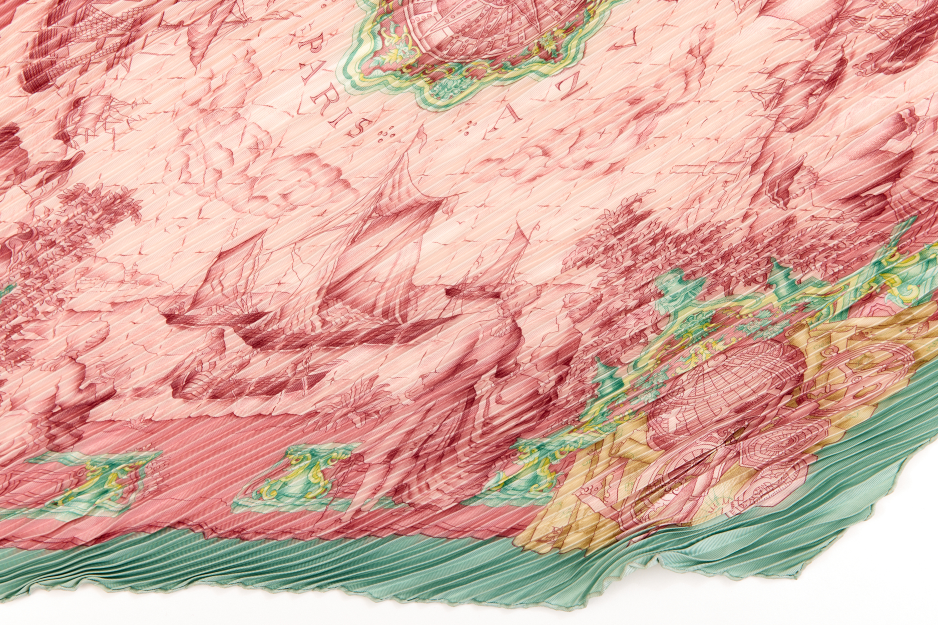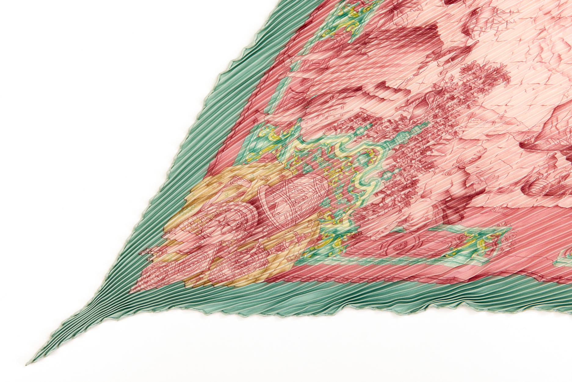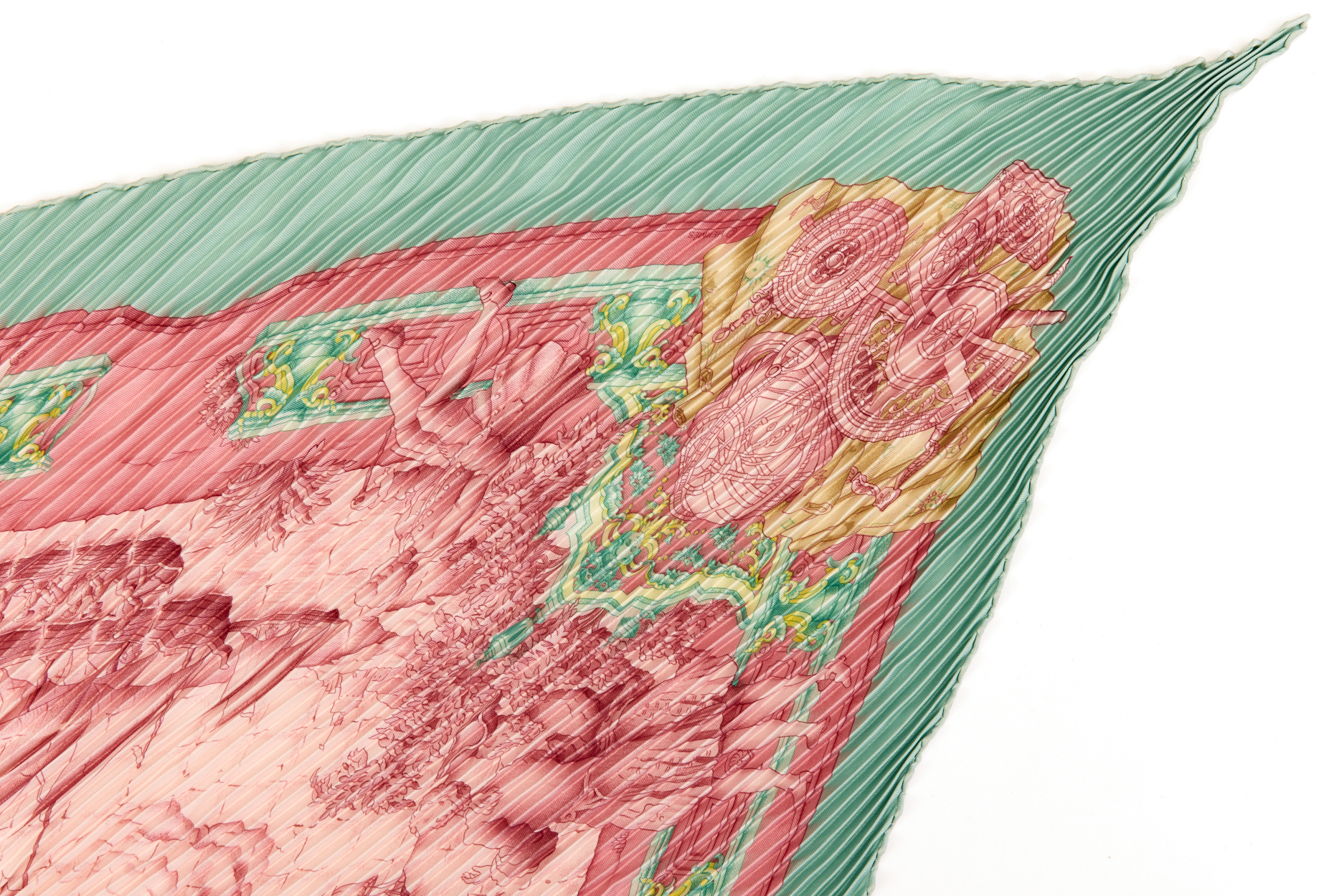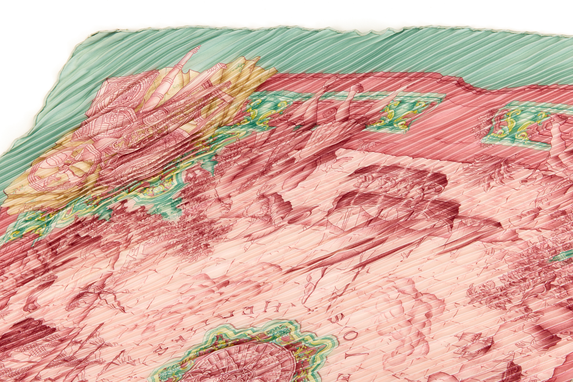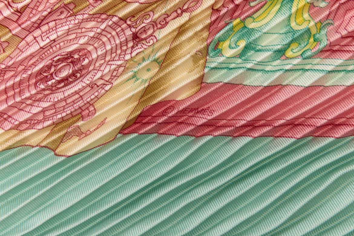 Hermes Silk Scarf Carre 90 “AZVLEJOS” Green Silk Pleats Scarf with Box