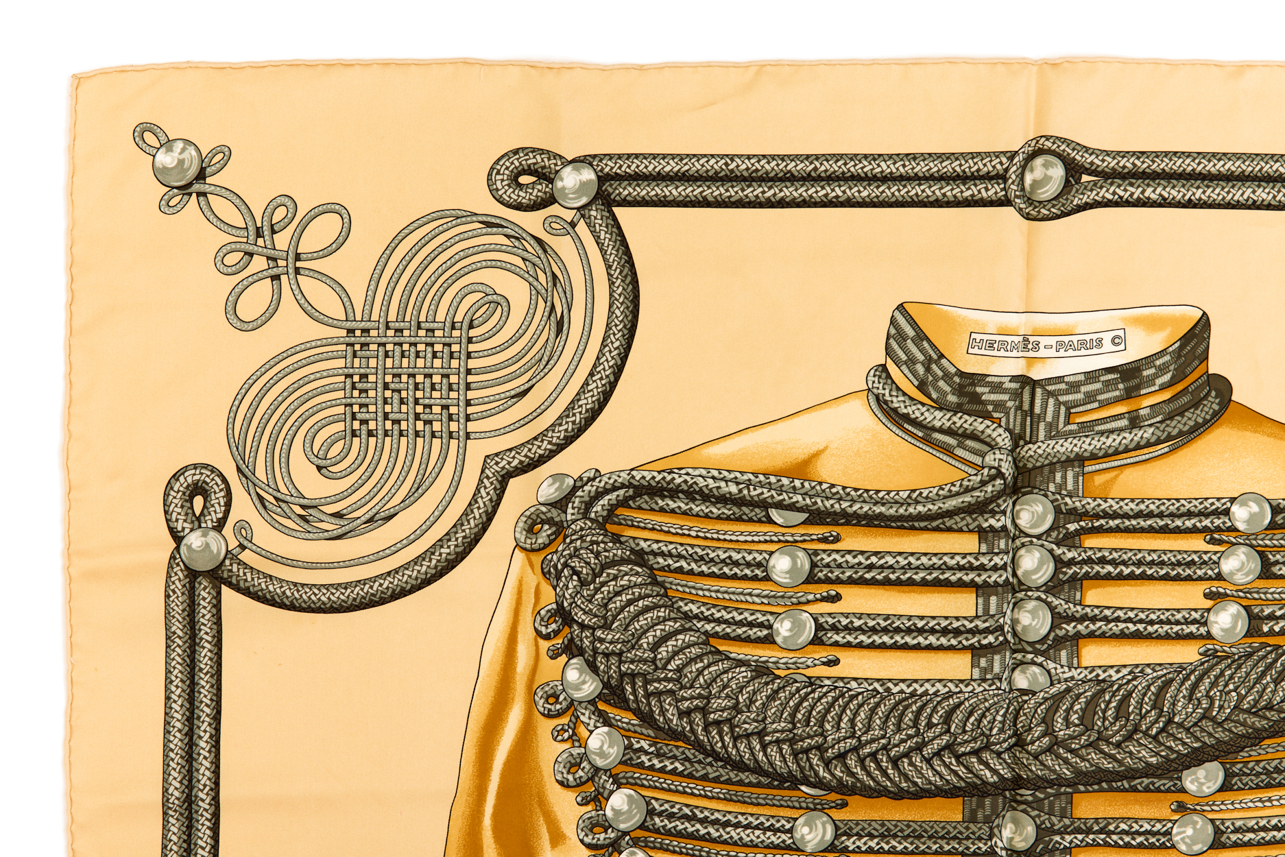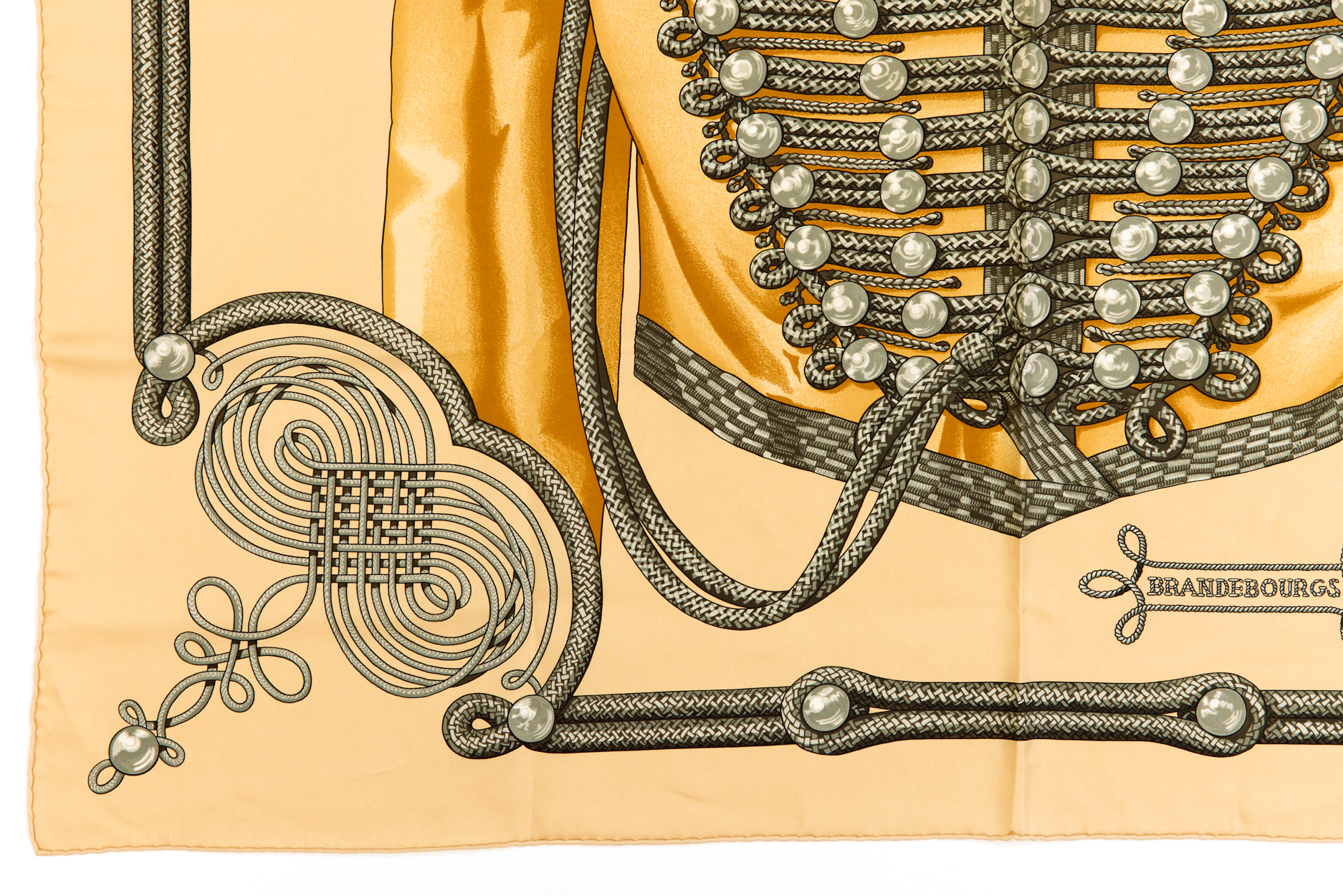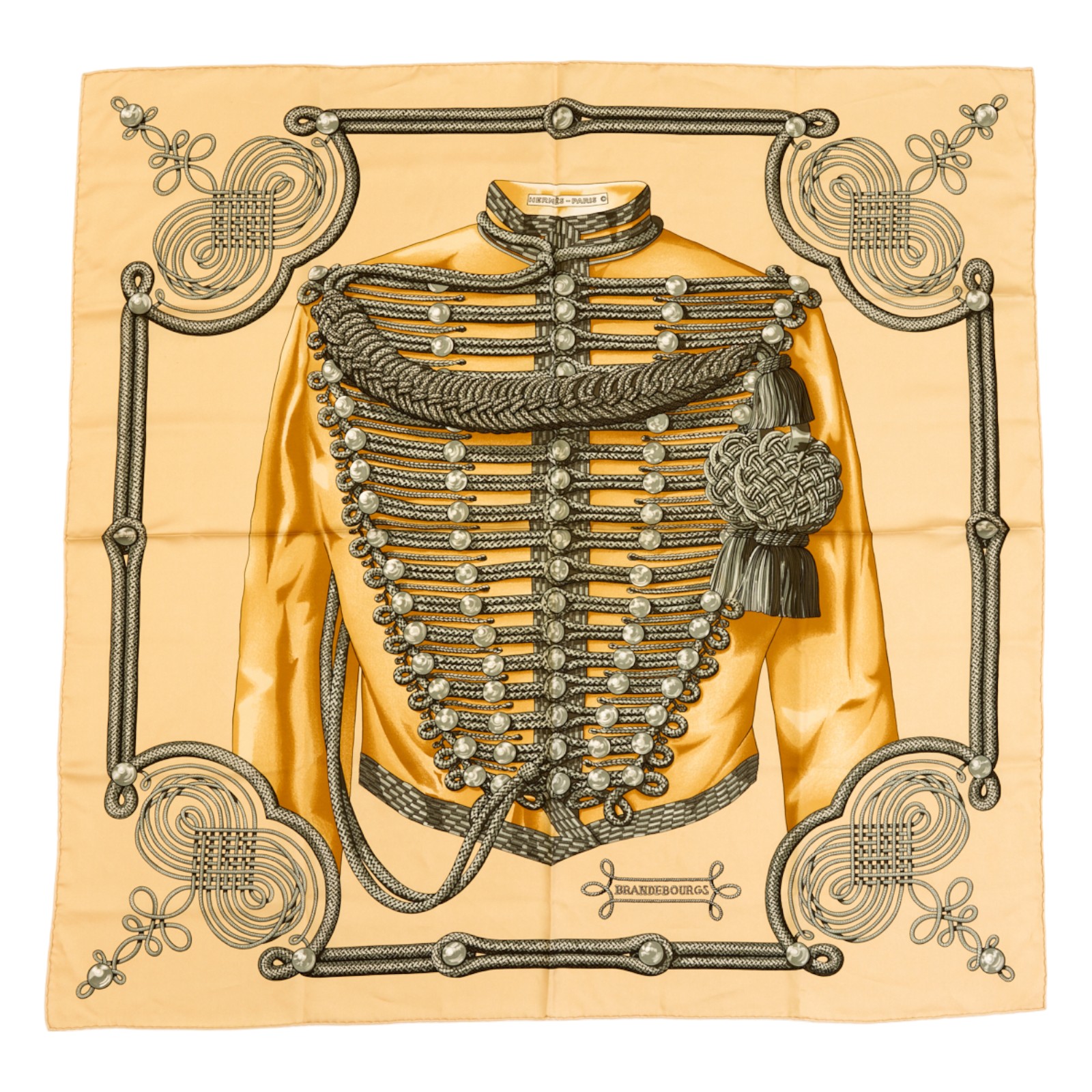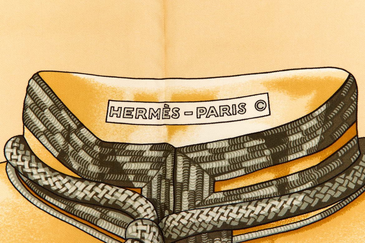 Hermes Silk Scarf Carre 90 “Brandebourgs” Yellow Silk Scarf