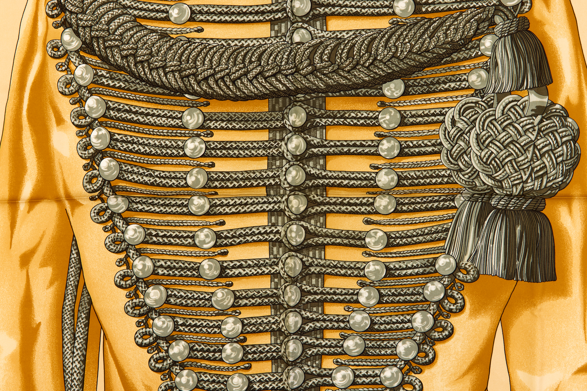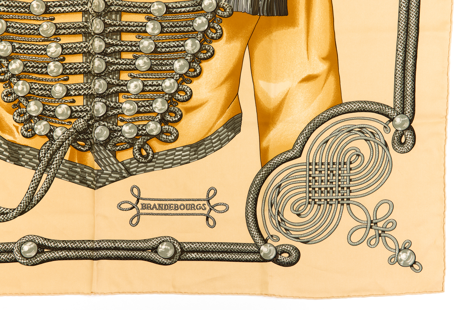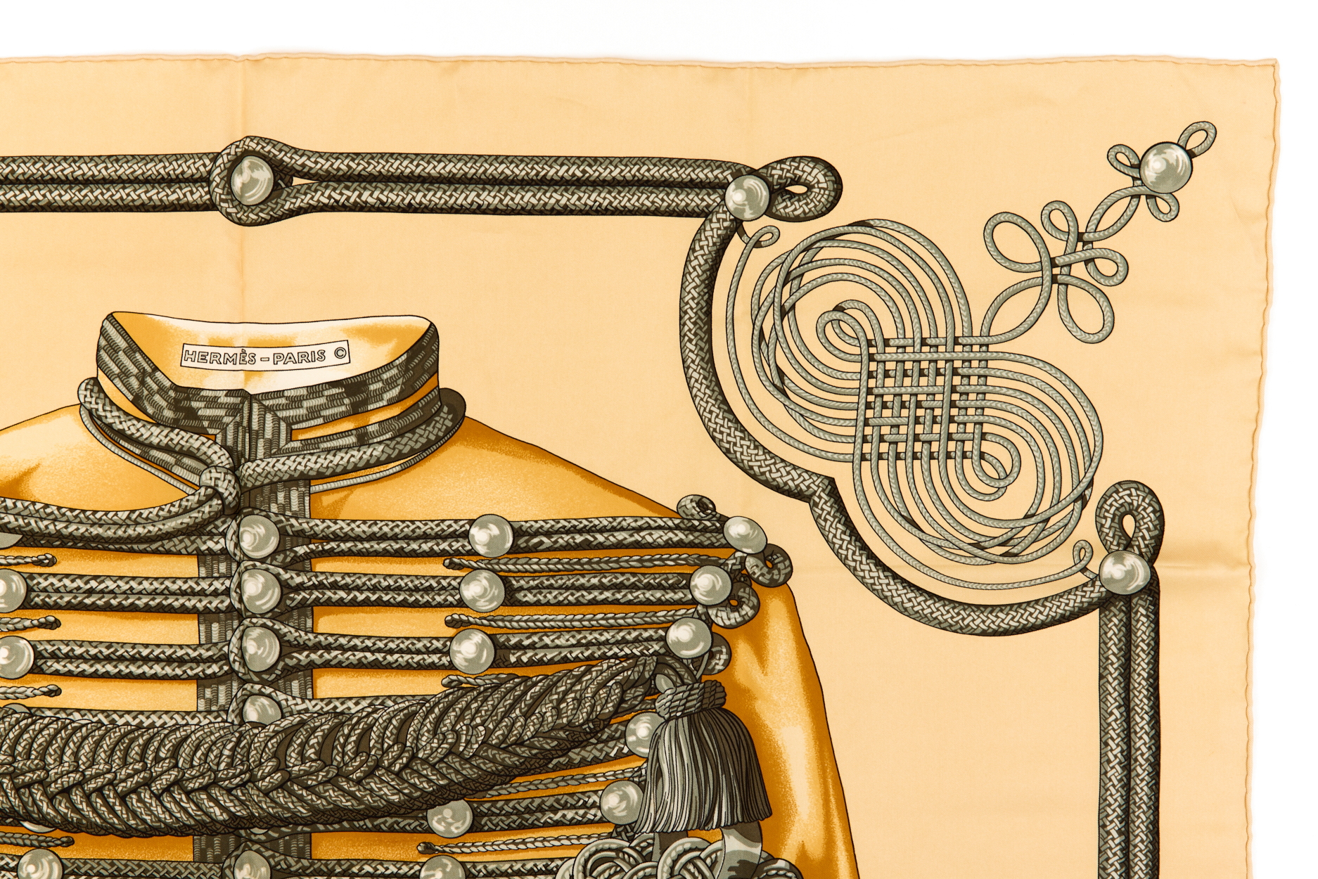 Hermes Silk Scarf Carre 90 “Brandebourgs” Yellow Silk Scarf
