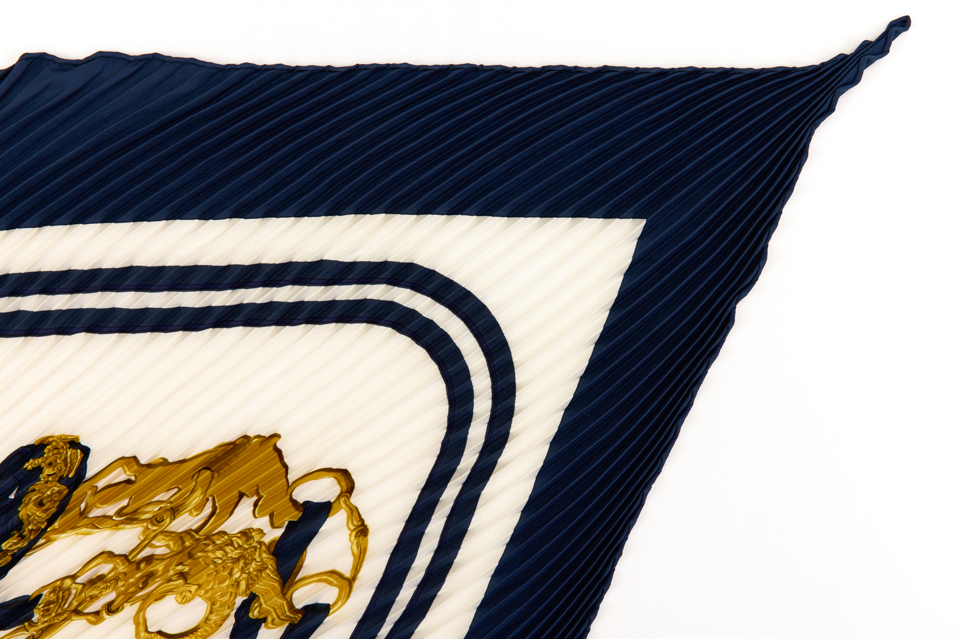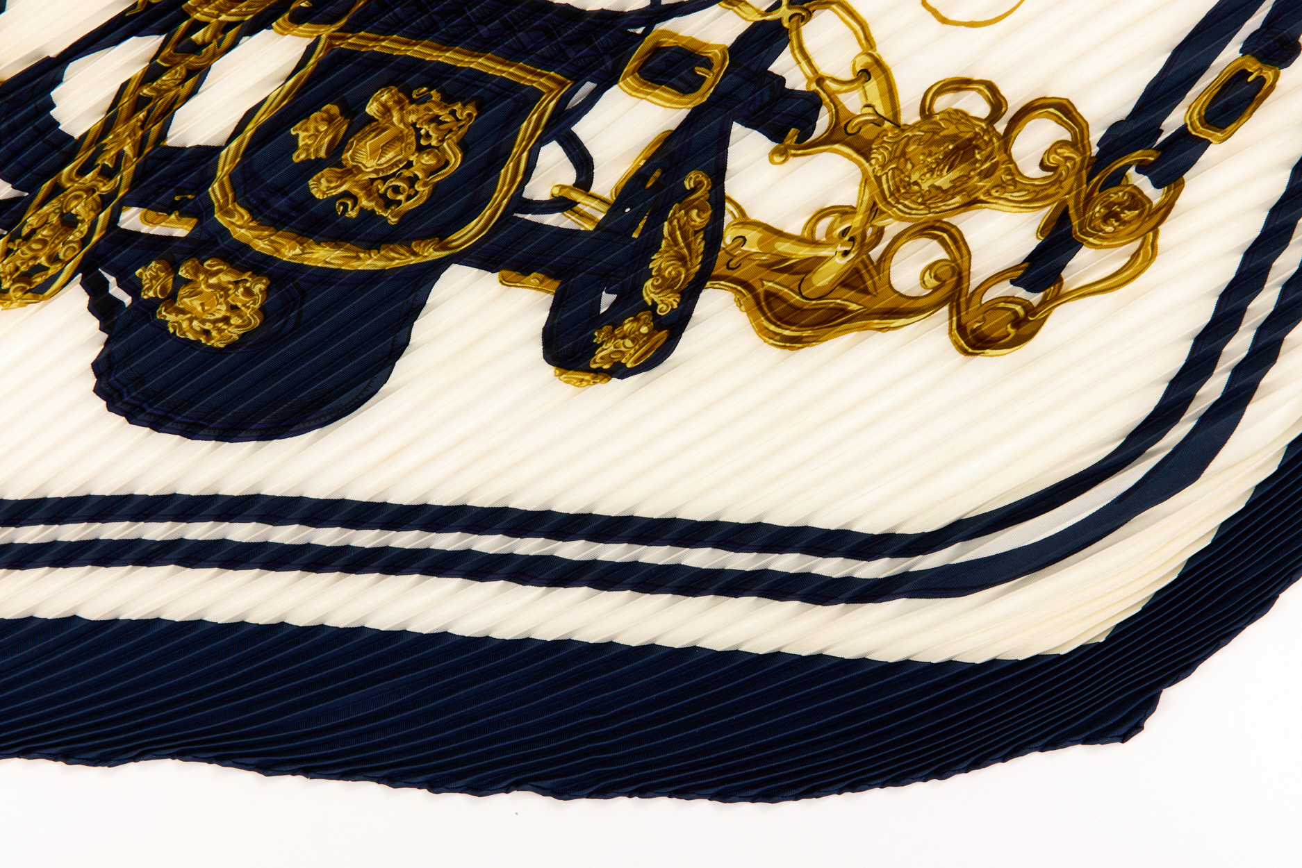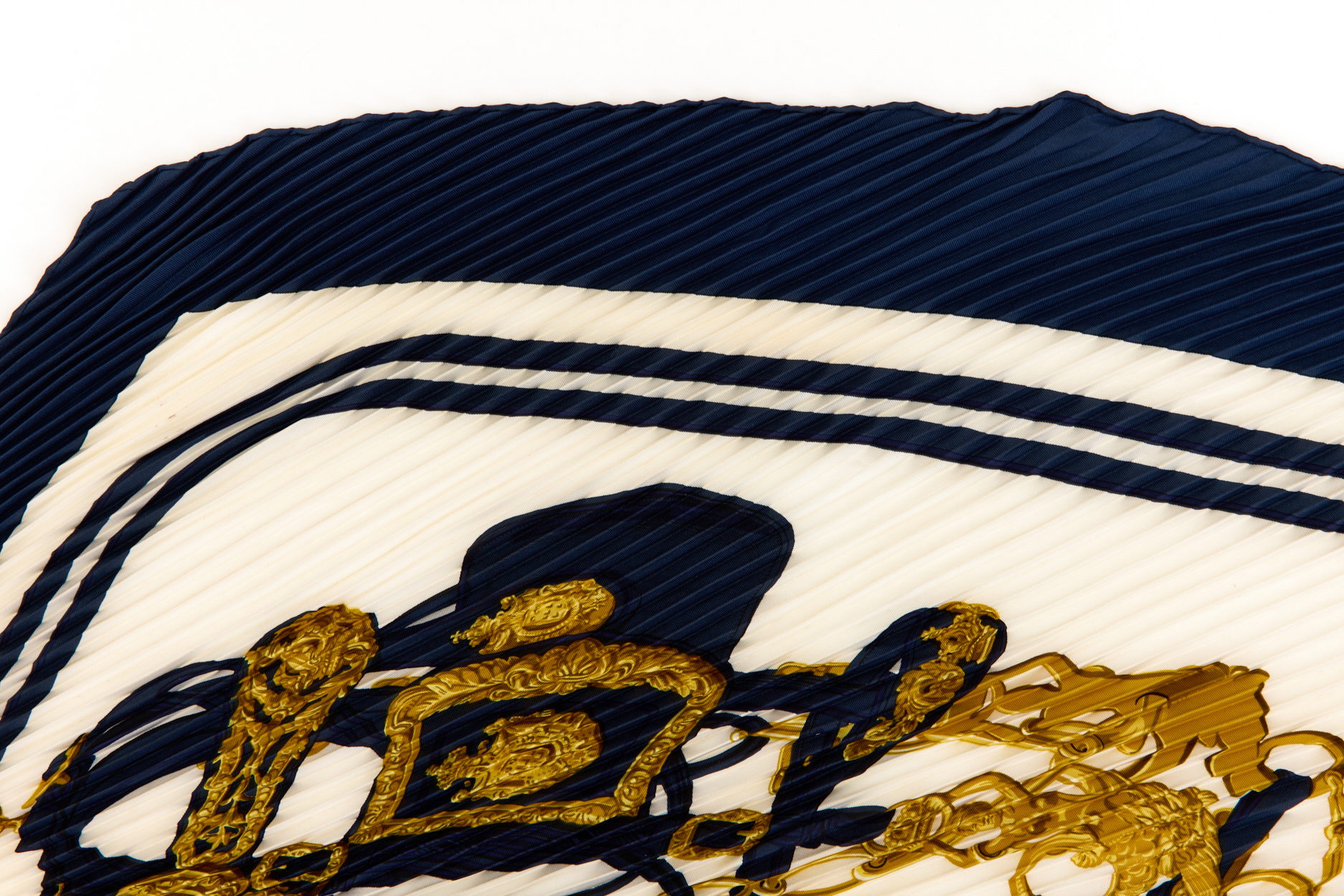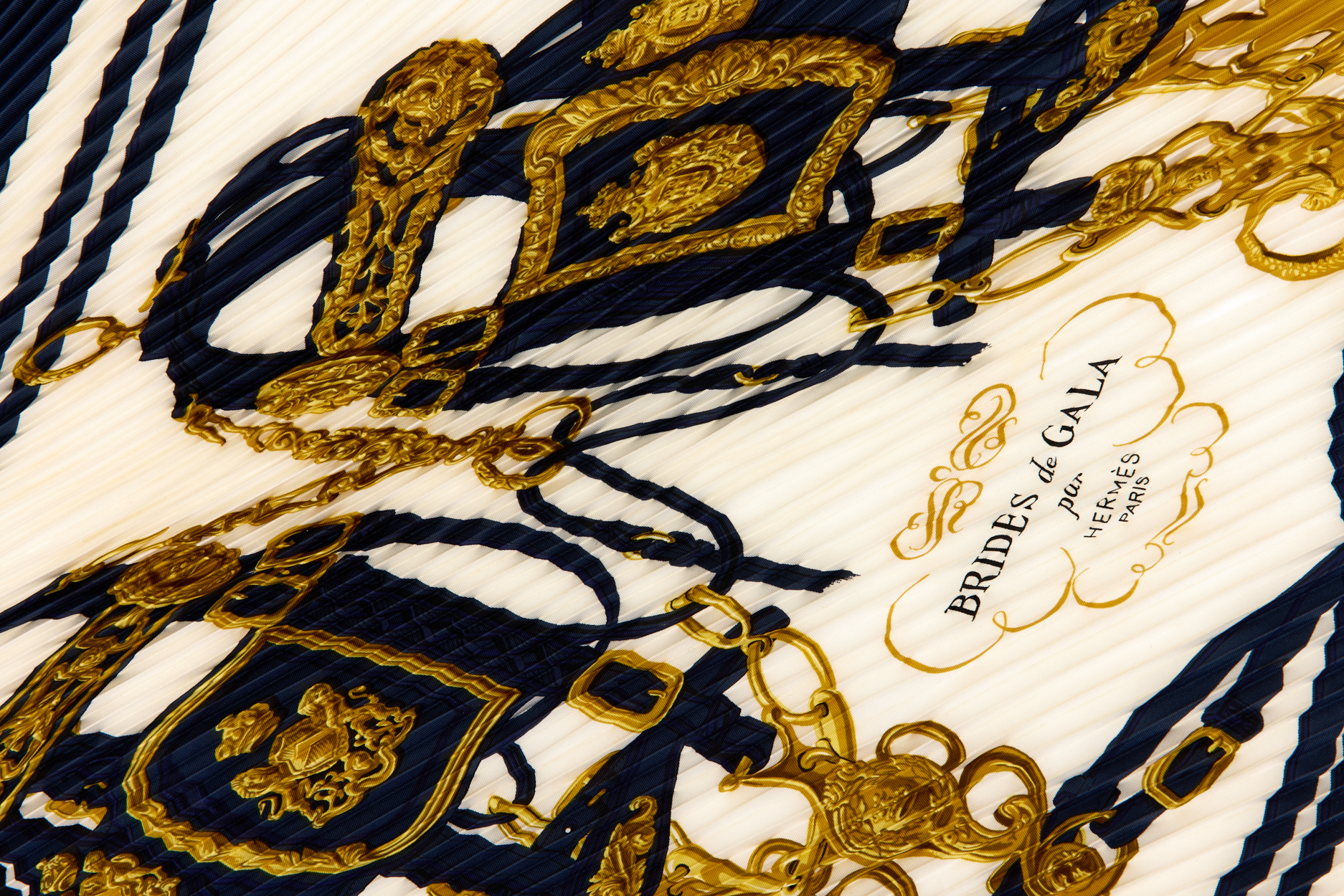 Hermes Silk Scarf Carre 90 “BRIDES de GALA” Blue Silk Pleats Scarf
