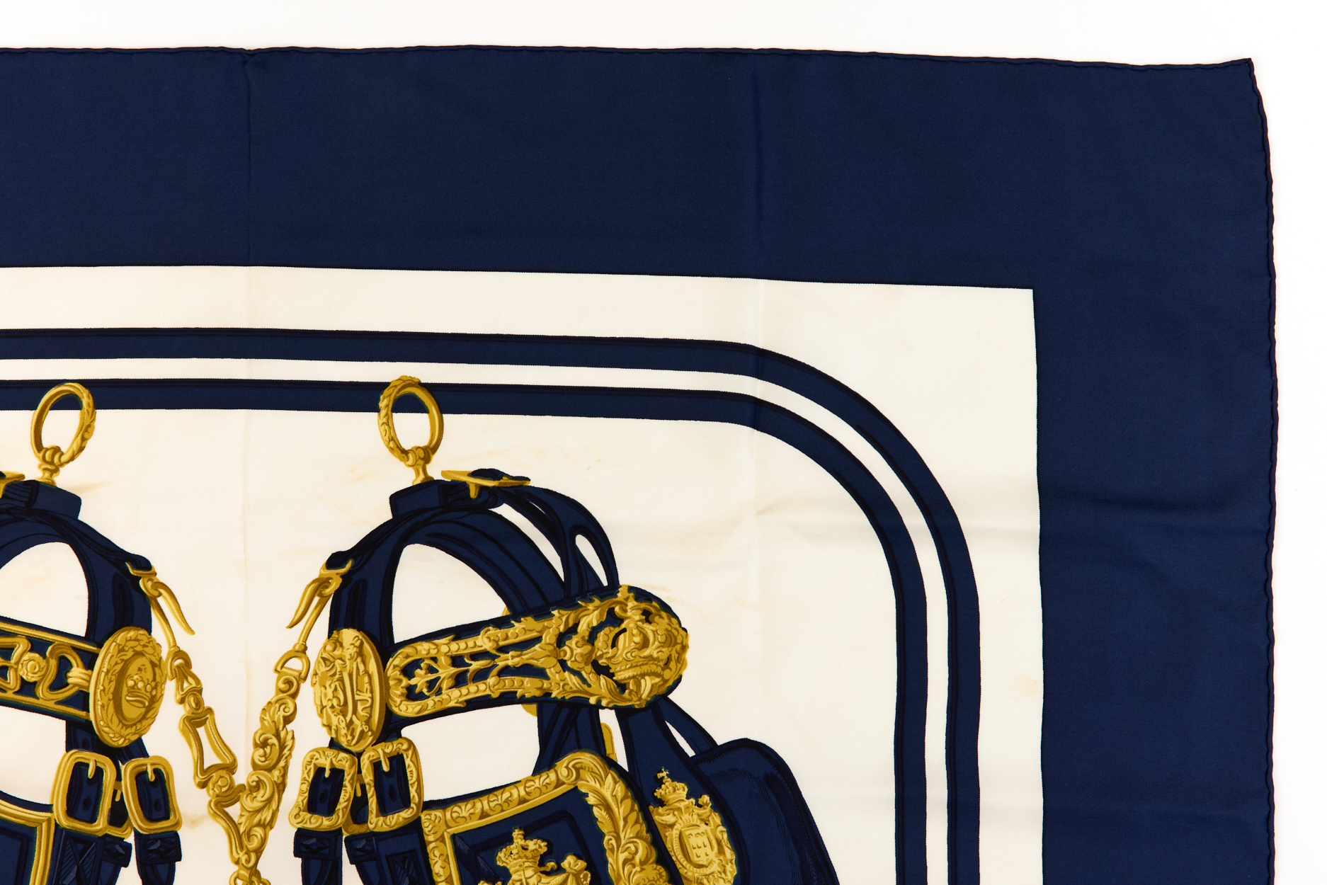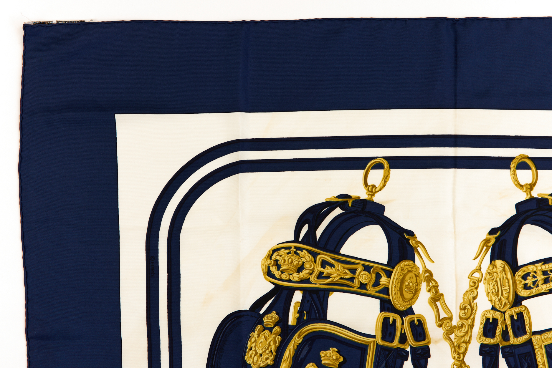 Hermes Silk Scarf Carre 90 “BRIDES de GALA” Blue Silk Scarf