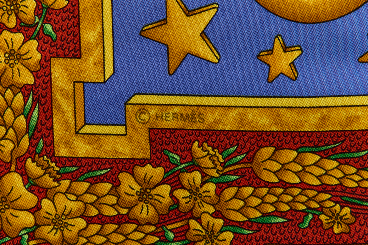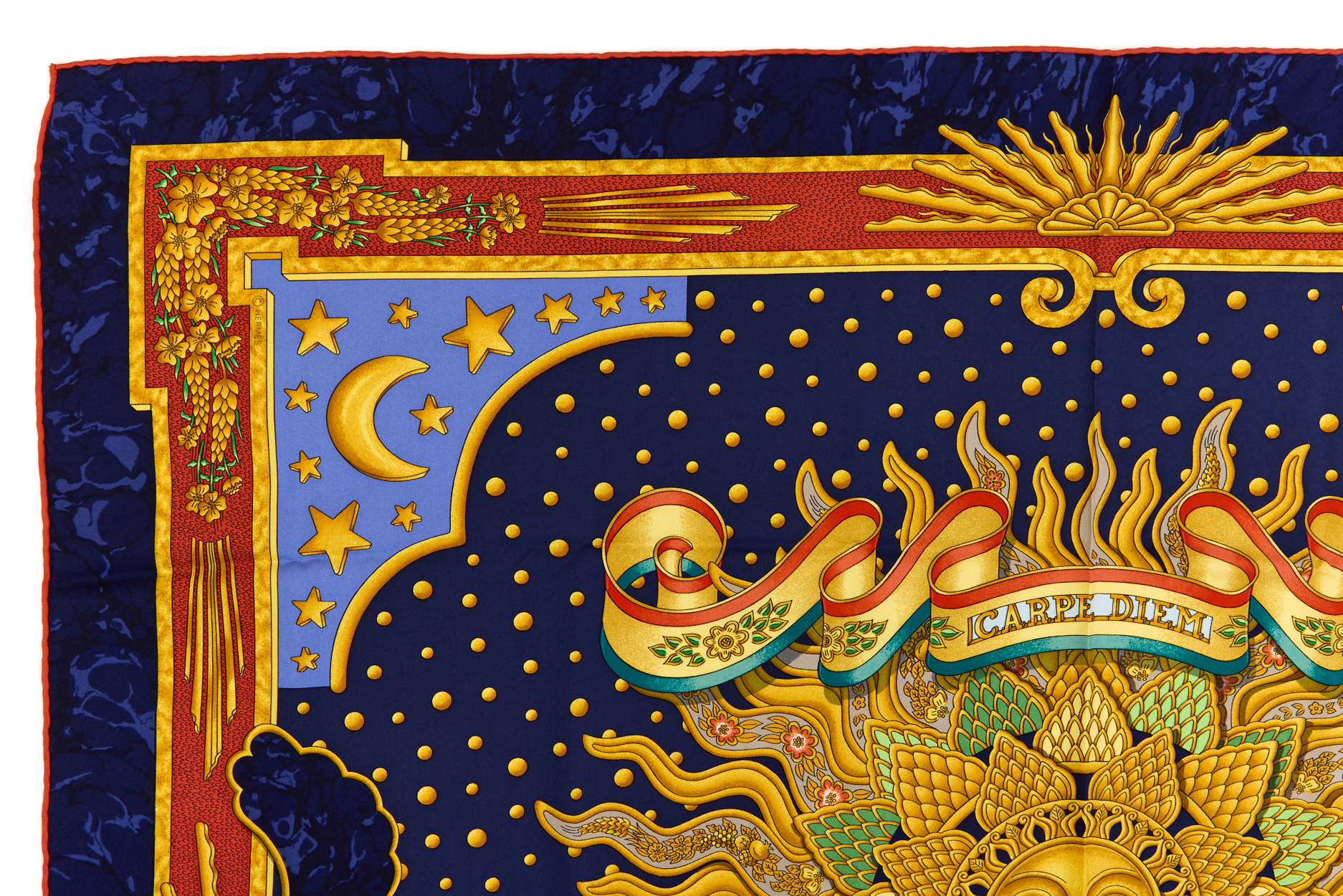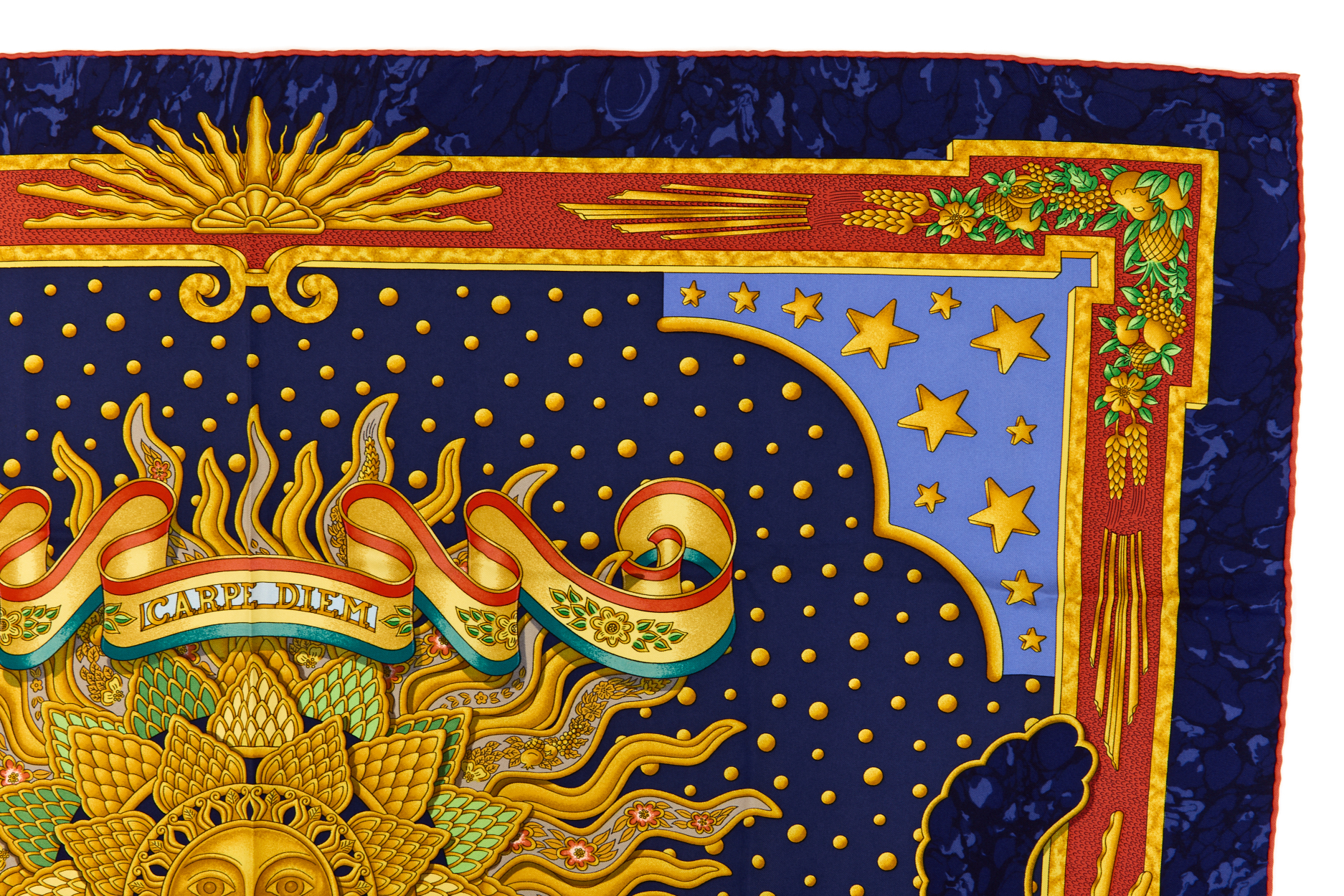 Hermes Silk Scarf Carre 90 “CARPE DIEM” Blue Silk Scarf