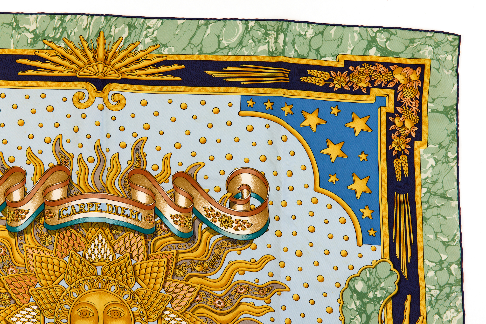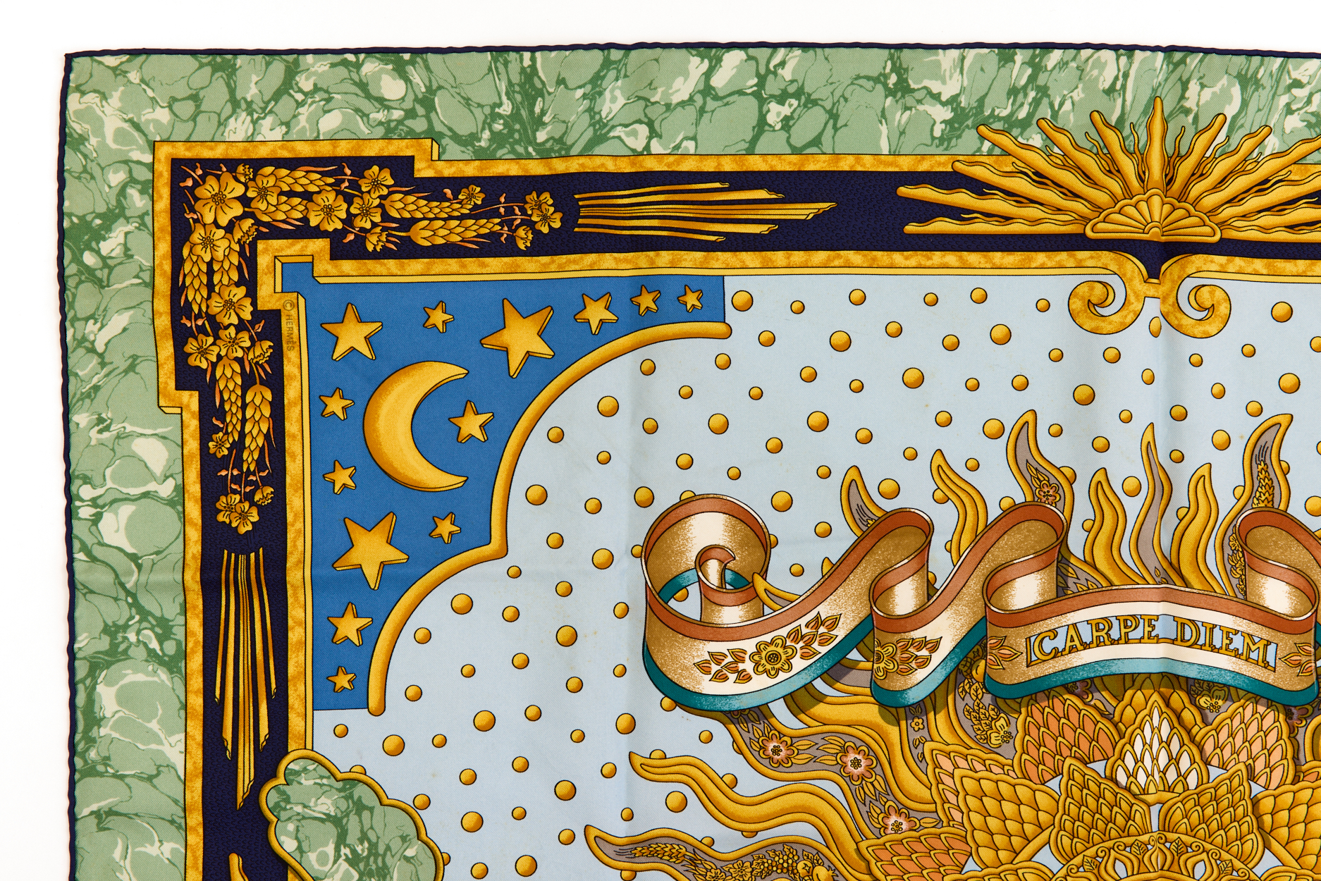 Hermes Silk Scarf Carre 90 “CARPE DIEM” Green Silk Scarf