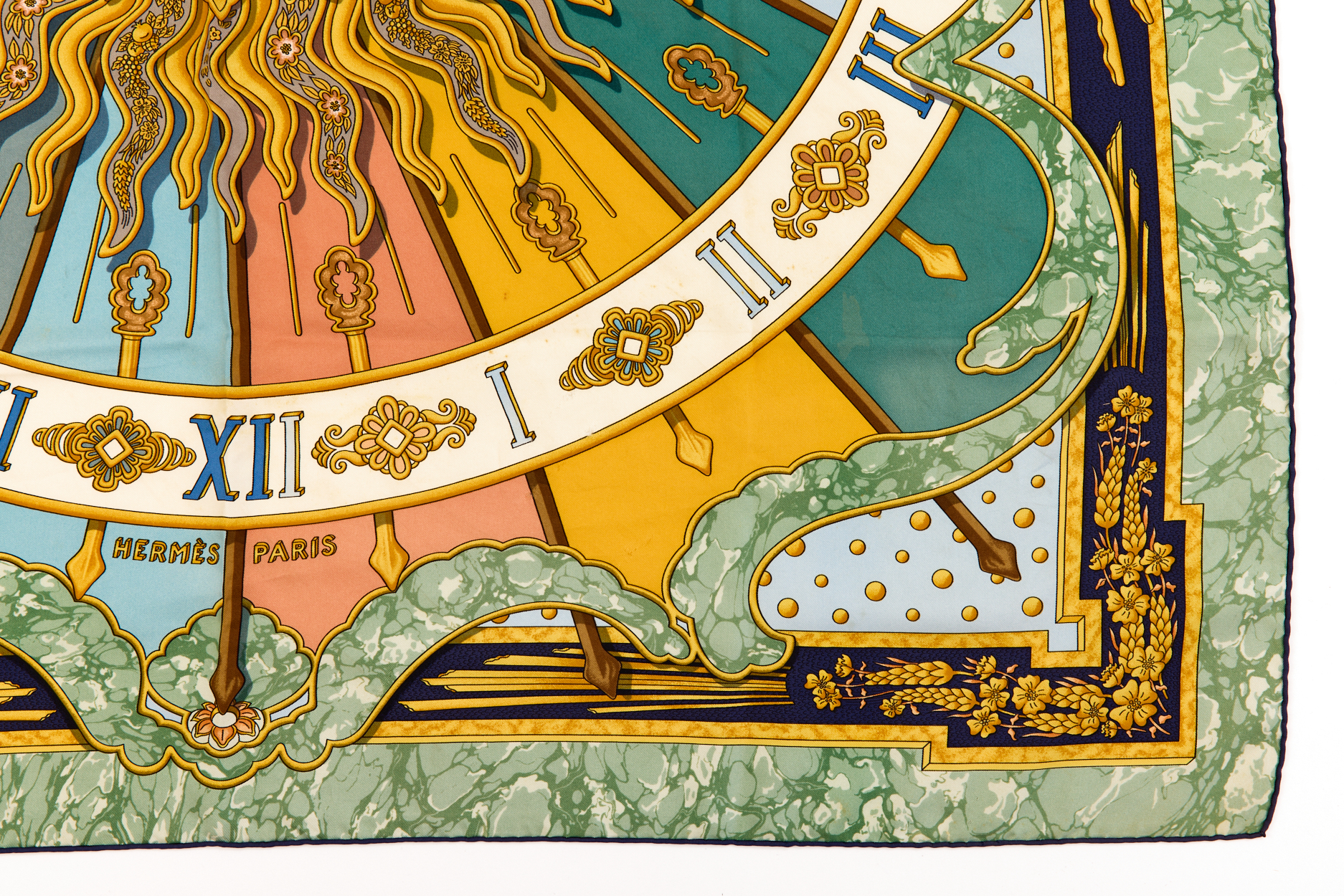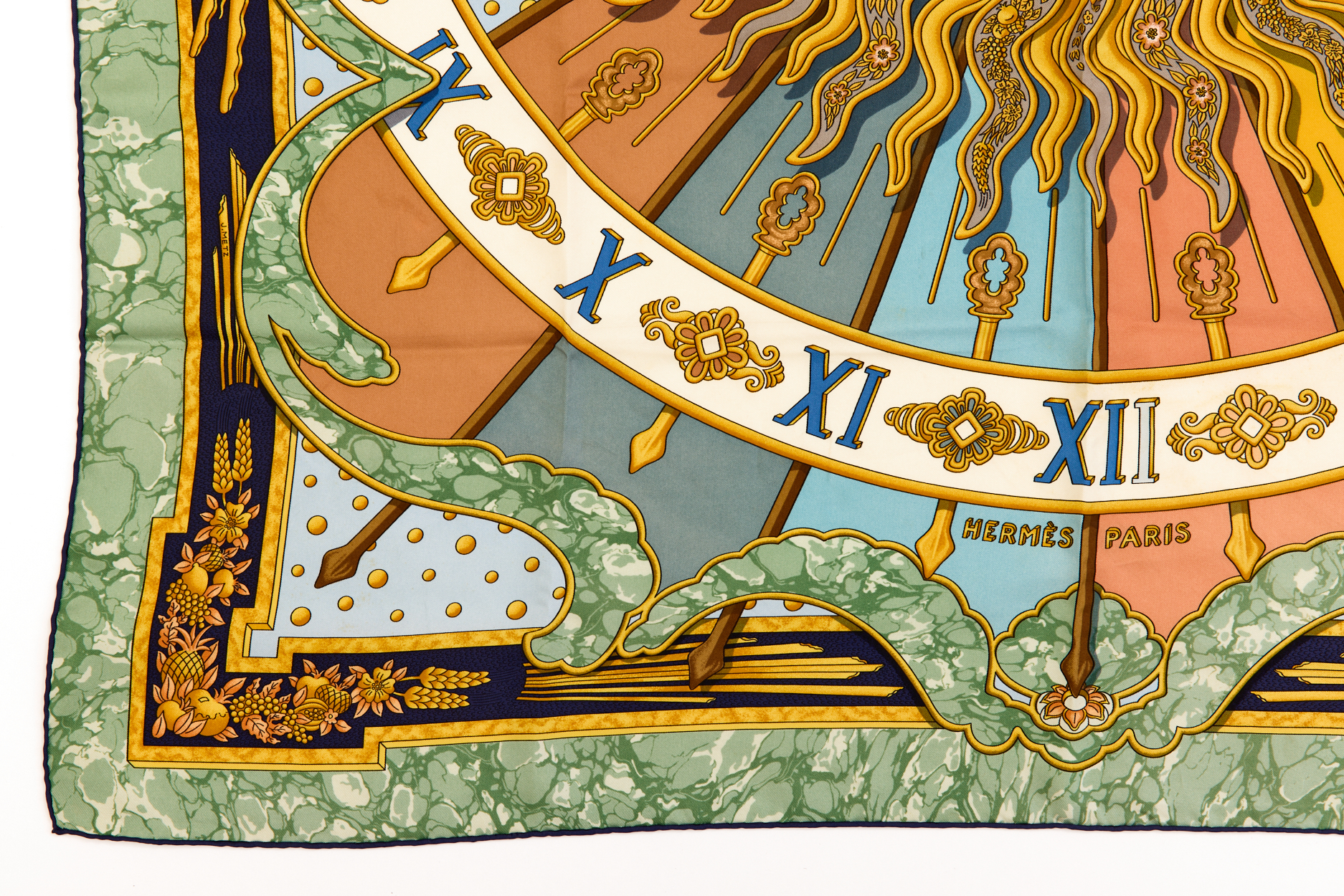 Hermes Silk Scarf Carre 90 “CARPE DIEM” Green Silk Scarf Brand : HERMESDesign by Joachim Metz Issued 1994Item : ScarfSize : 88.5cm * 88.5cmMaterial : 100% SilkCondition Score: B+*For reference. The condition shown in the image takes precedence.*Please see the last two photos to see if the tag is still attached