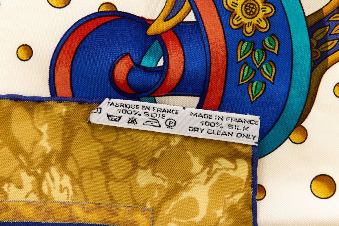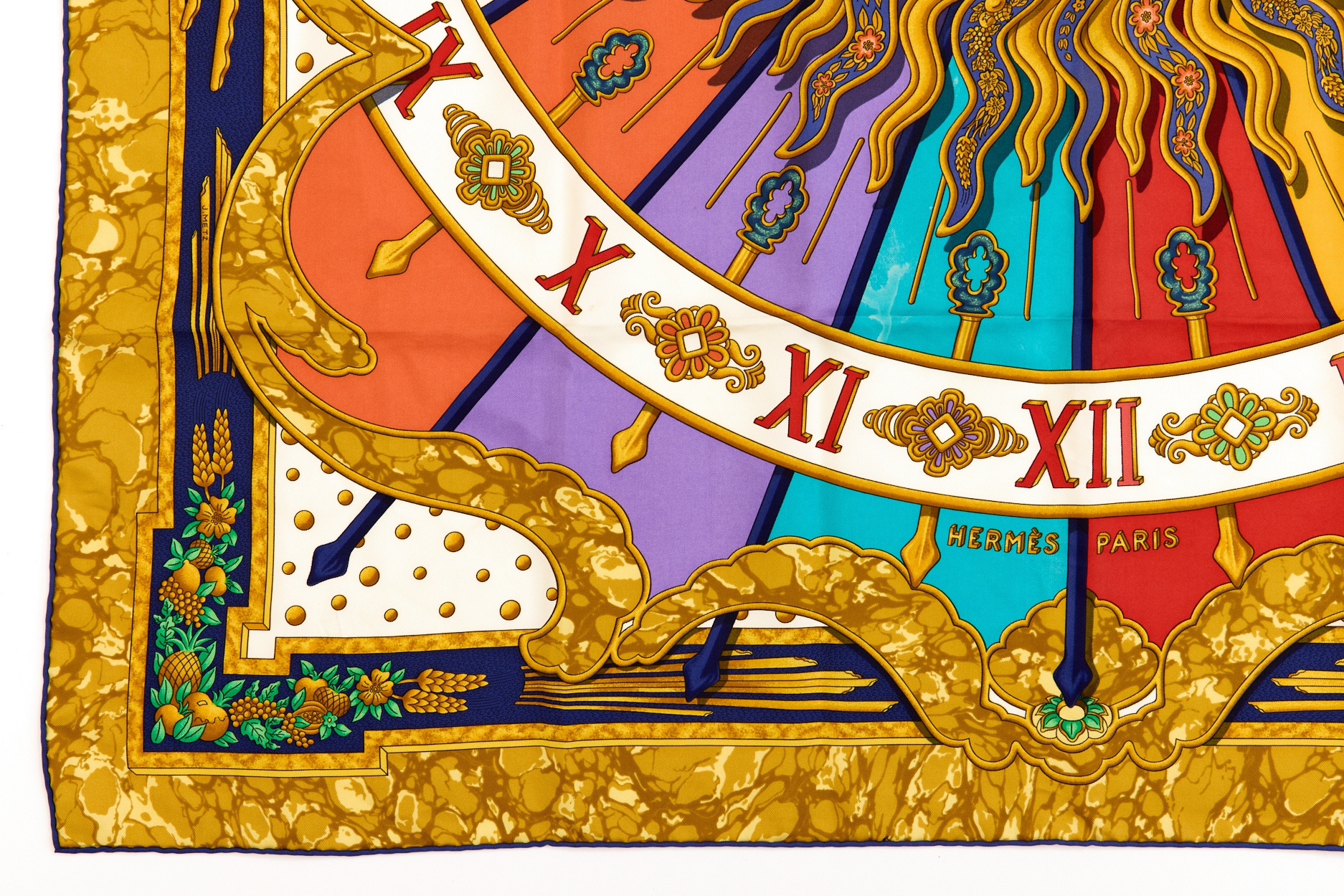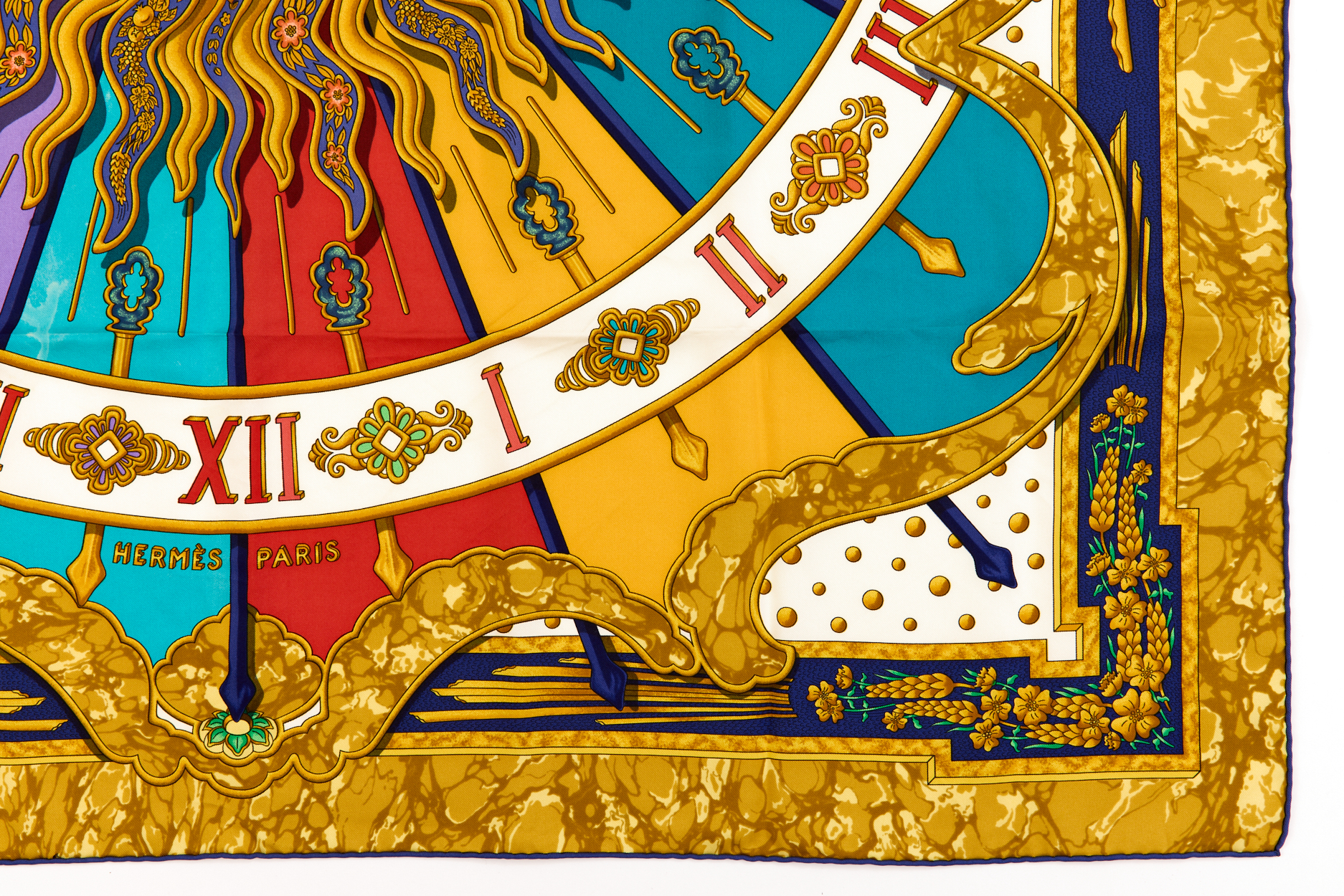 Hermes Silk Scarf Carre 90 “CARPE DIEM” Yellow Silk Scarf Brand : HERMESDesign by Joachim Metz Issued 1994Item : ScarfSize : 88.5cm * 88.5cmMaterial : 100% SilkCondition Score: B (look at 5th photo)*For reference. The condition shown in the image takes precedence.*Please see the last two photos to see if the tag is still attached