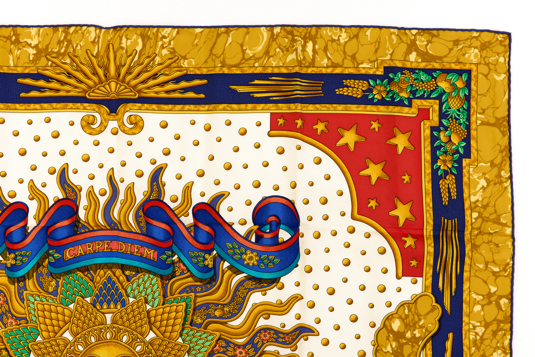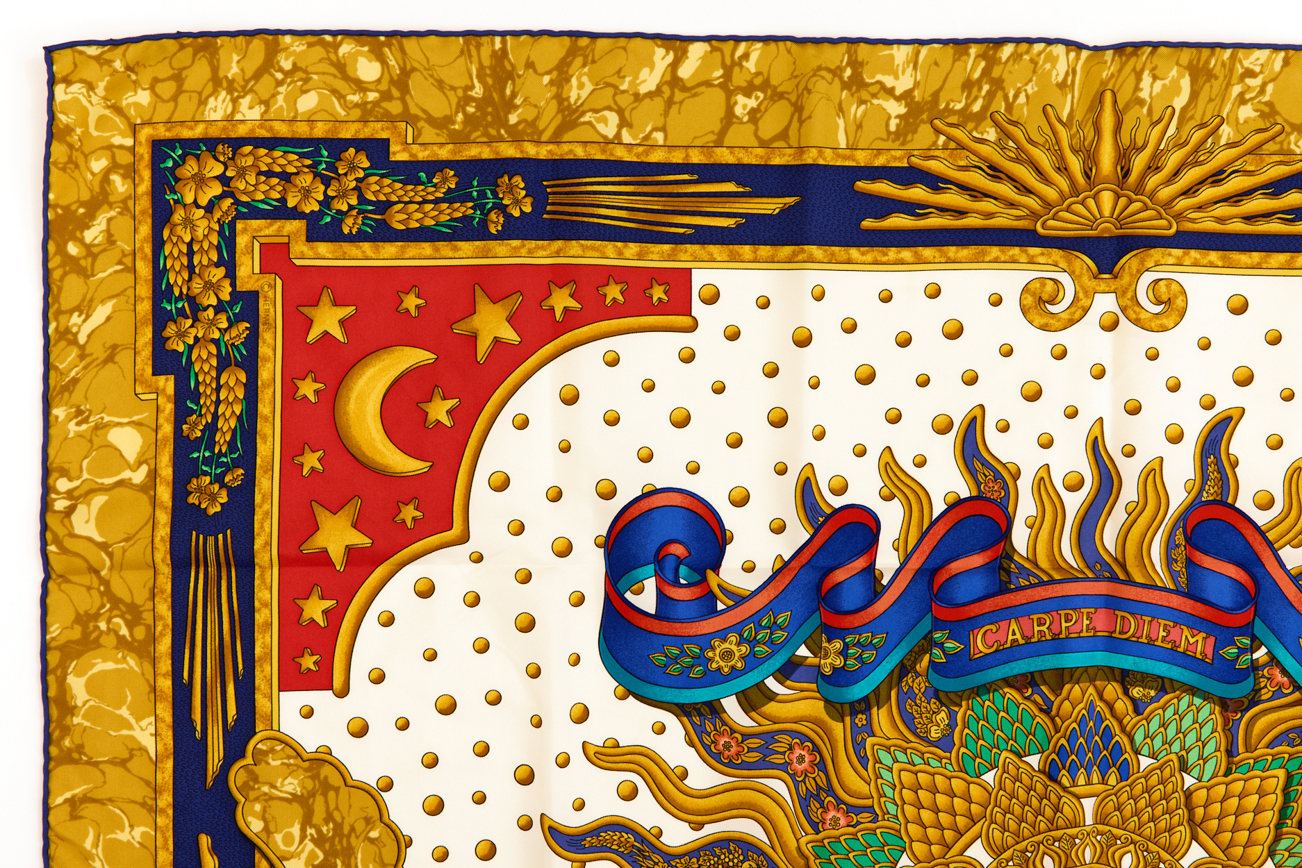 Hermes Silk Scarf Carre 90 “CARPE DIEM” Yellow Silk Scarf