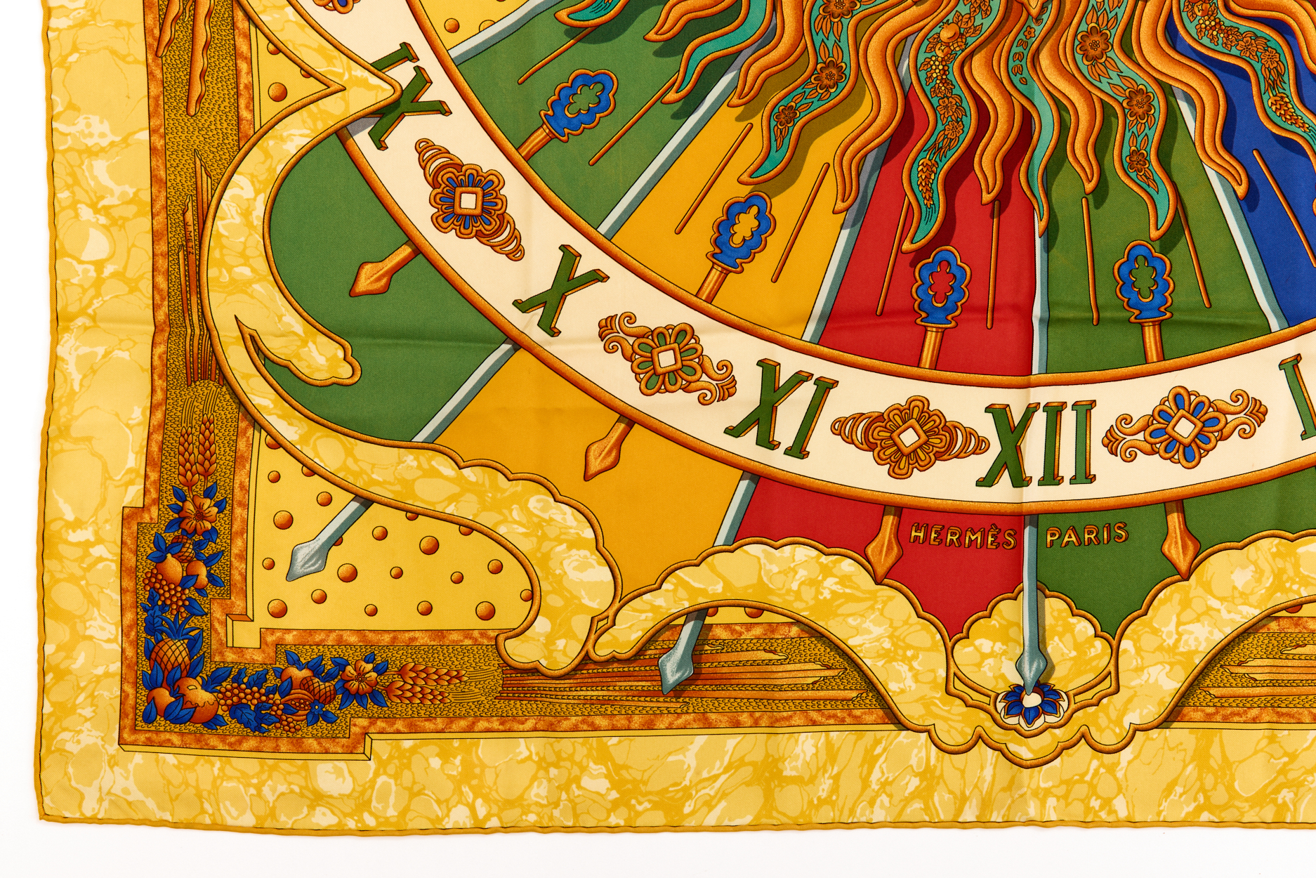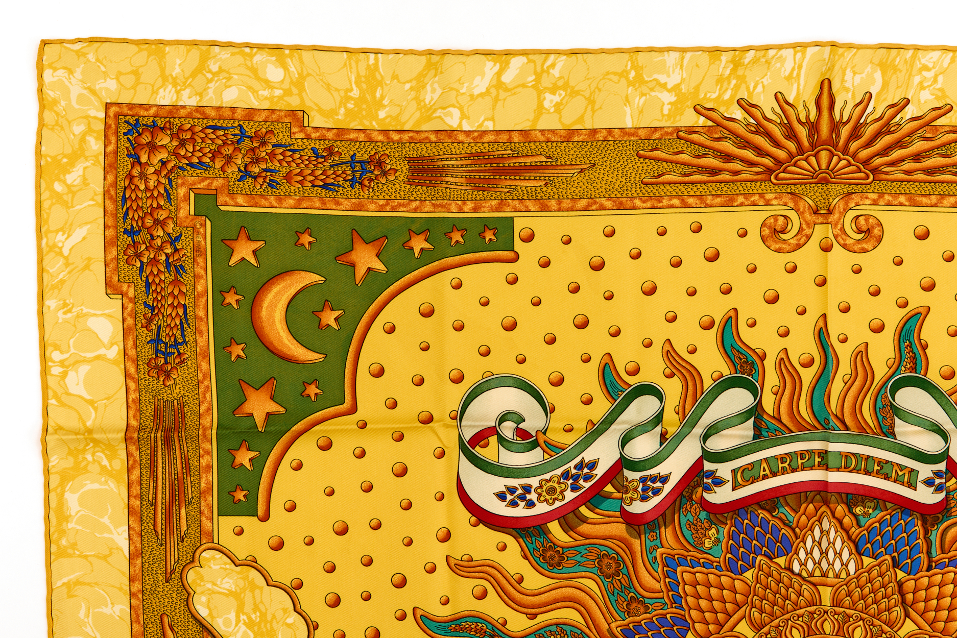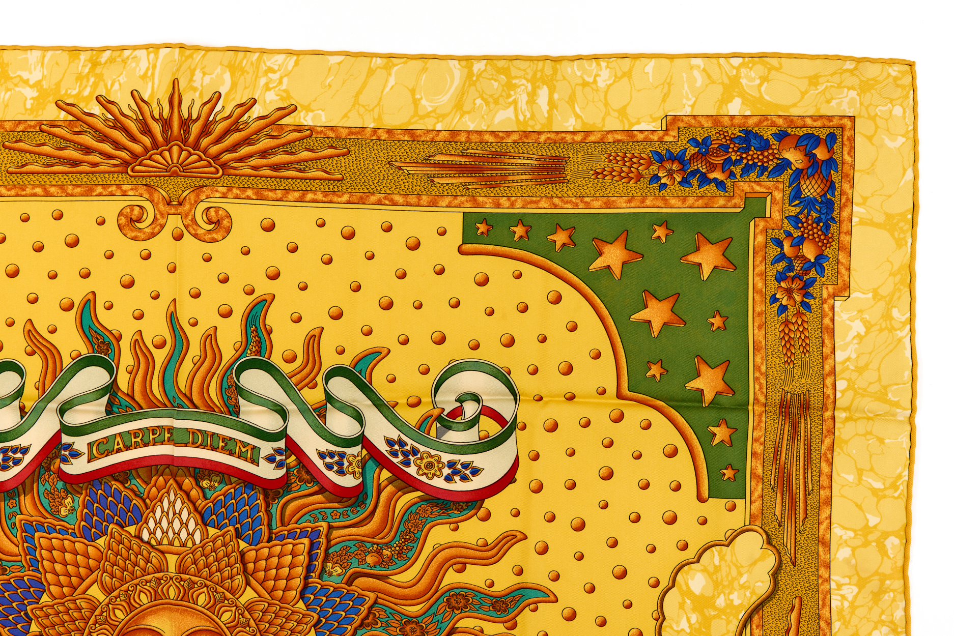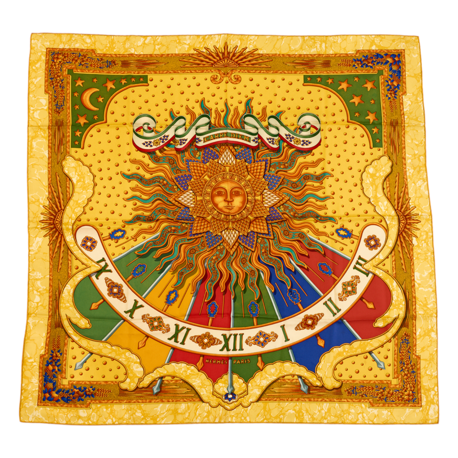 Hermes Silk Scarf Carre 90 “CARPE DIEM” Yellow Silk Scarf