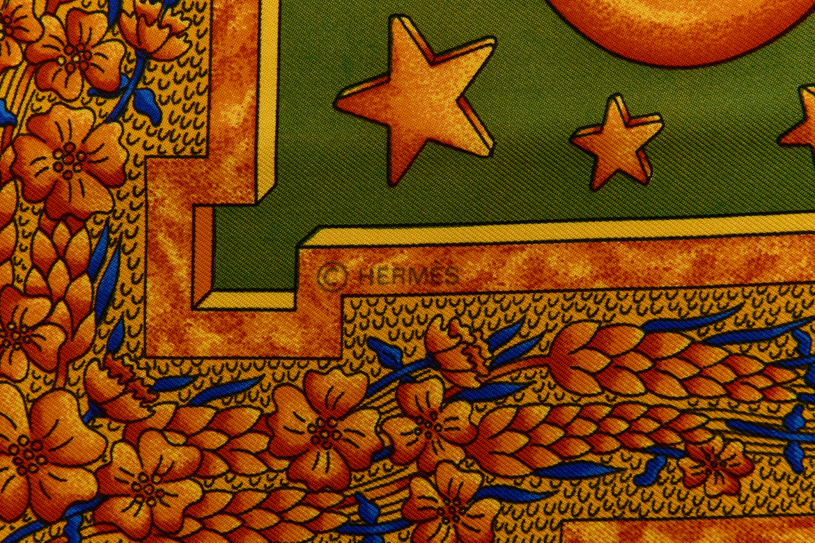 Hermes Silk Scarf Carre 90 “CARPE DIEM” Yellow Silk Scarf Brand : HERMESDesign by Joachim Metz Issued 1994Item : ScarfSize : 88.5cm * 88.5cmMaterial : 100% SilkCondition Score: A-B+*For reference. The condition shown in the image takes precedence.*Please see the last two photos to see if the tag is still attached