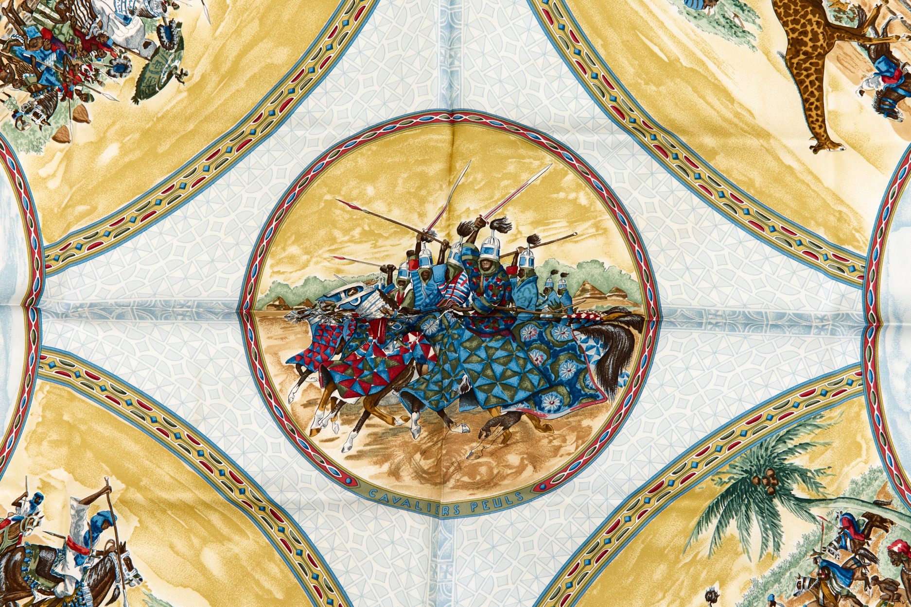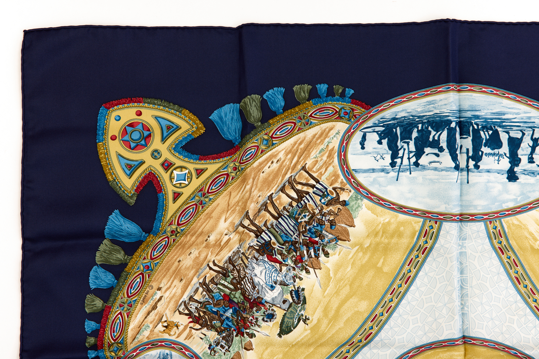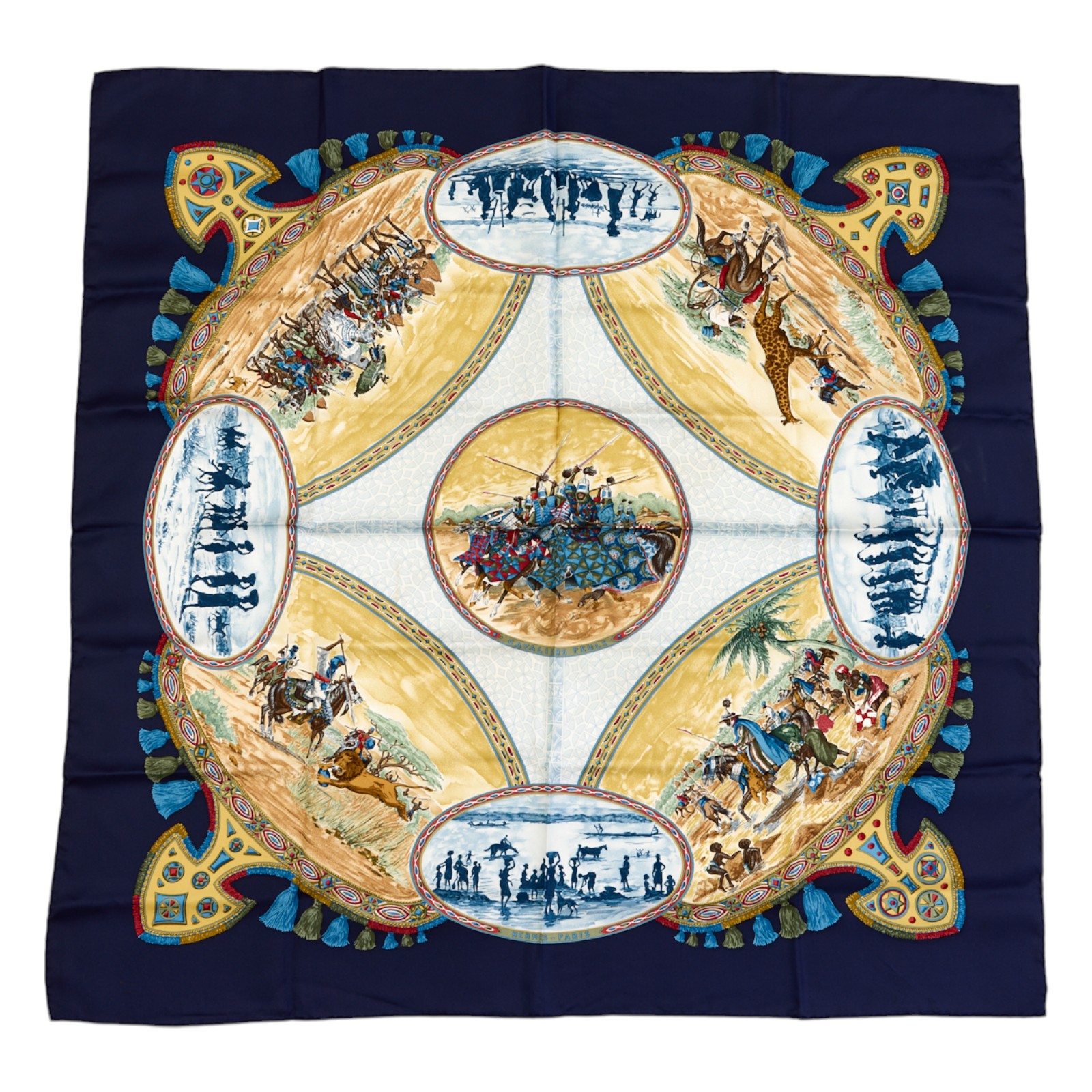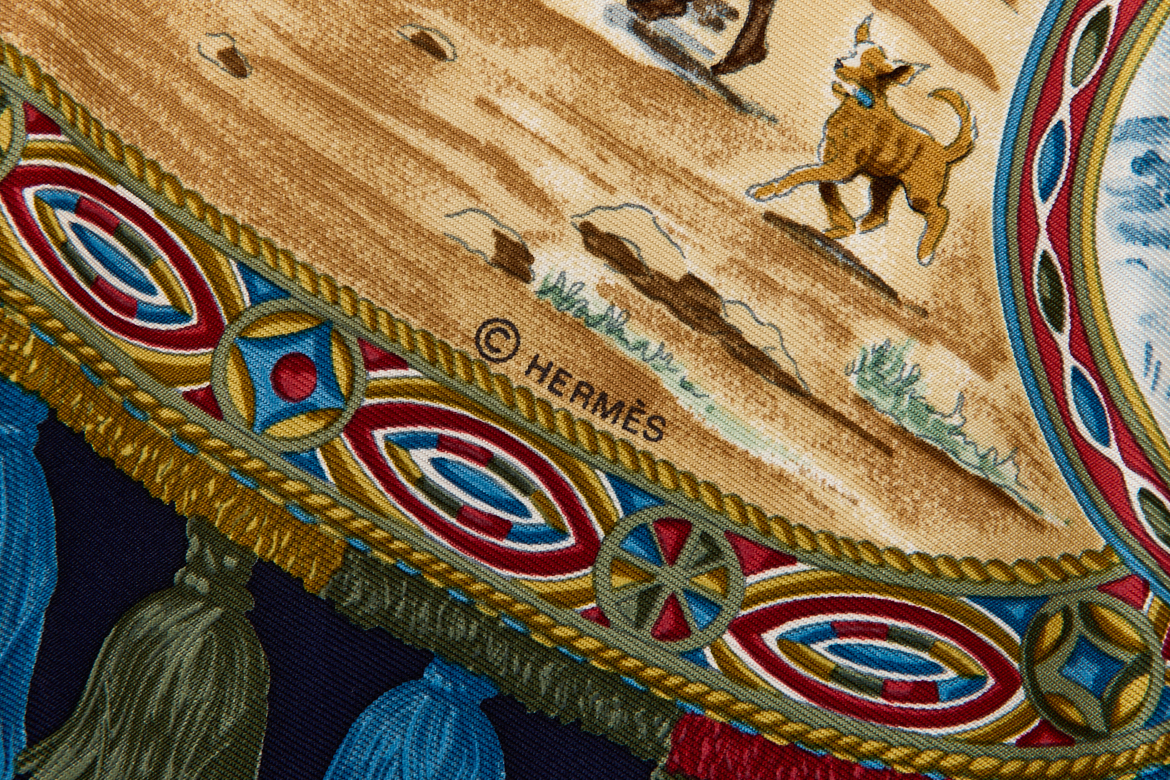 Hermes Silk Scarf Carre 90 “CAVALIERS PEULS” Blue Silk Scarf