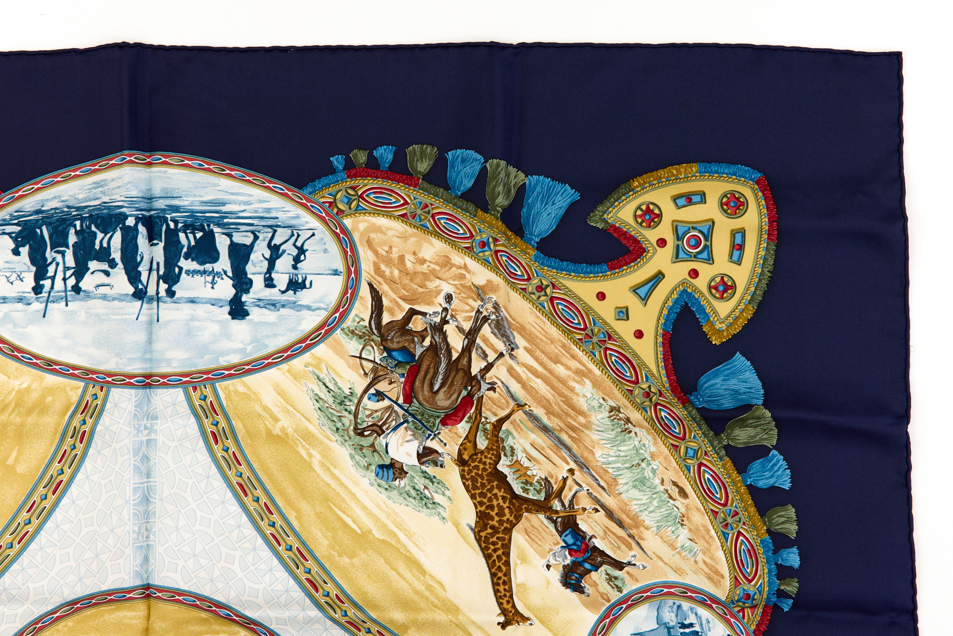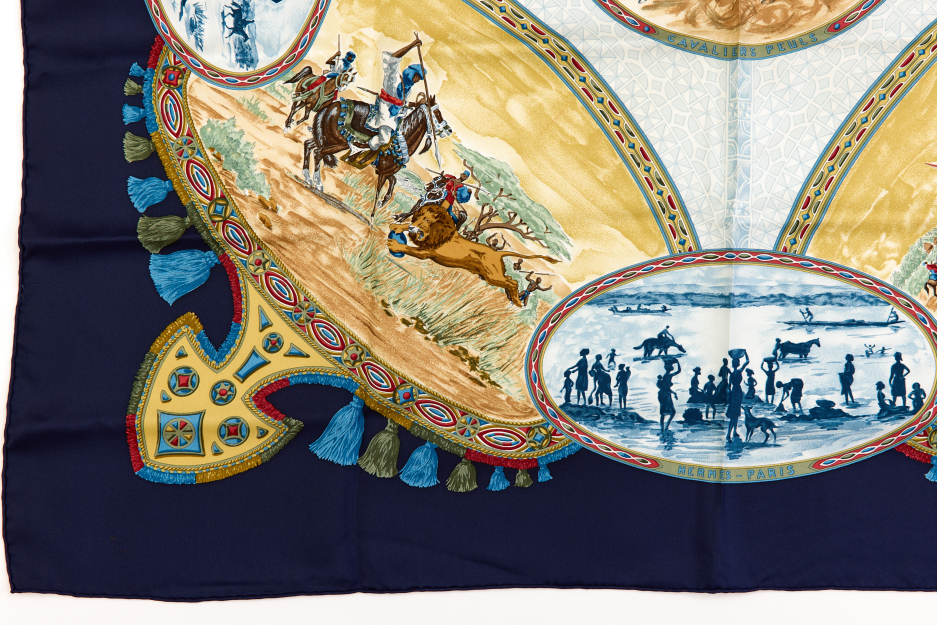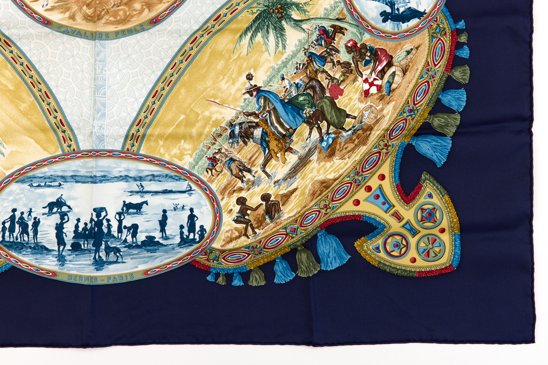 Hermes Silk Scarf Carre 90 “CAVALIERS PEULS” Blue Silk Scarf