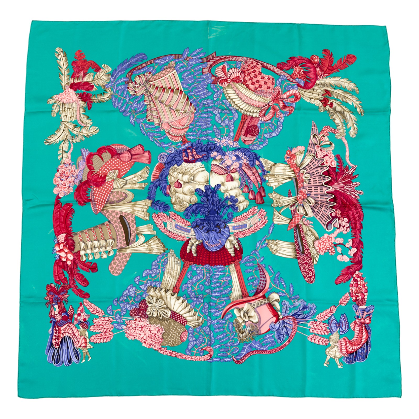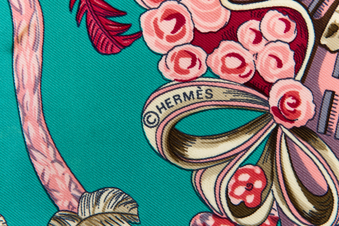 Hermes Silk Scarf Carre 90 “chapeau” Green Silk Scarf