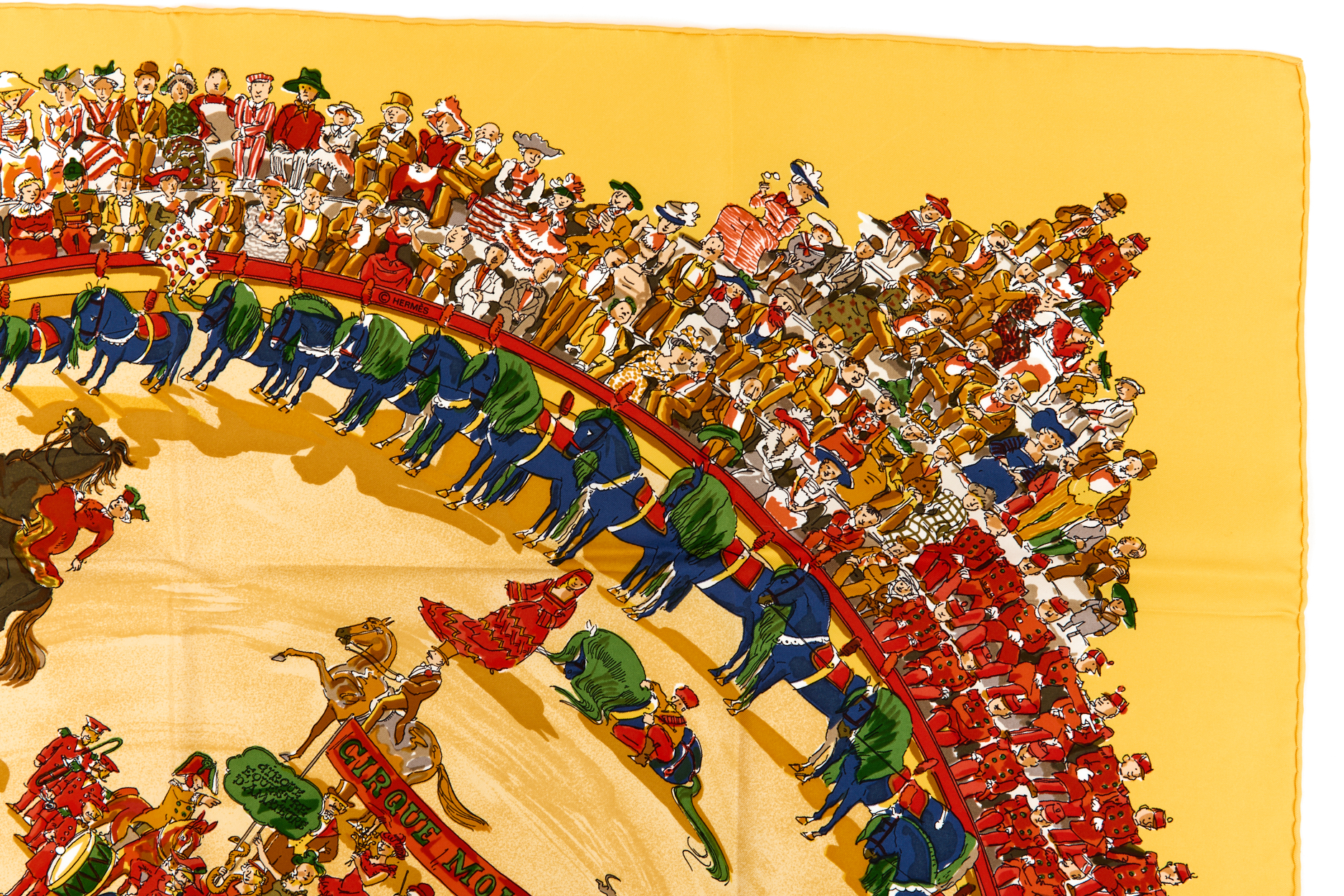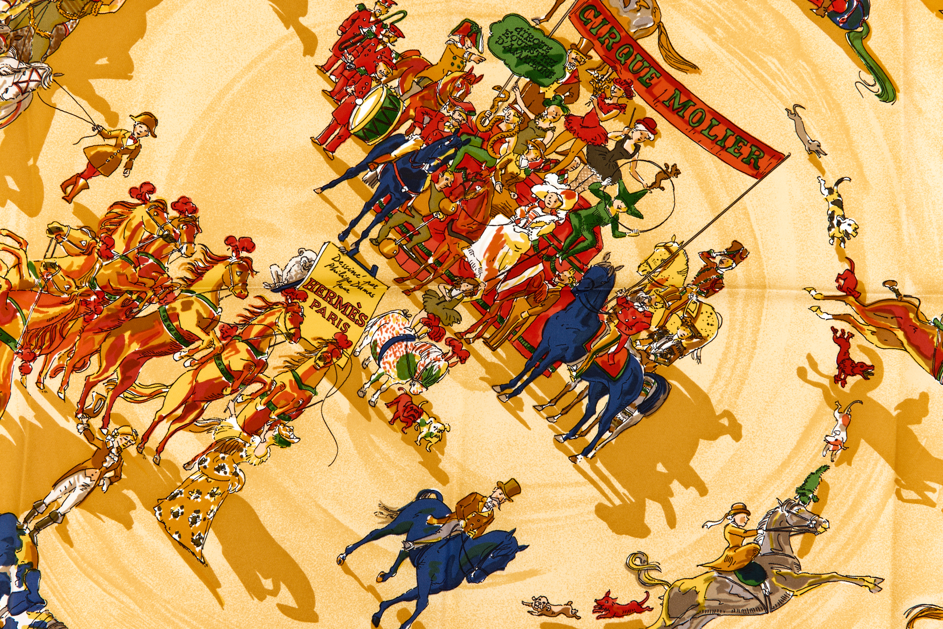 Hermes Silk Scarf Carre 90 “CIRQUE MOLIER” Yellow Silk Scarf