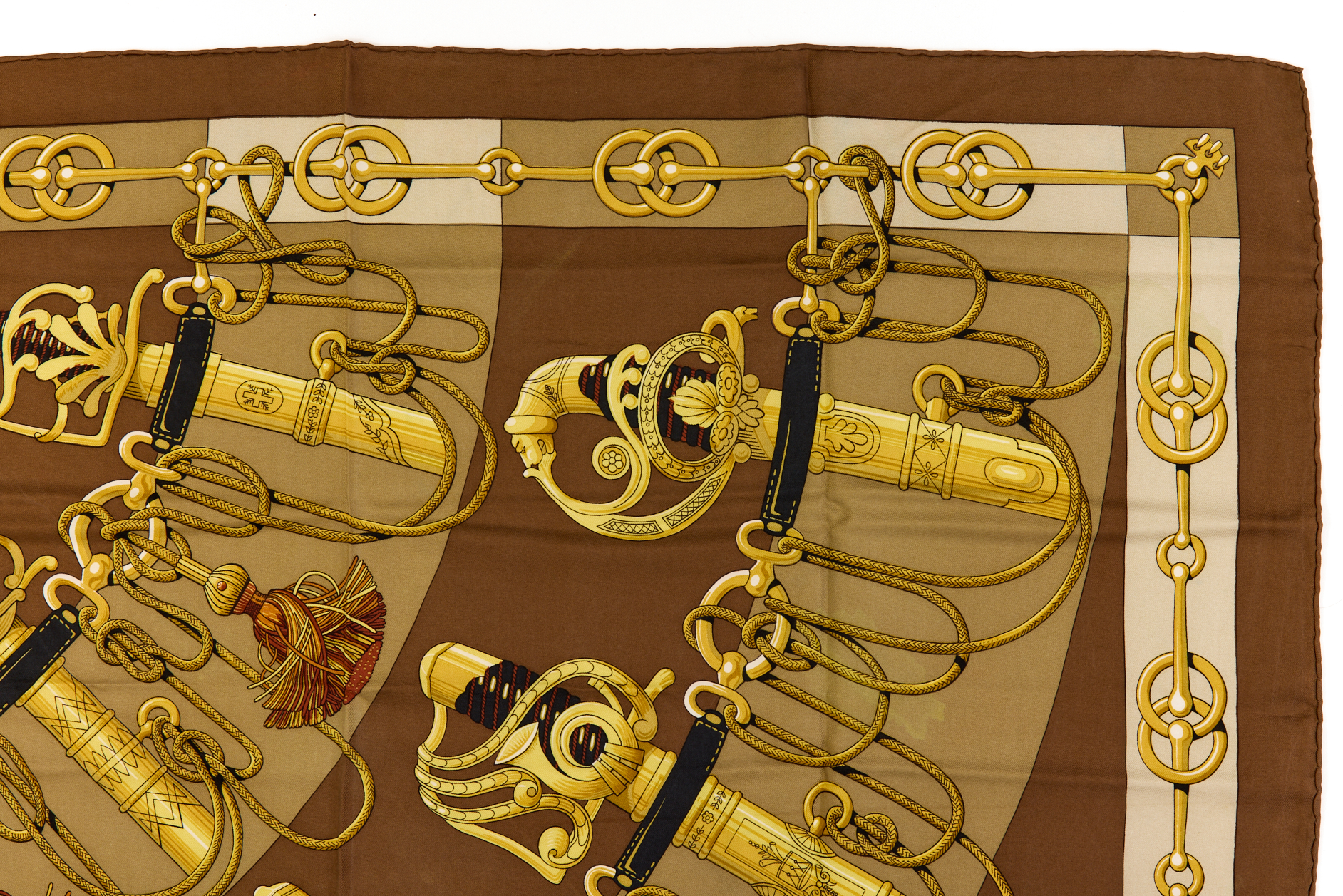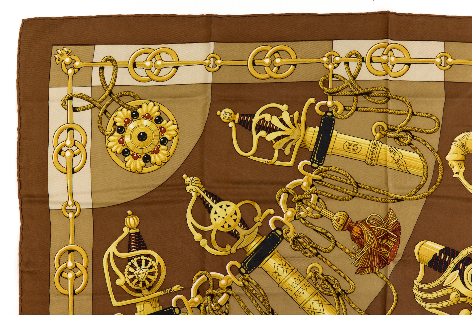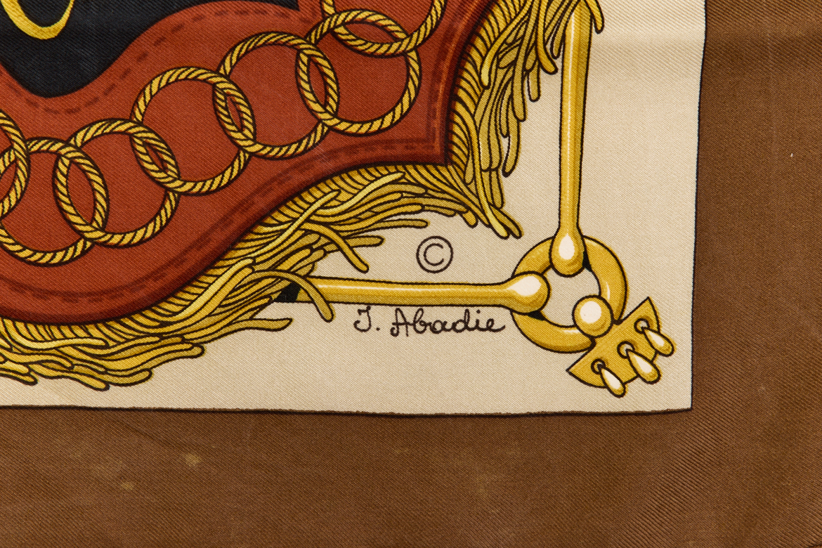 Hermes Silk Scarf Carre 90 “Cliquetis” Brown Silk Scarf