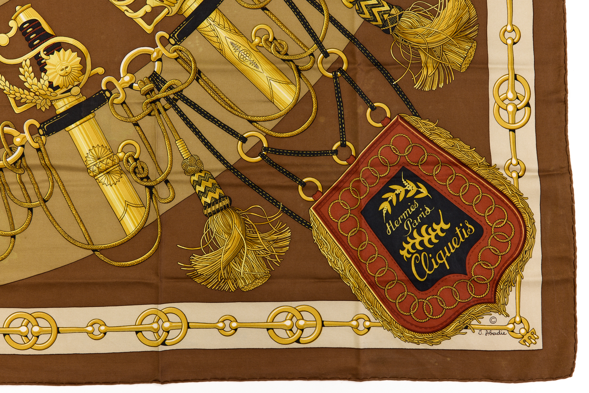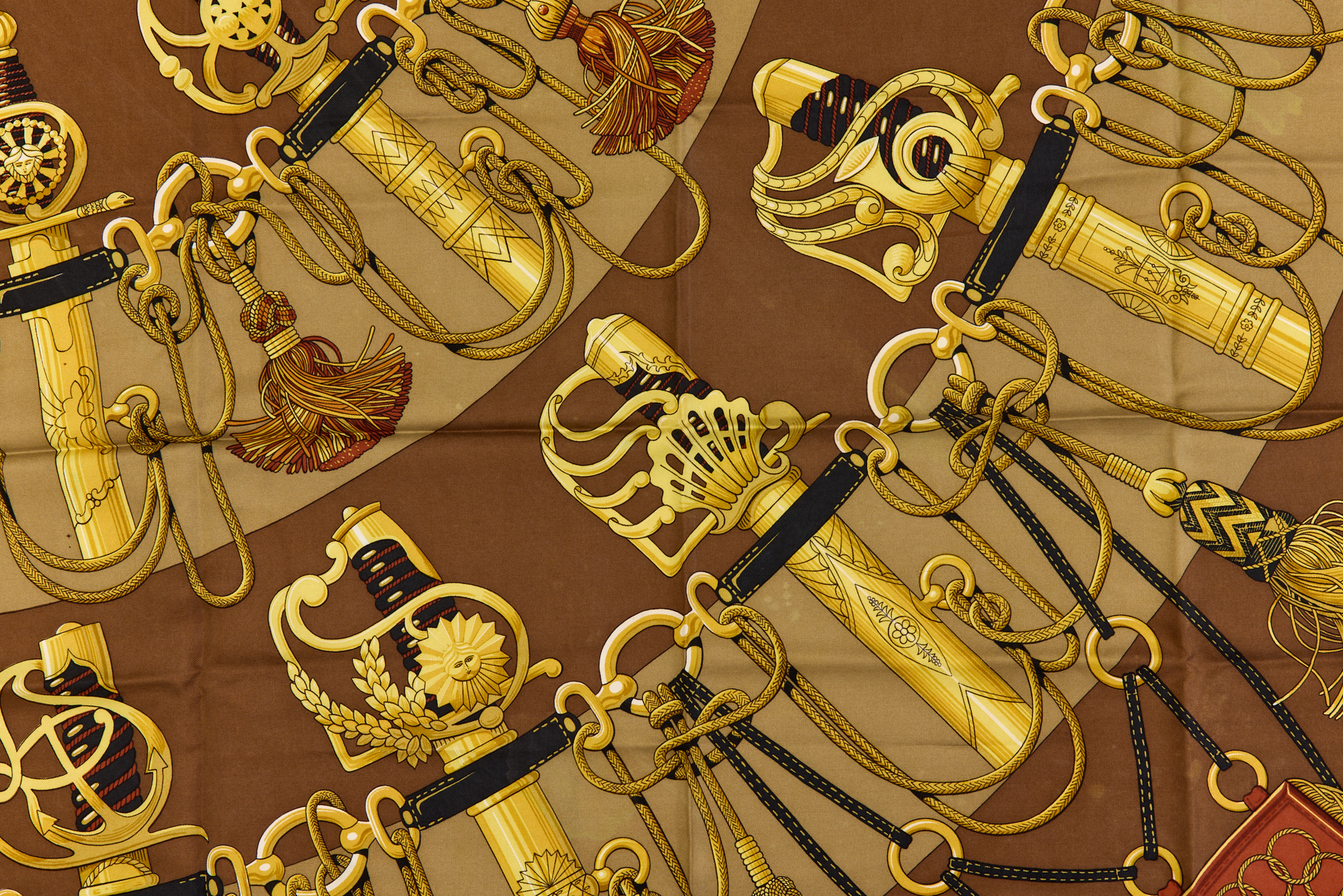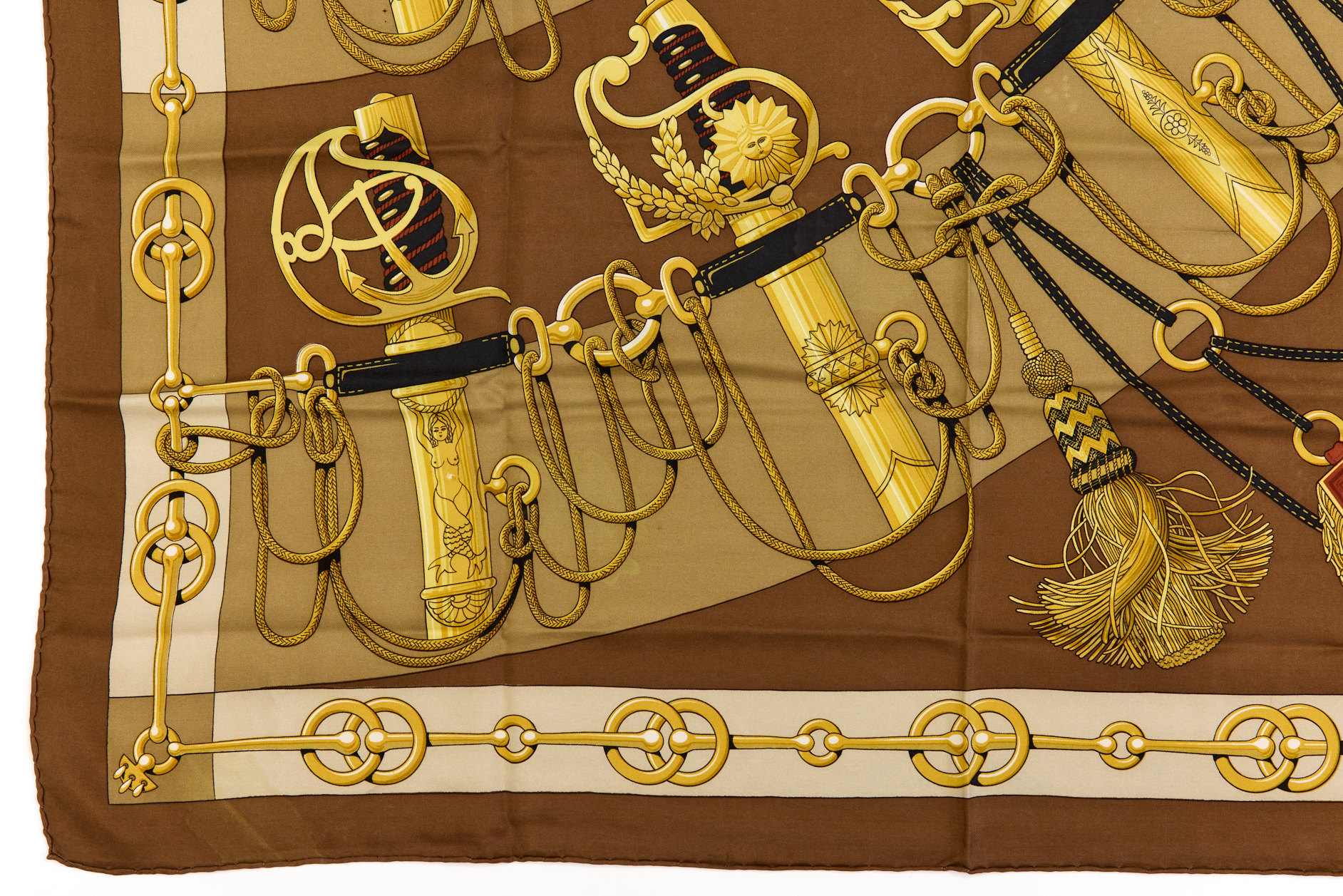 Hermes Silk Scarf Carre 90 “Cliquetis” Brown Silk Scarf