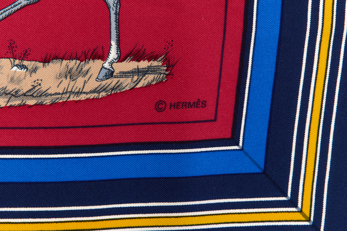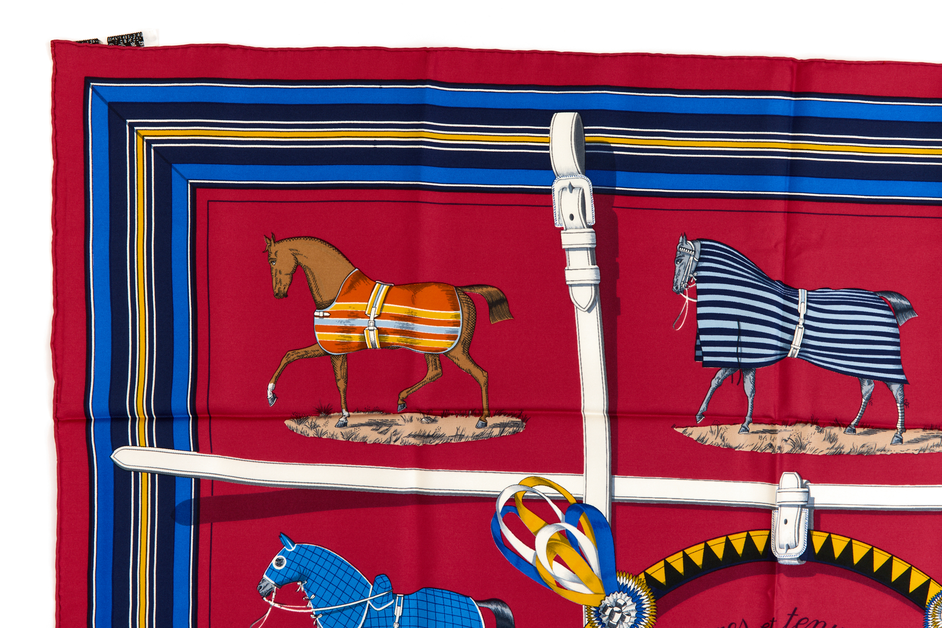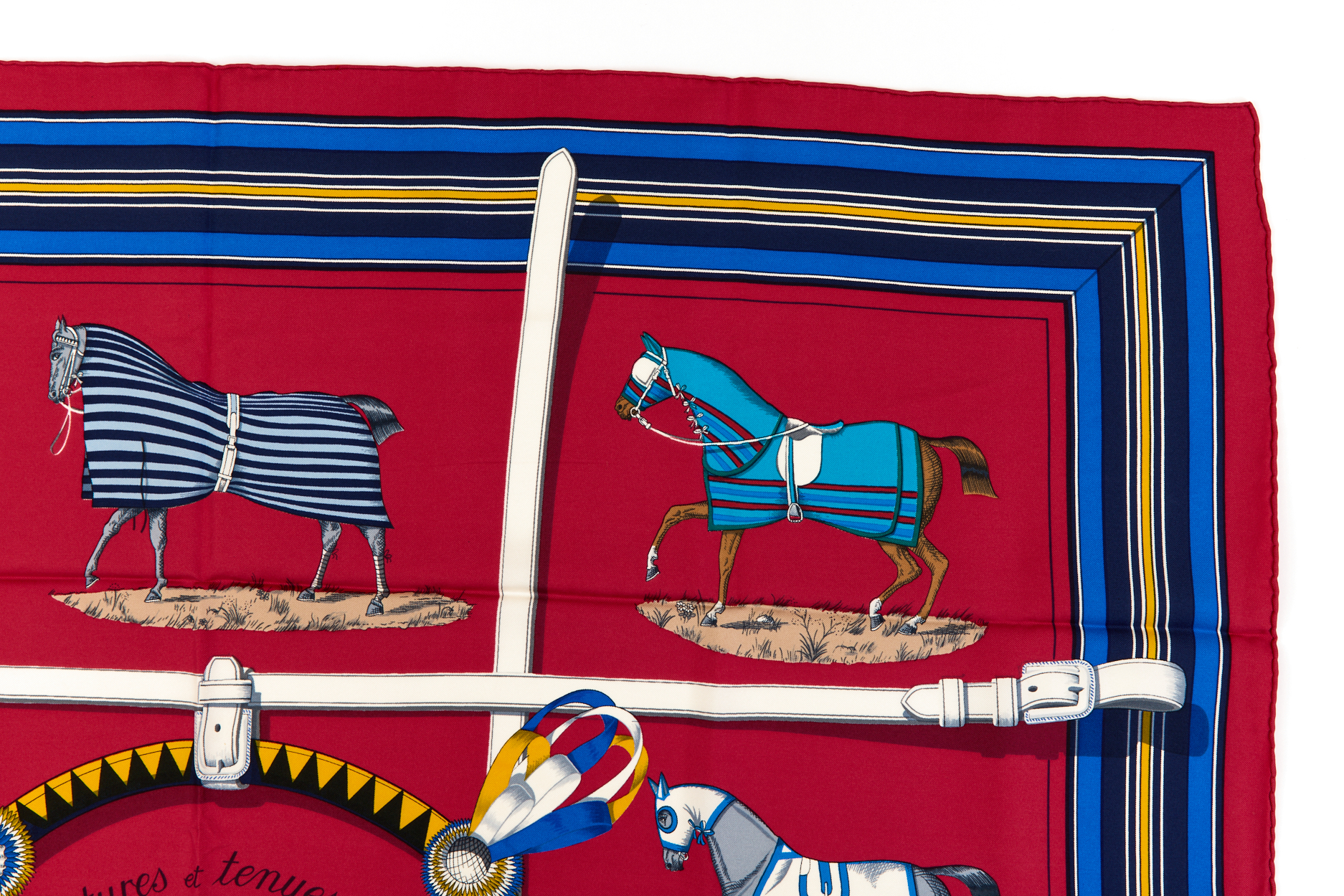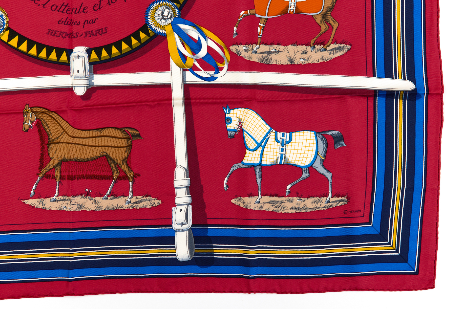 Hermes Silk Scarf Carre 90 “Couvertures et Tenues de Jour” Red Silk Scarf