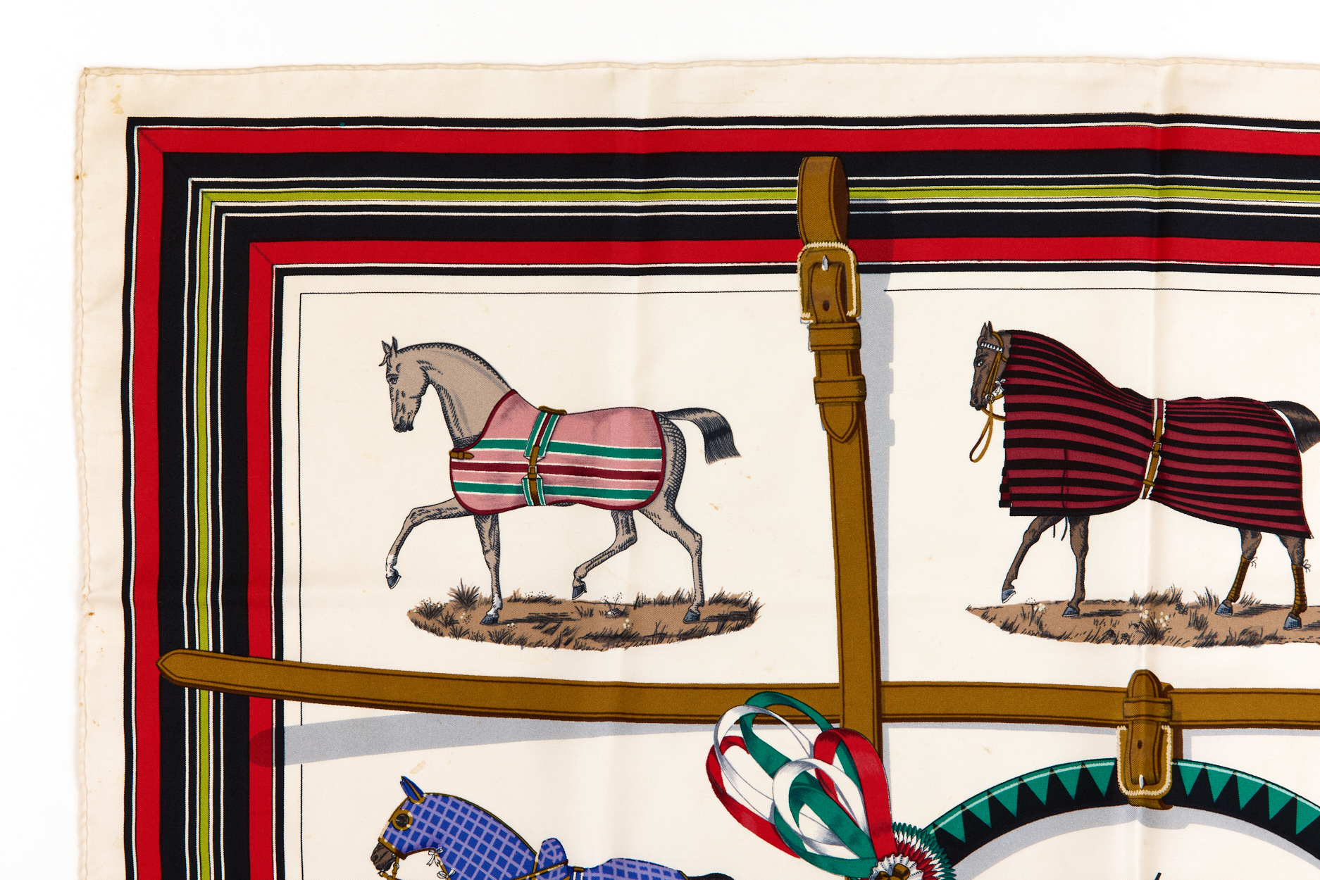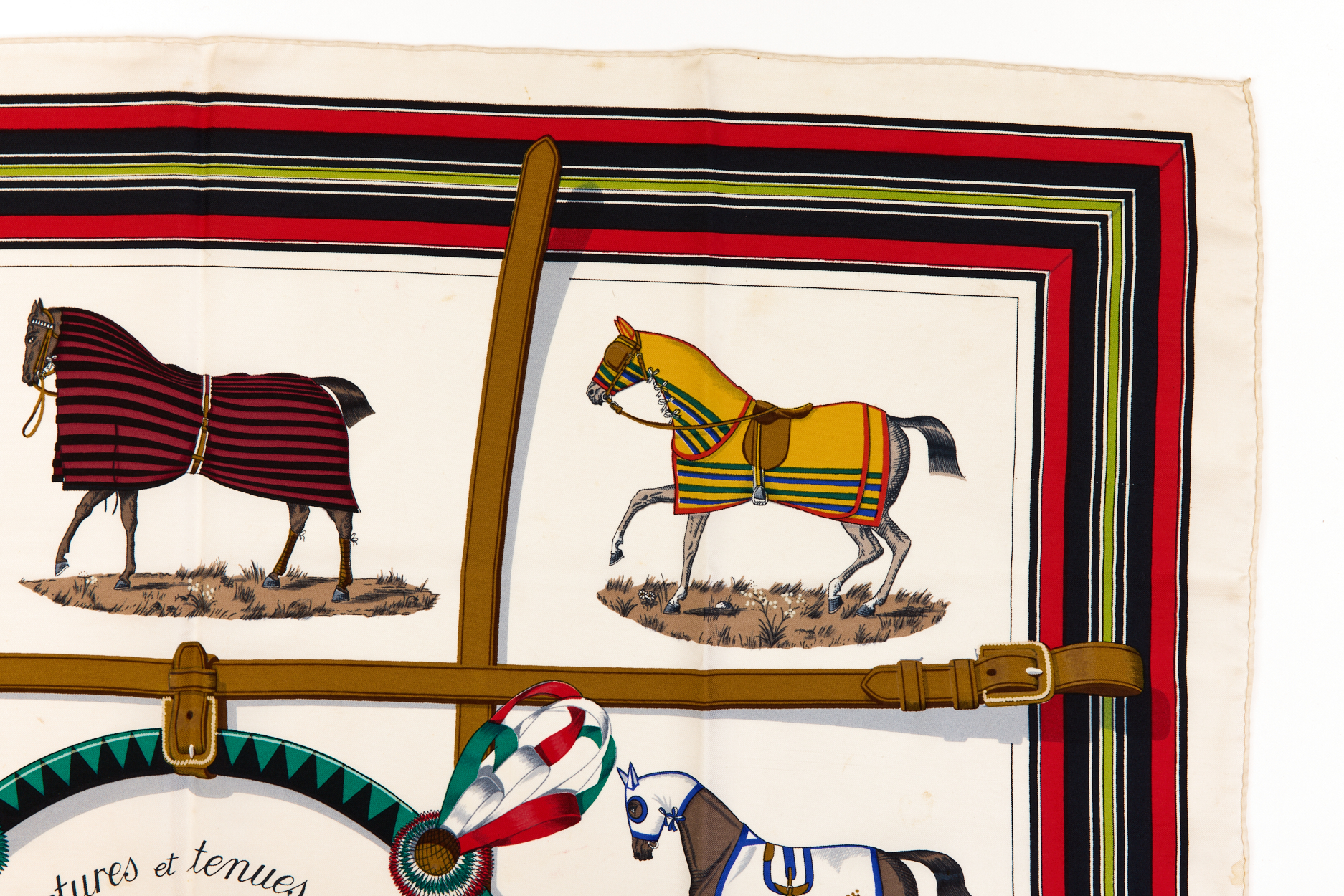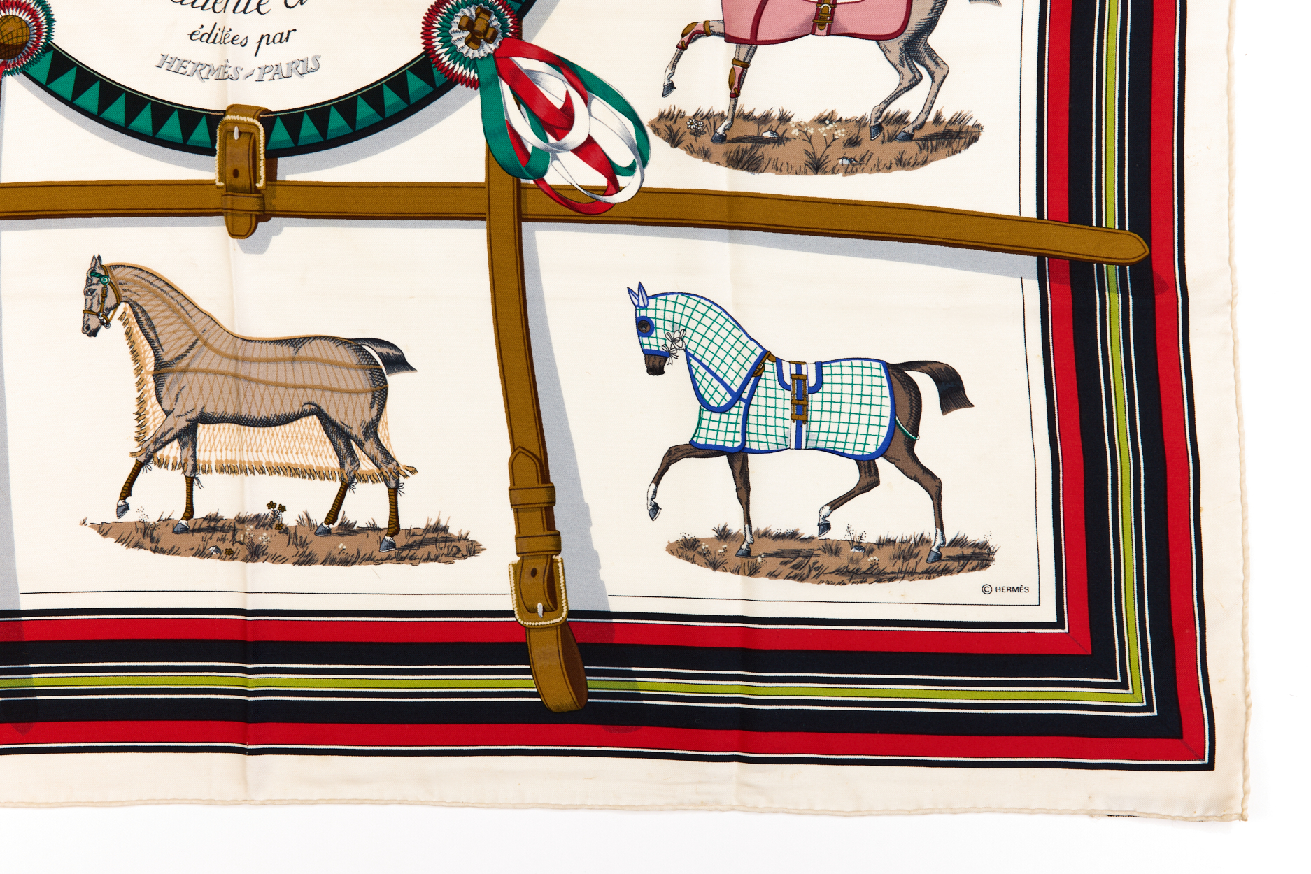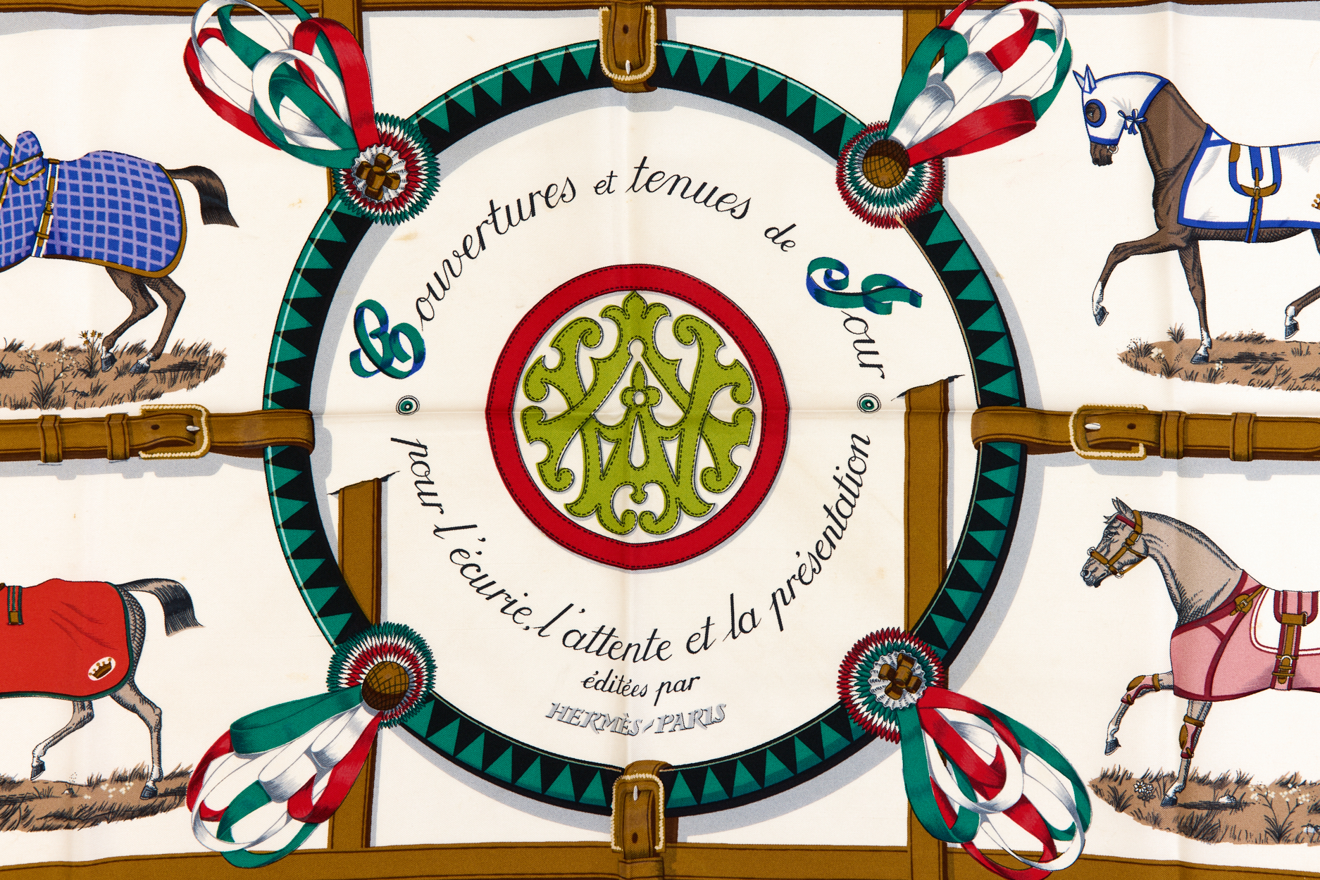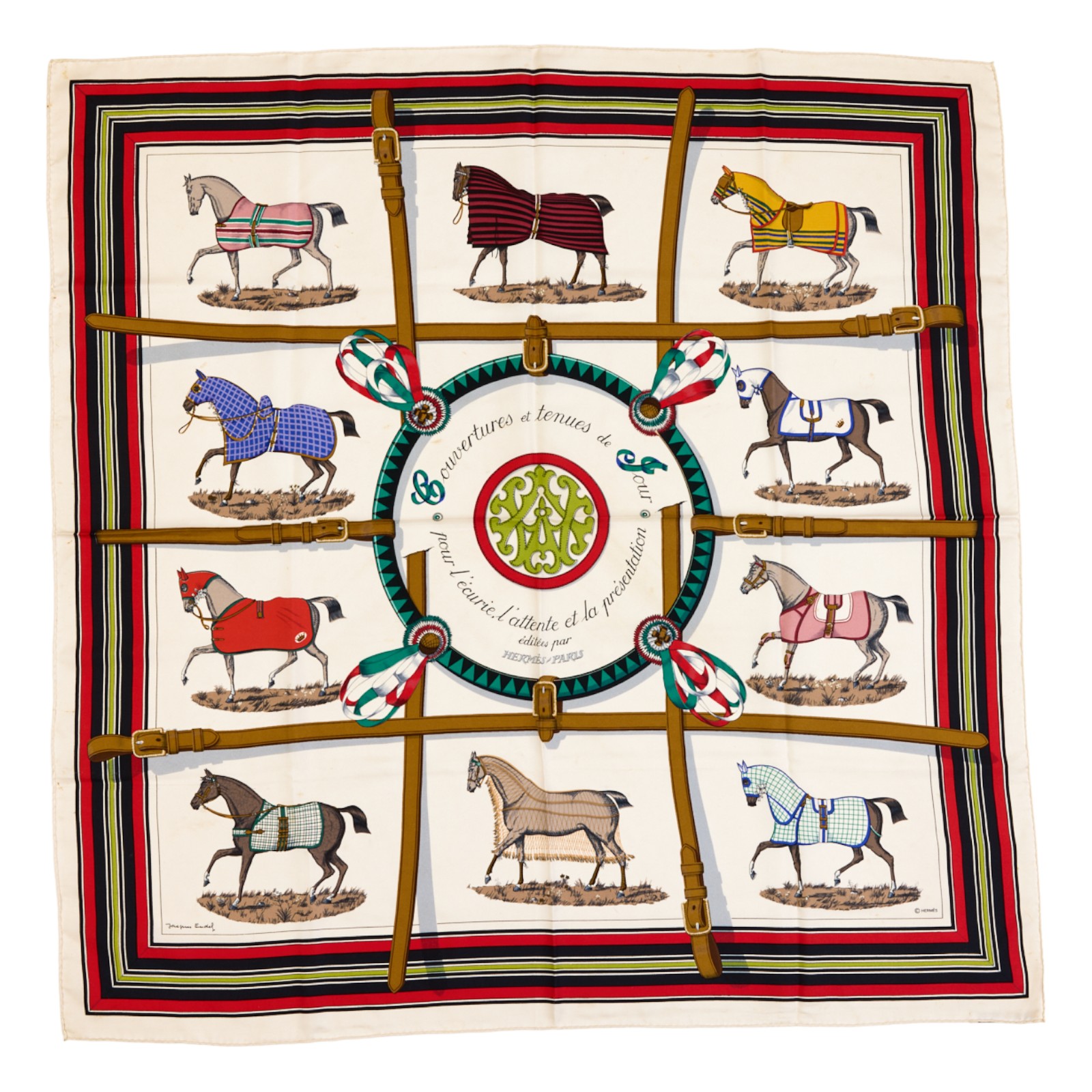 Hermes Silk Scarf Carre 90 “Couvertures et Tenues de Jour” White Silk Scarf