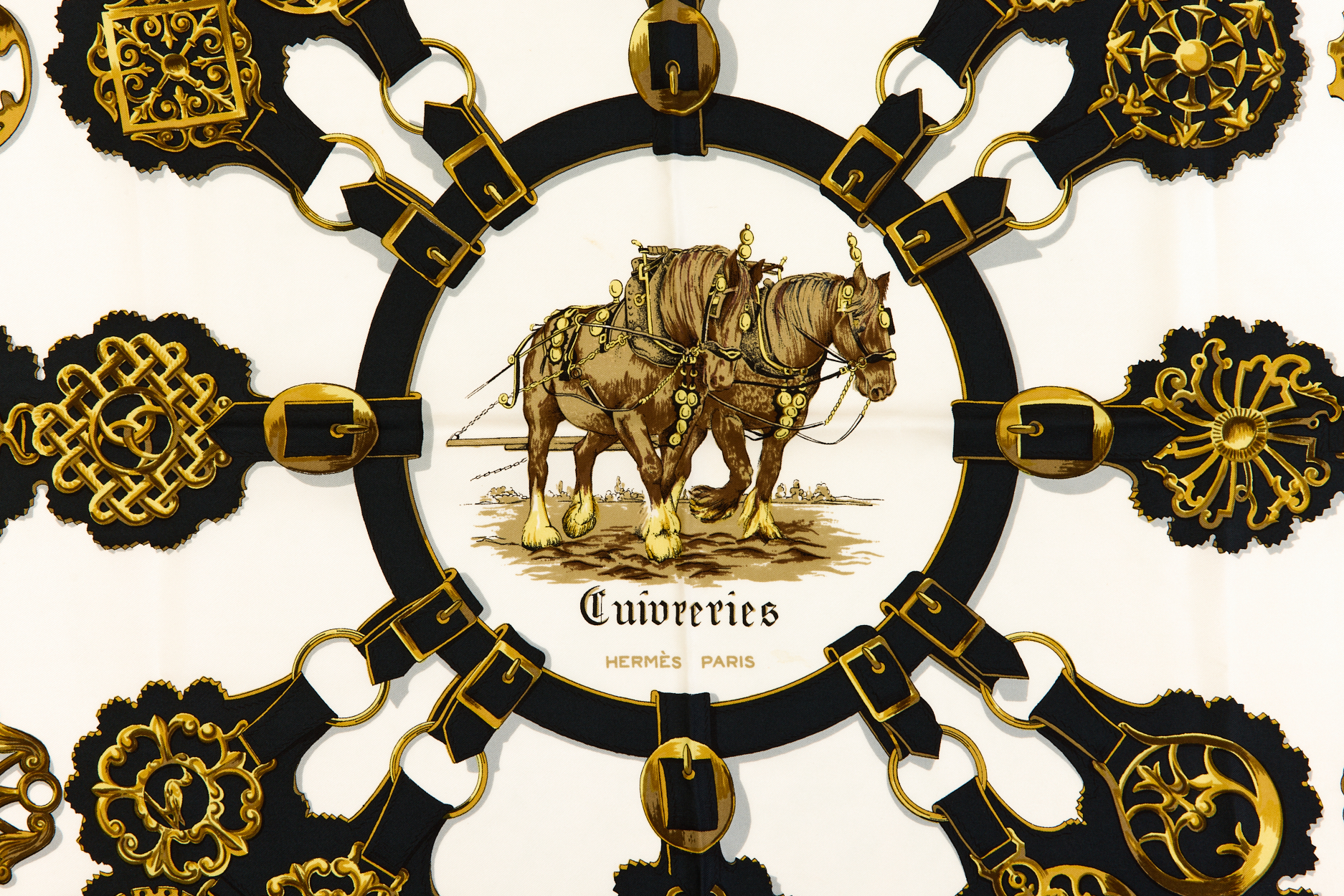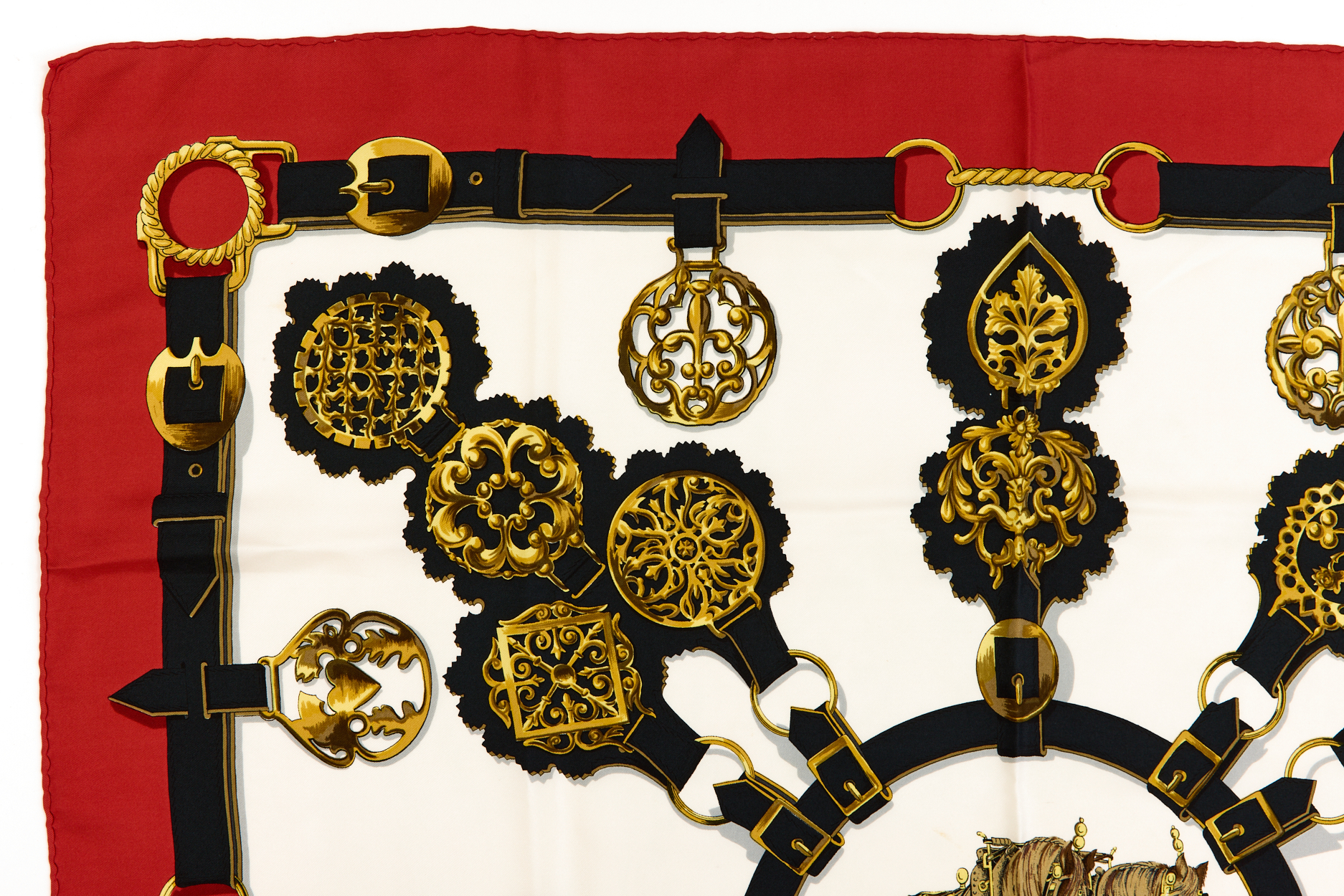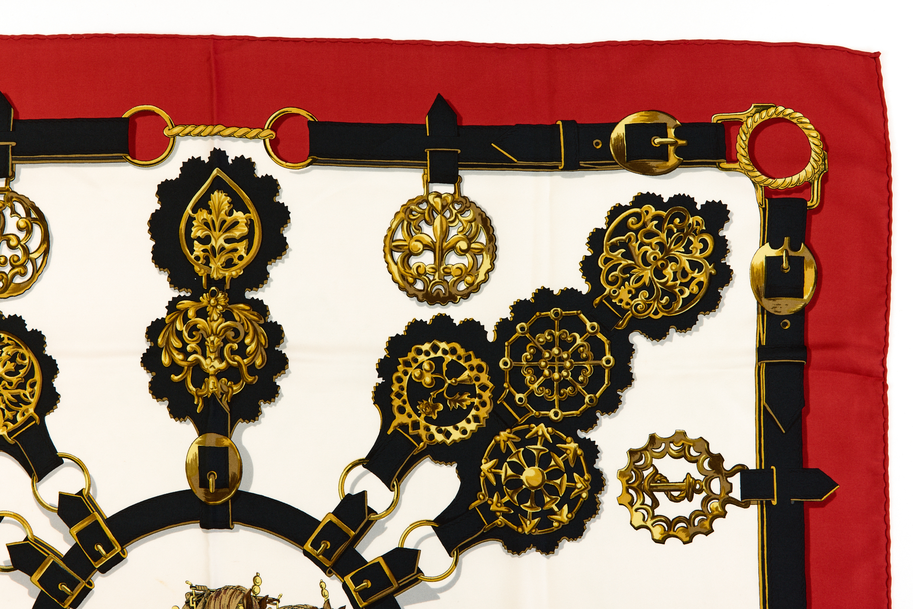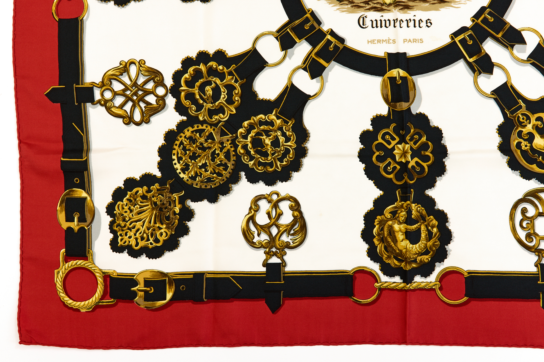 Hermes Silk Scarf Carre 90 “Cuivreries” Red Silk Scarf