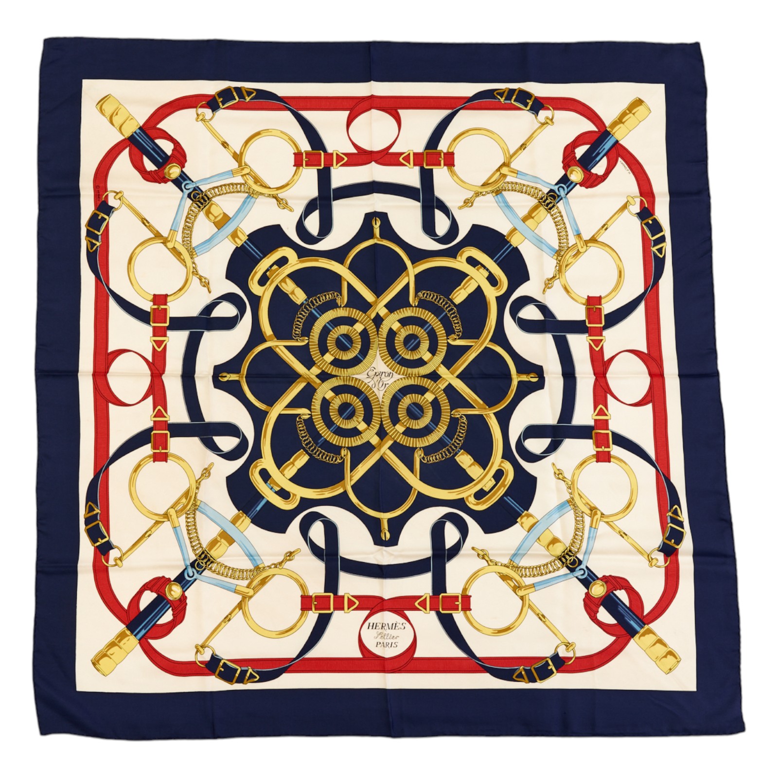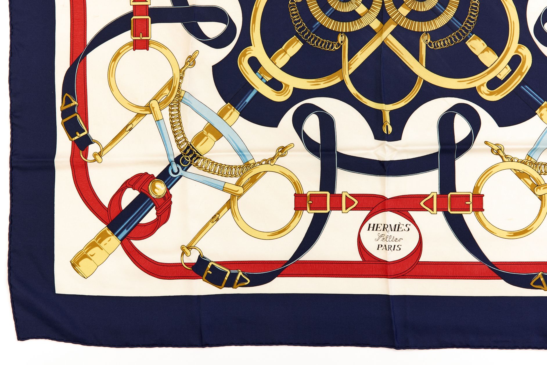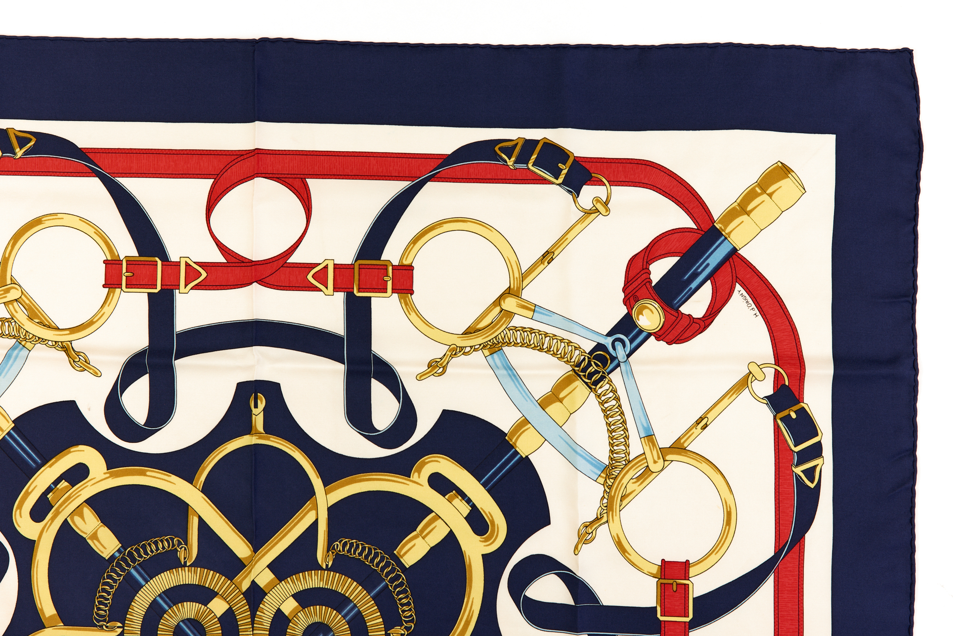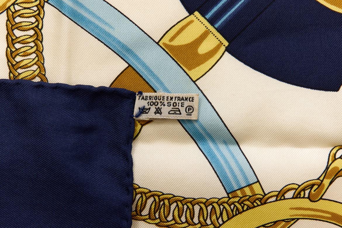 Hermes Silk Scarf Carre 90 “”Eperon d’Or”” Blue Silk Scarf