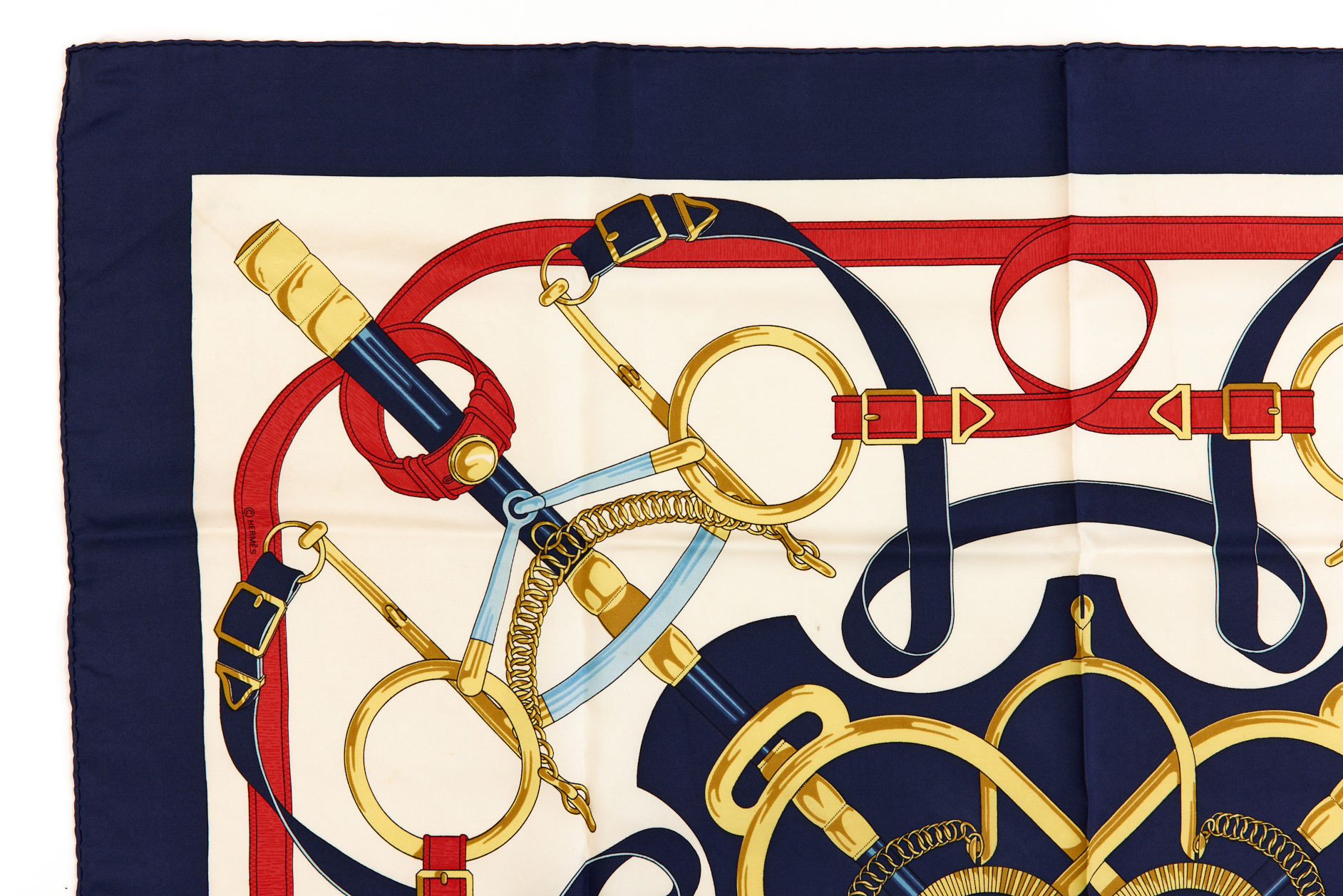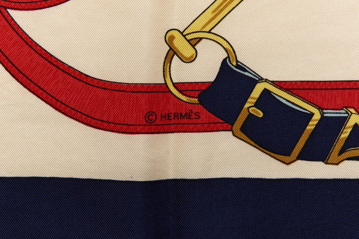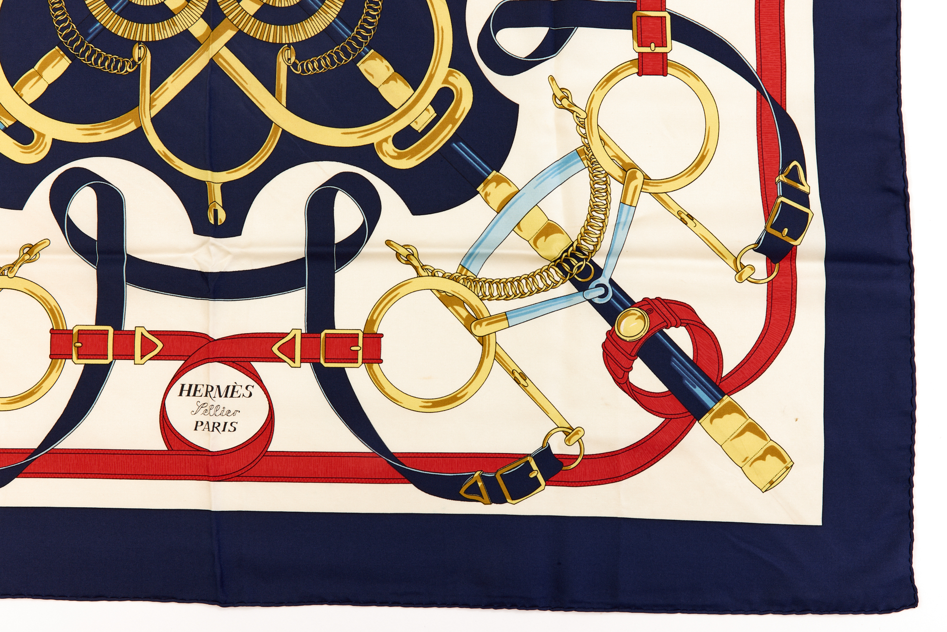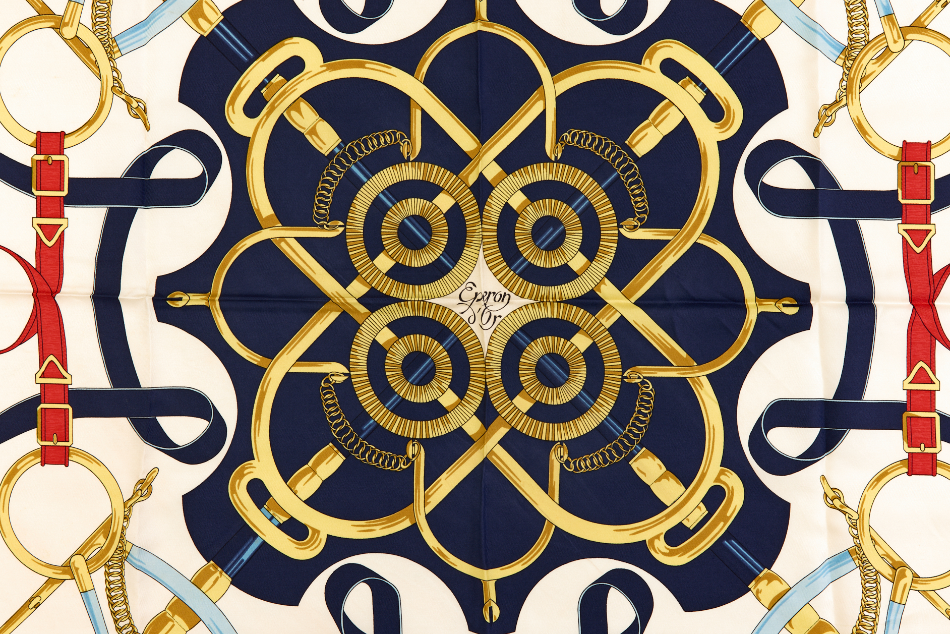 Hermes Silk Scarf Carre 90 “”Eperon d’Or”” Blue Silk Scarf