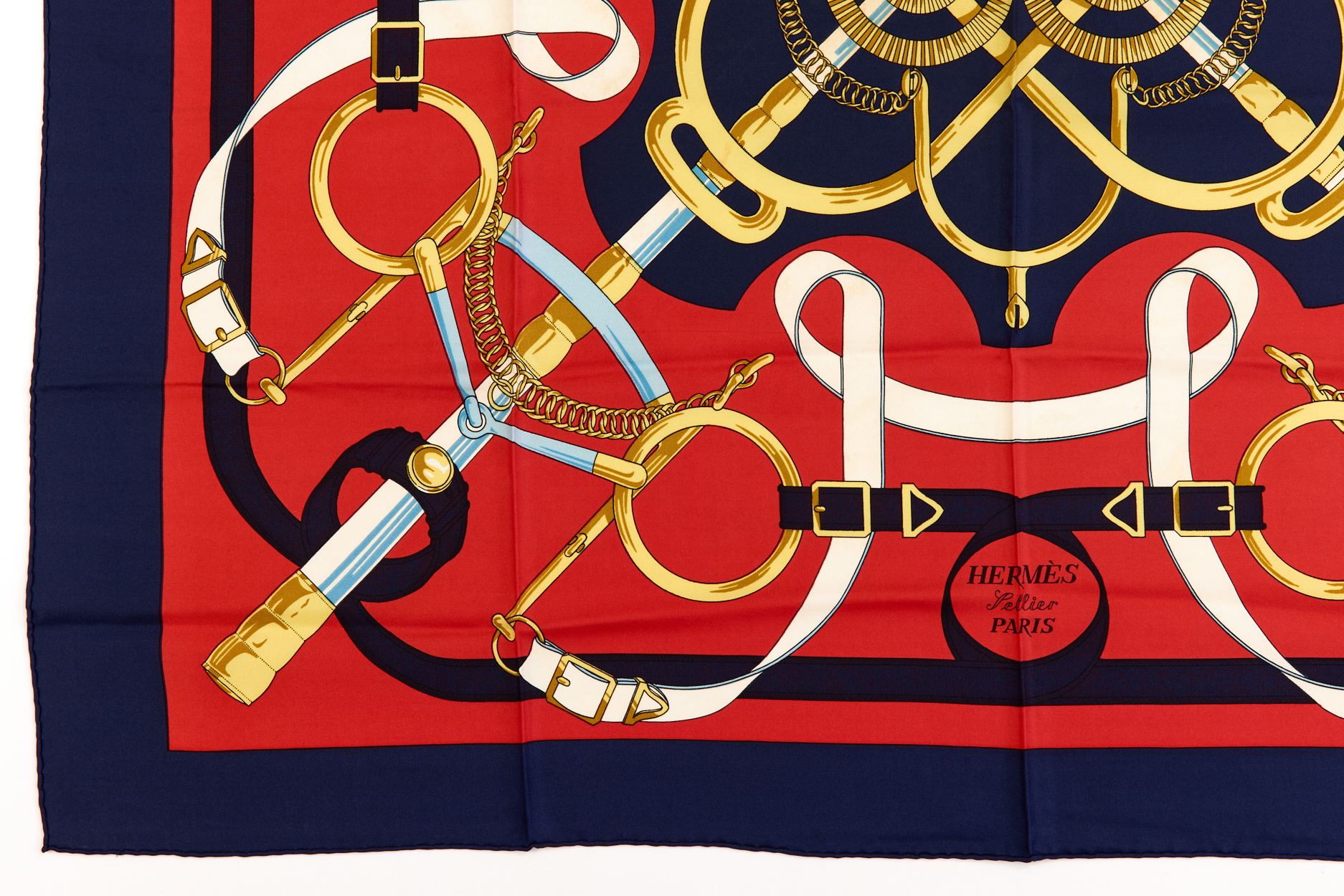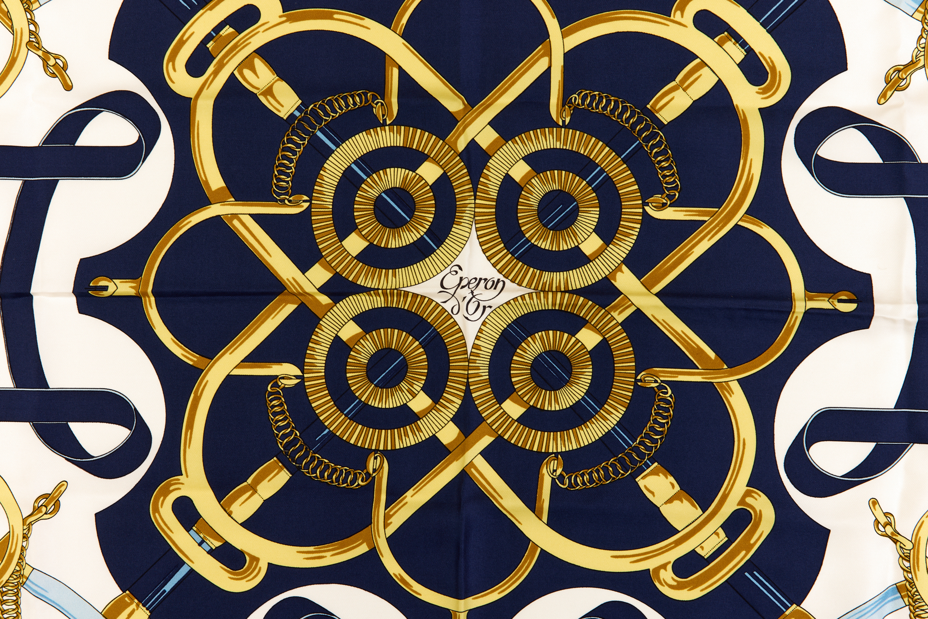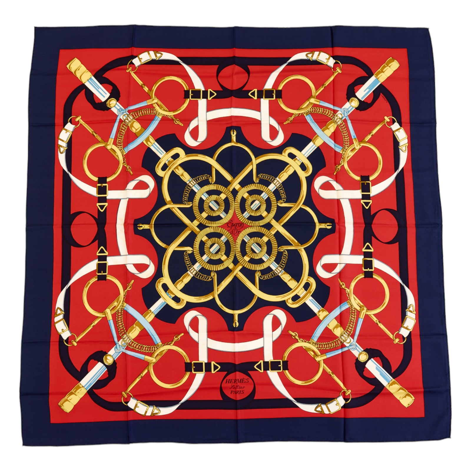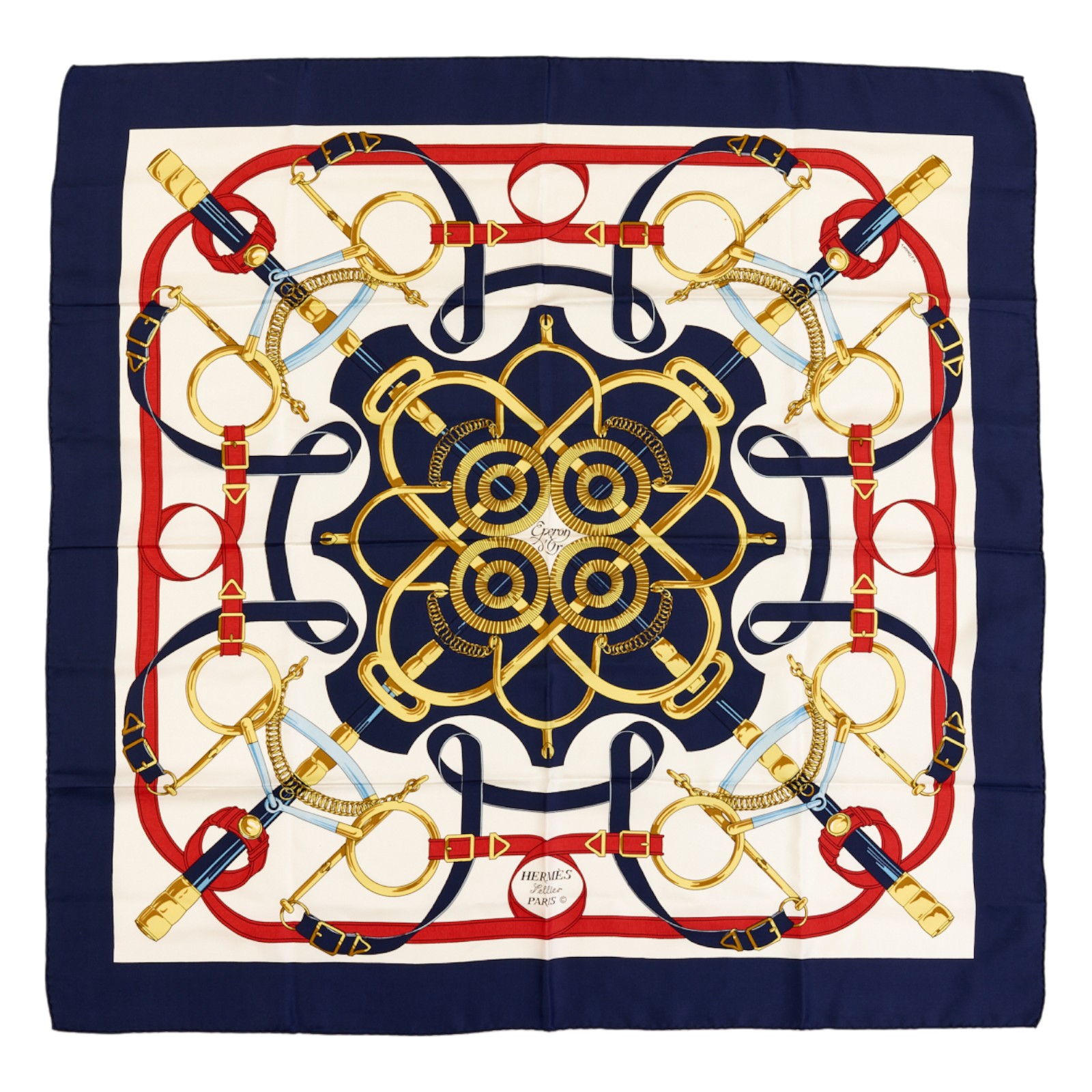 Hermes Silk Scarf Carre 90 “”Eperon d’Or”” Blue Silk Scarf