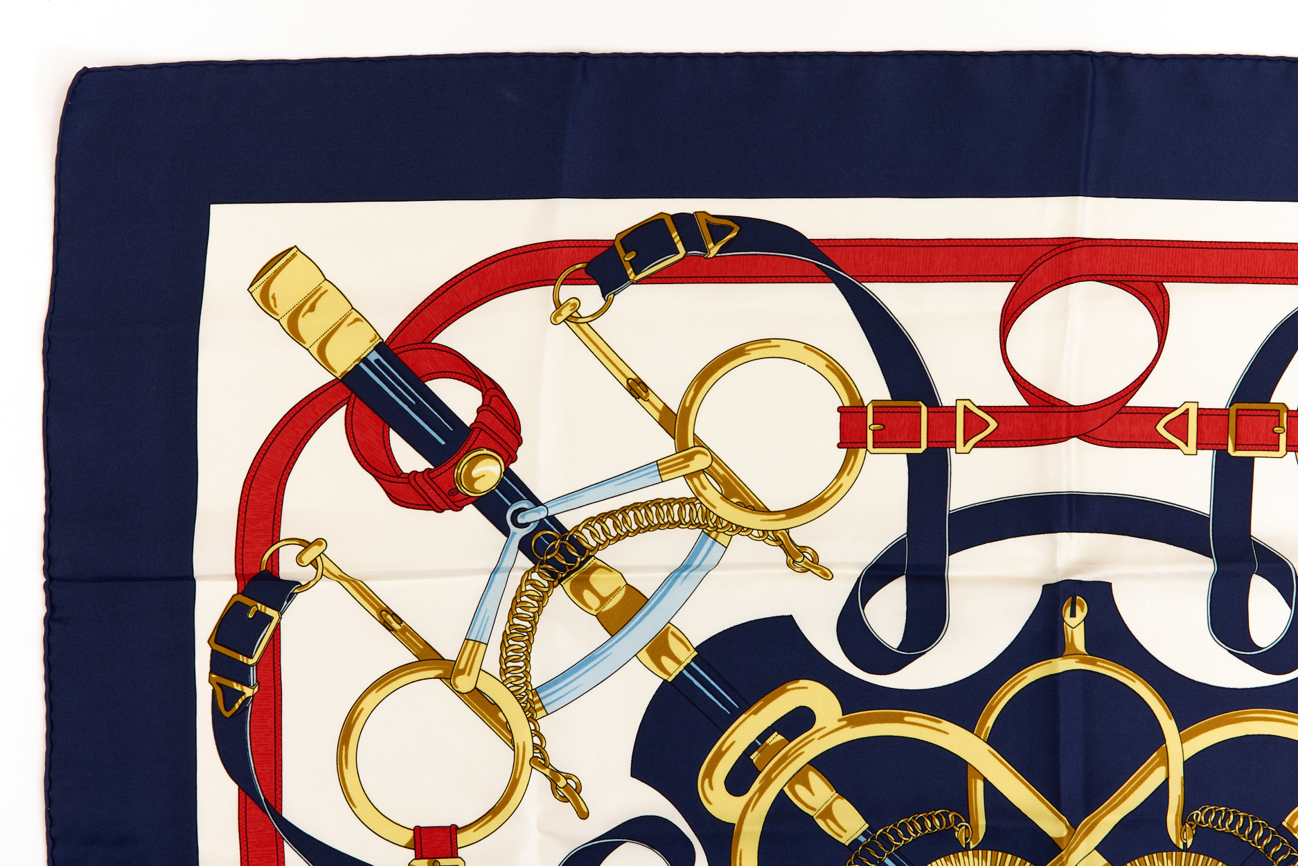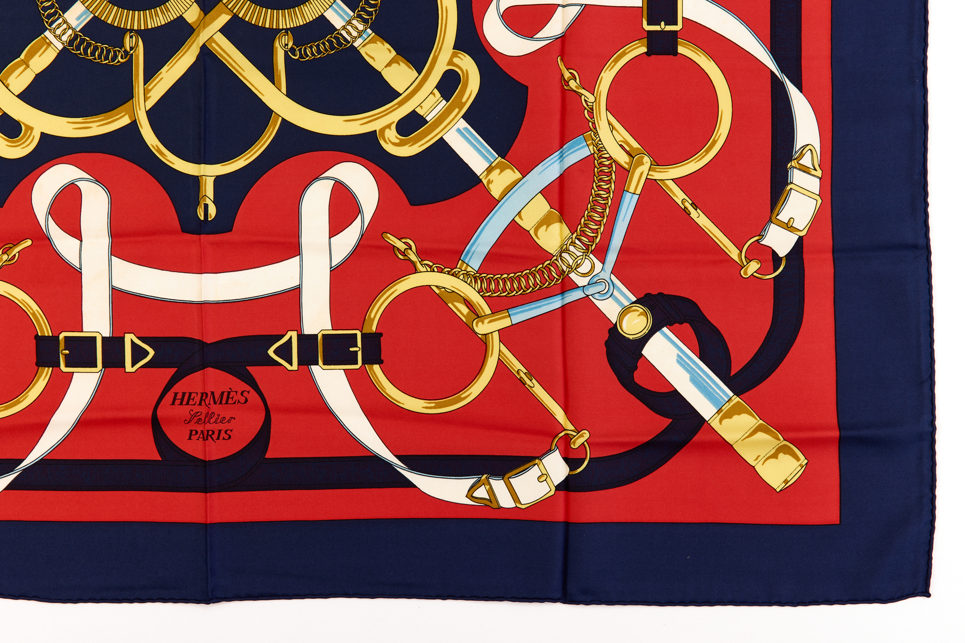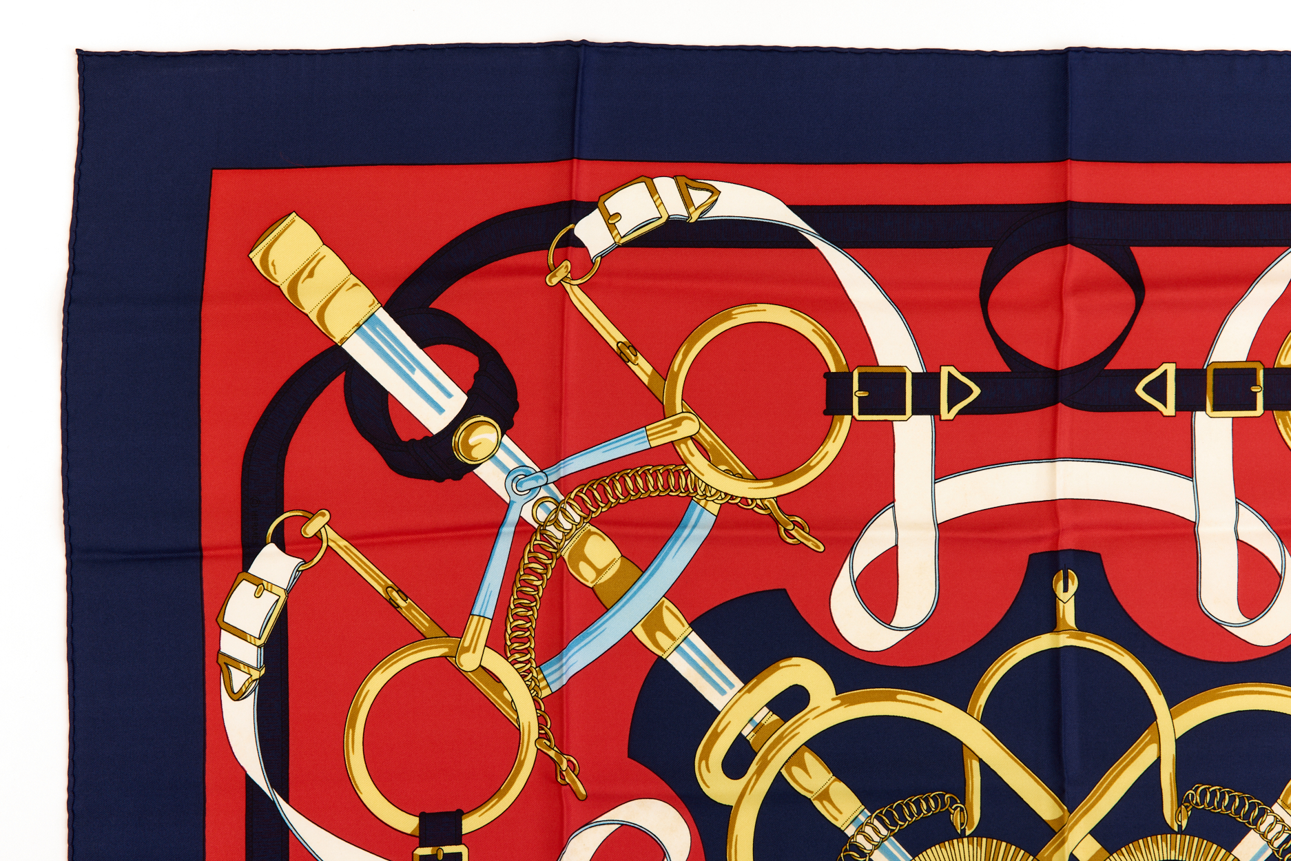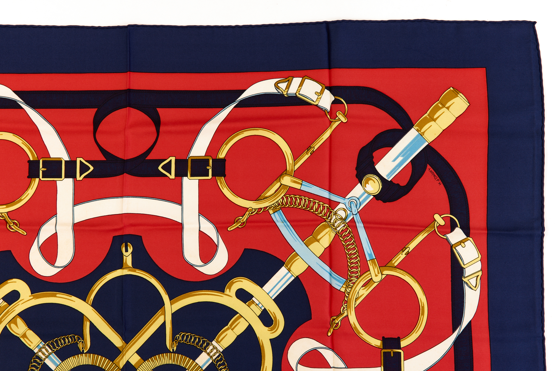 Hermes Silk Scarf Carre 90 “”Eperon d’Or”” Blue Silk Scarf