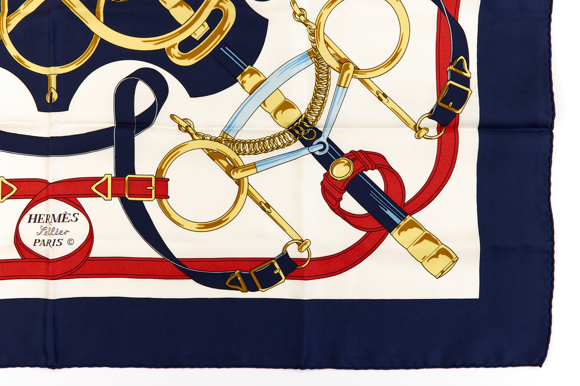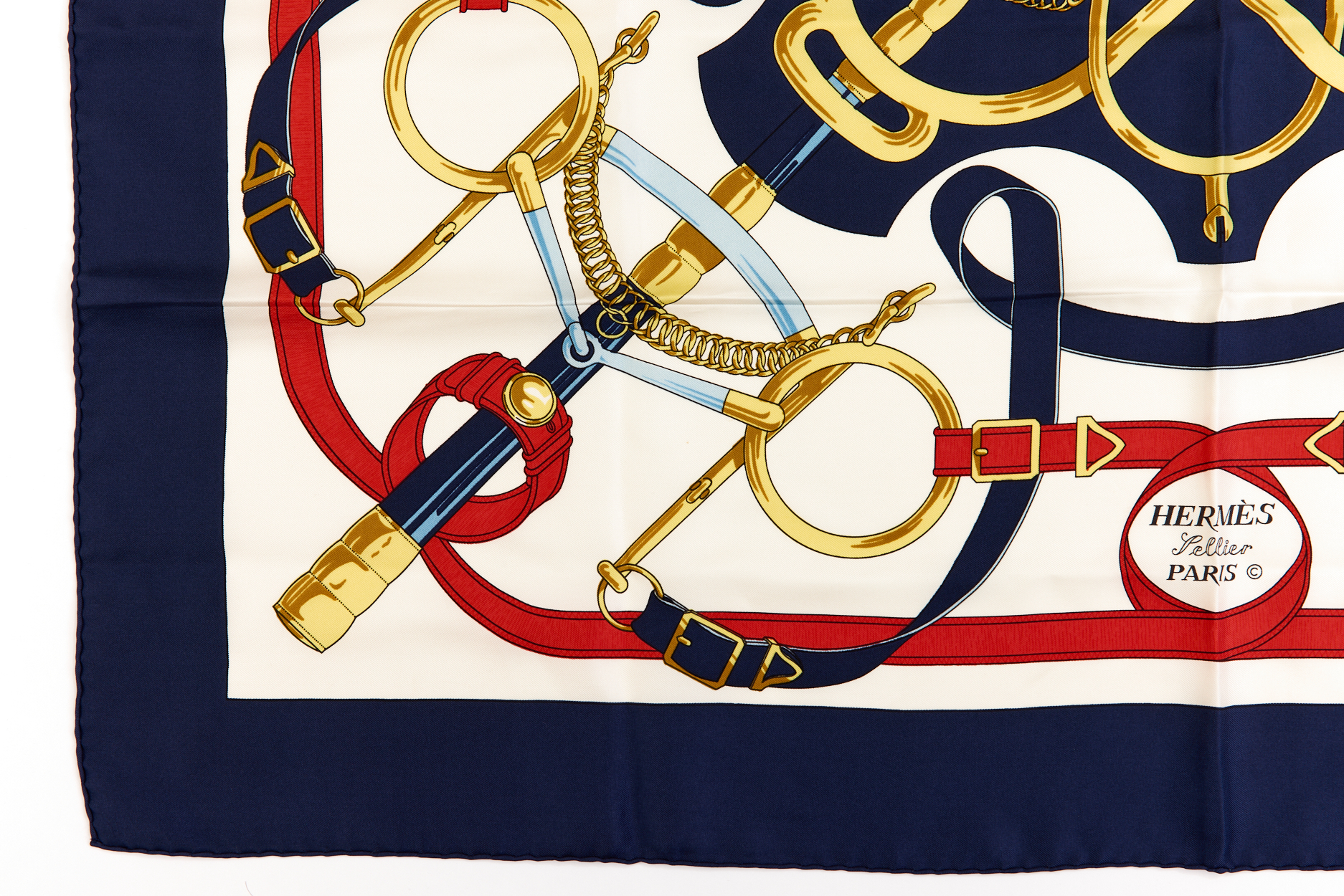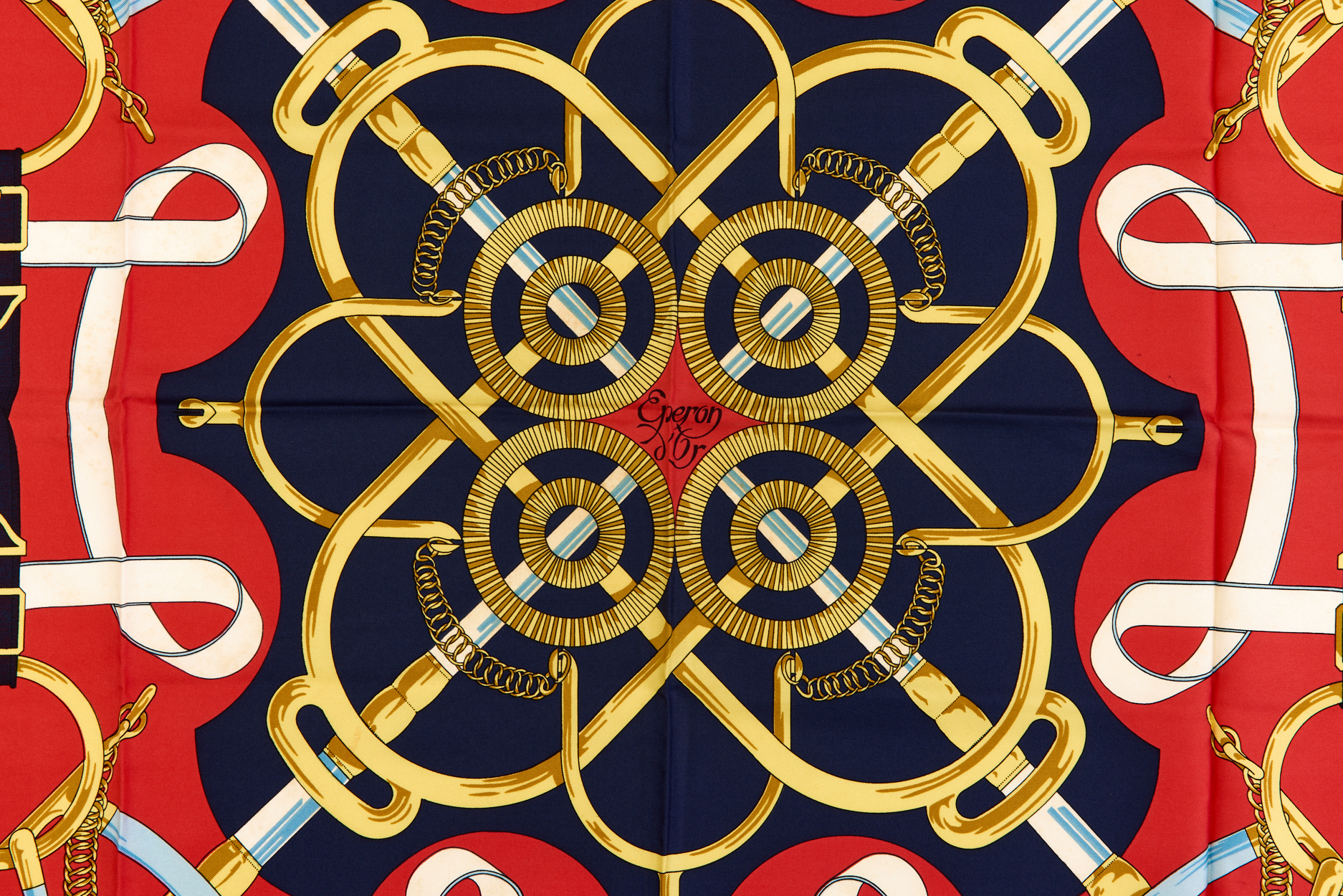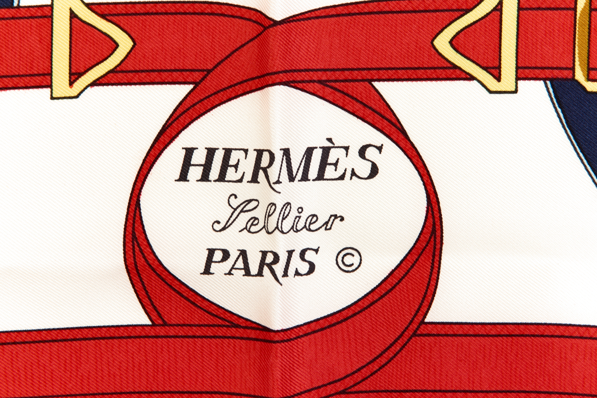 Hermes Silk Scarf Carre 90 “”Eperon d’Or”” Blue Silk Scarf