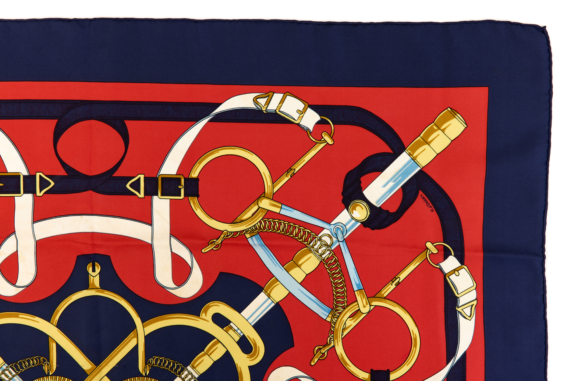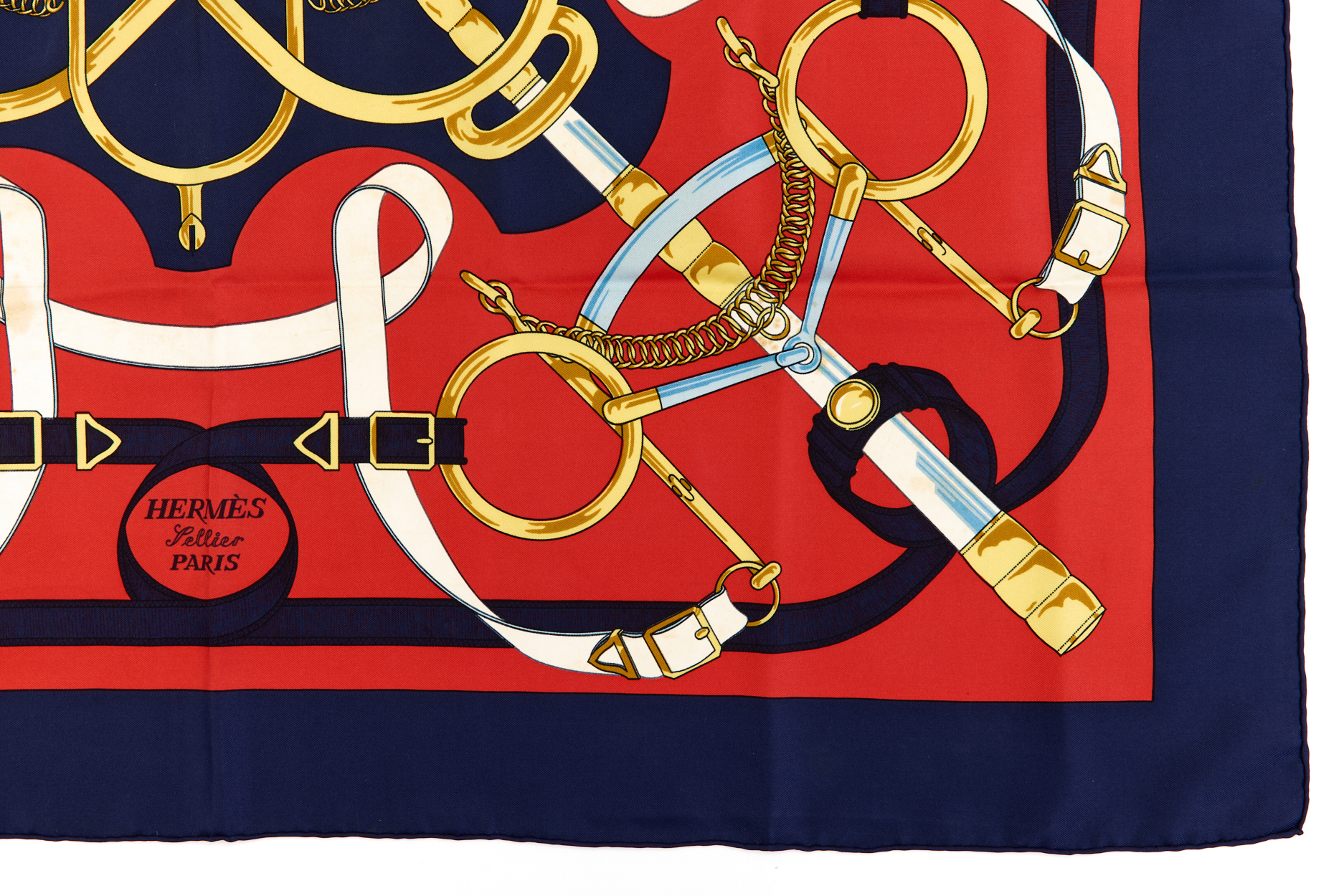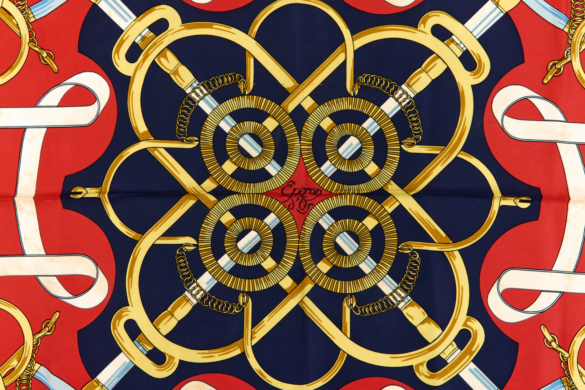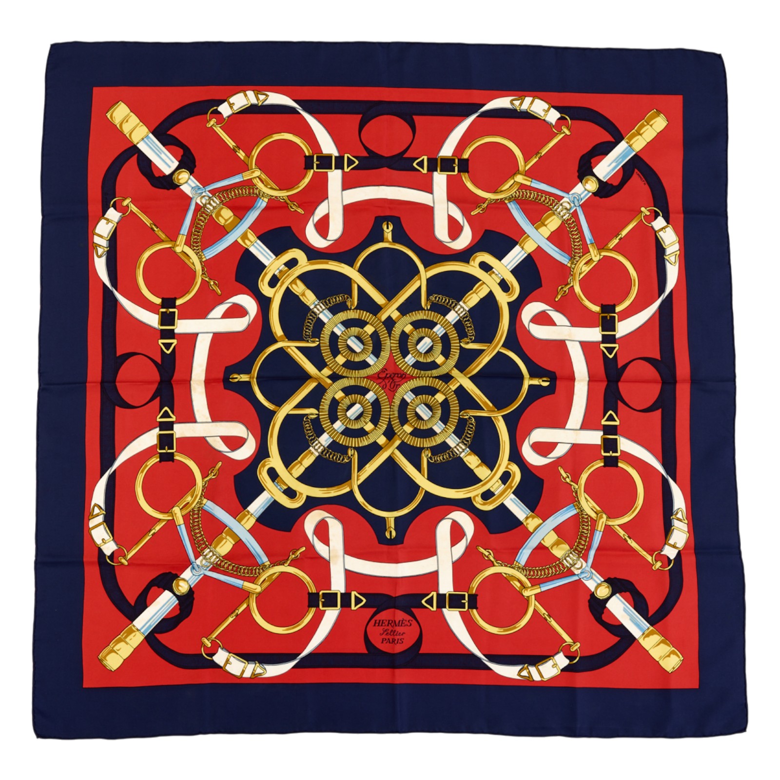 Hermes Silk Scarf Carre 90 “Eperon dĂ•Or” Blue Silk Scarf Brand : HERMESDesign by Henri dĂ•Origny Issued 1974Item : ScarfSize : 88.5cm * 88.5cmMaterial : 100% SilkCondition Score: B*For reference. The condition shown in the image takes precedence.*Please see the last two photos to see if the tag is still attached