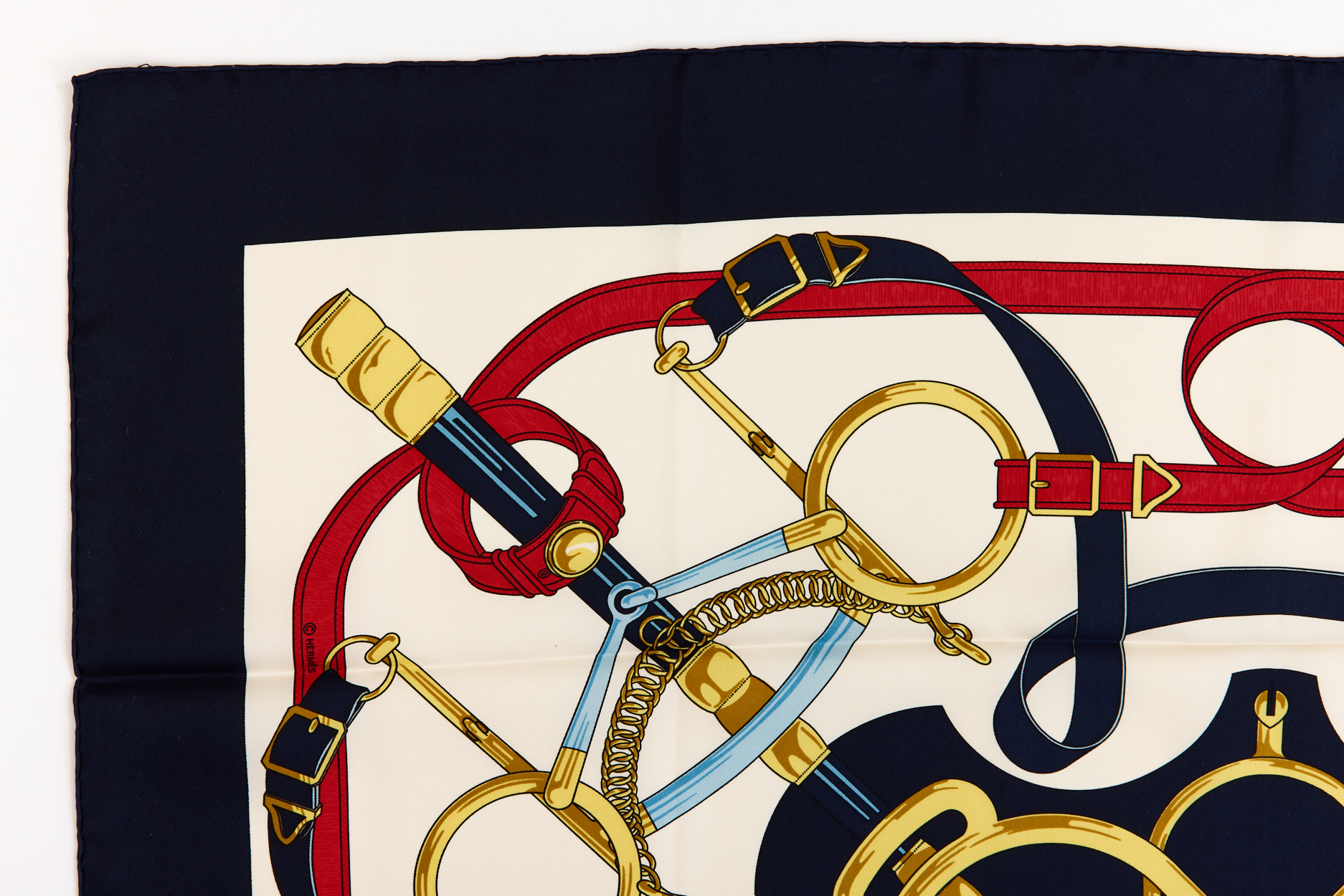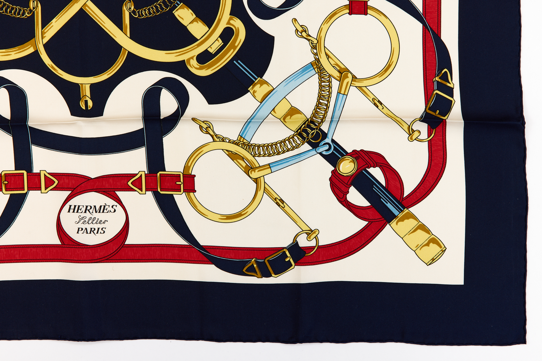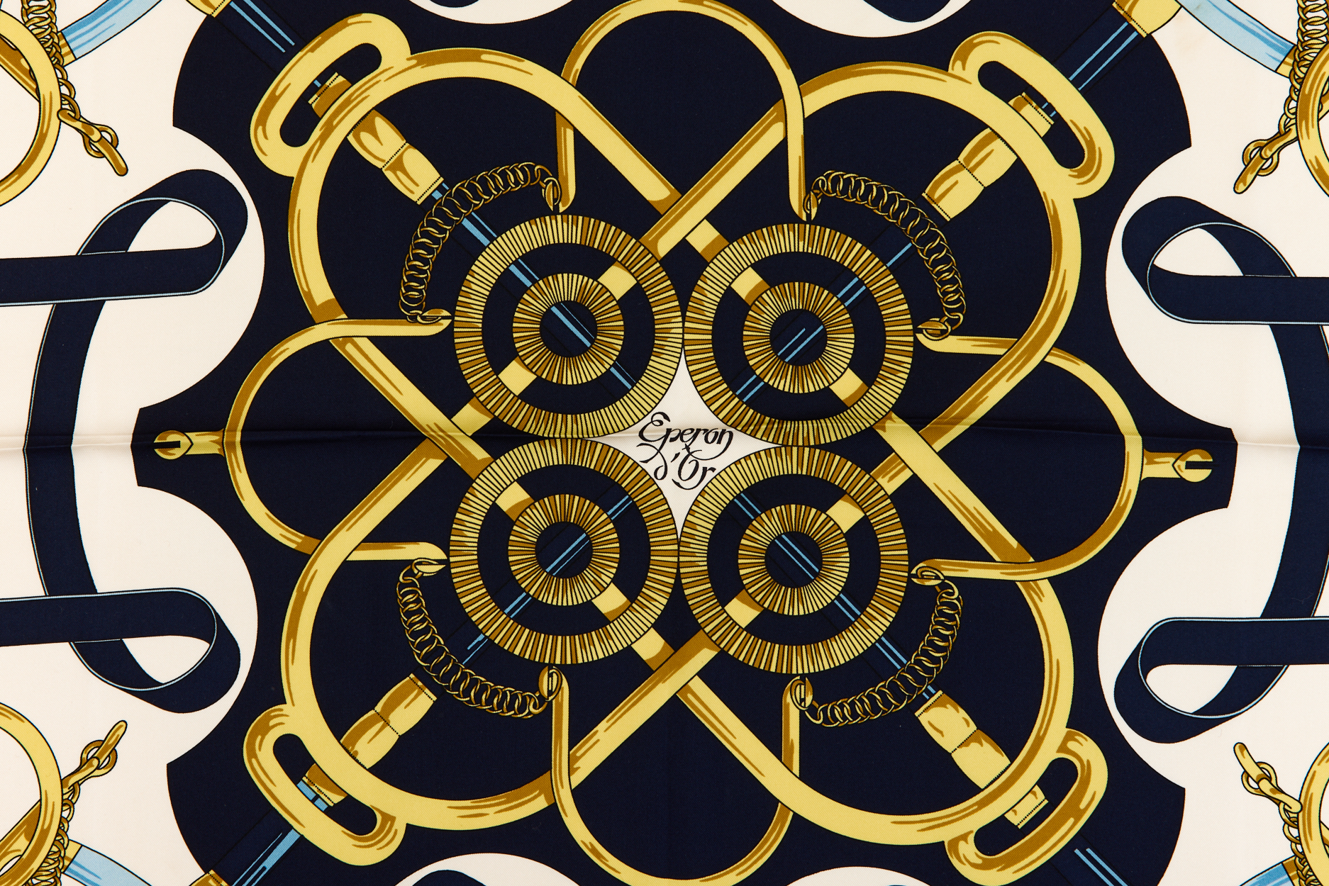 Hermes Silk Scarf Carre 90 “Eperon d’Or” Blue Silk Scarf