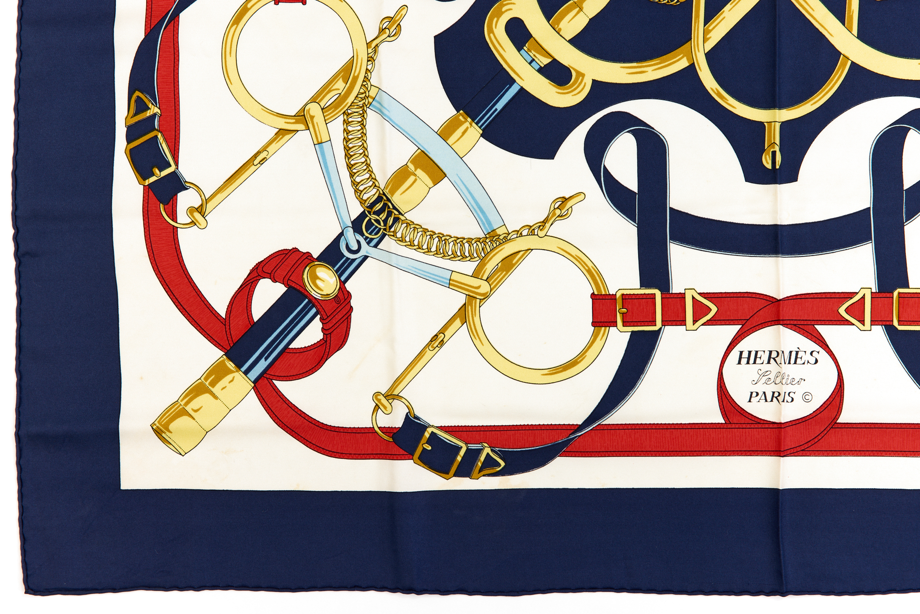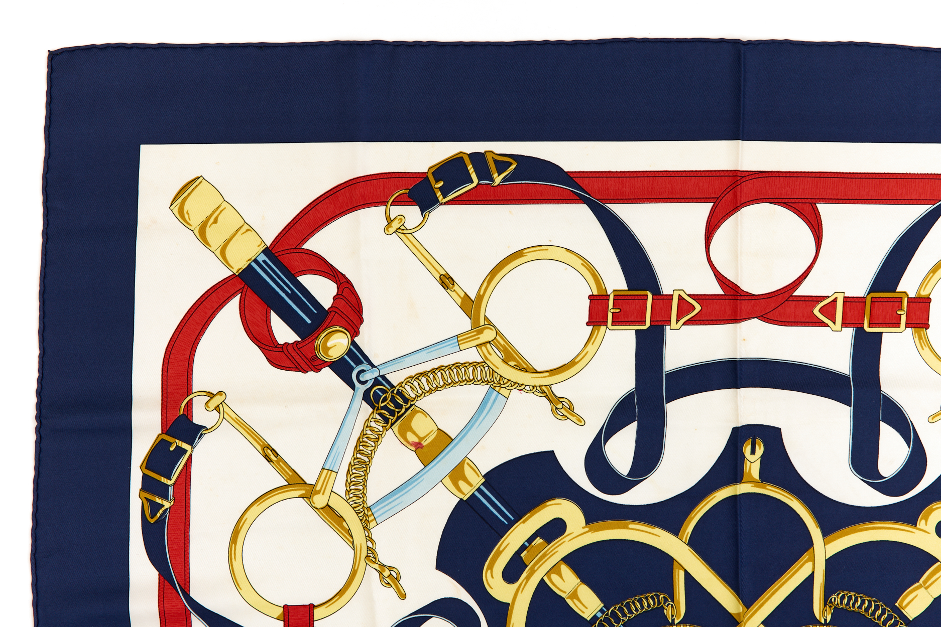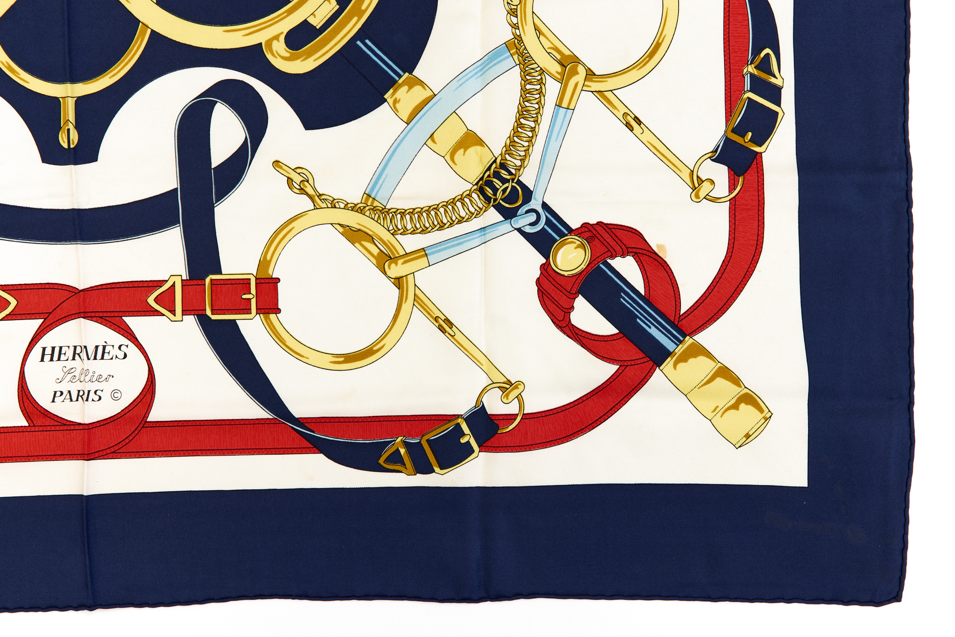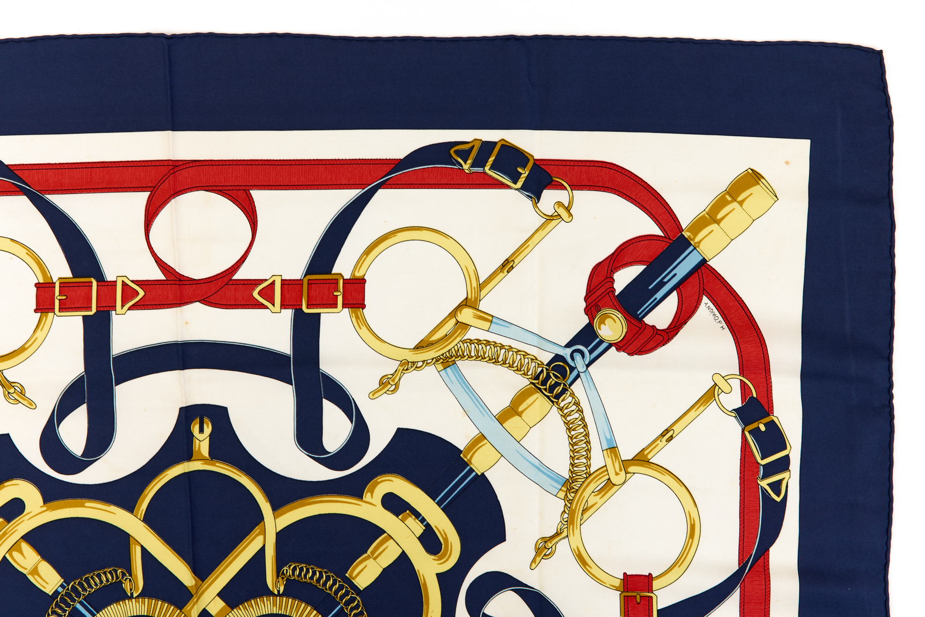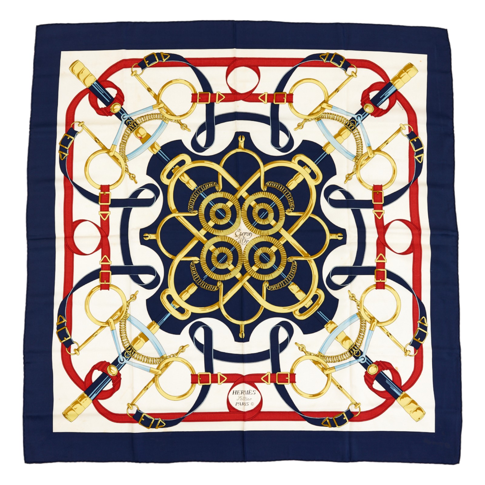 Hermes Silk Scarf Carre 90 “Eperon d’Or” Blue Silk Scarf