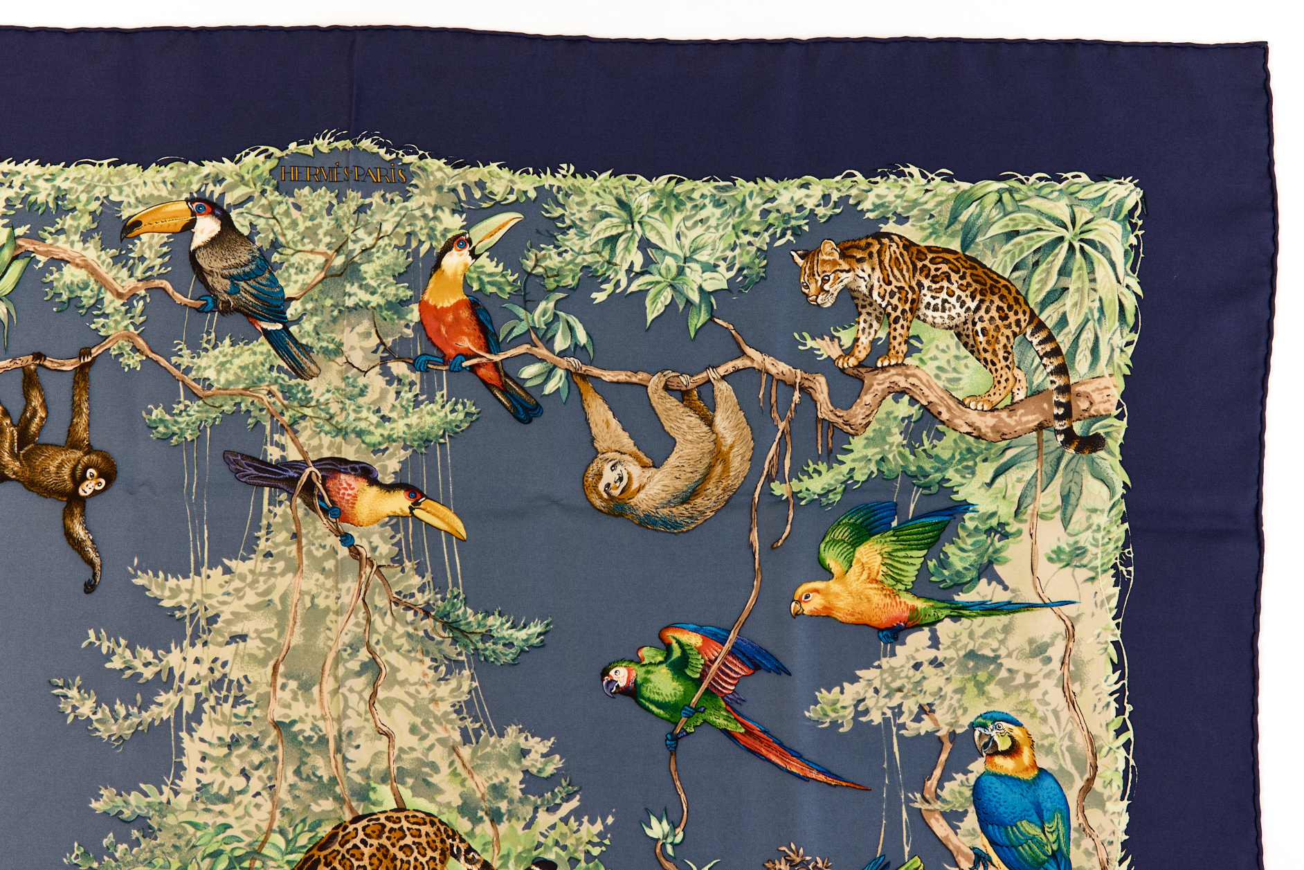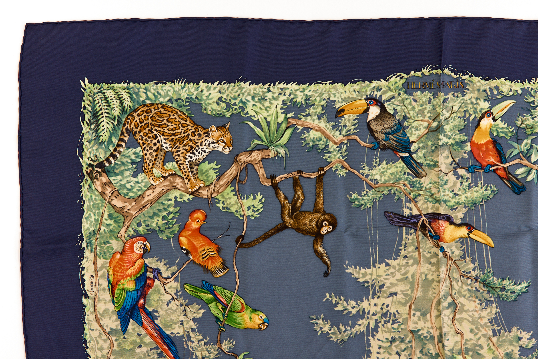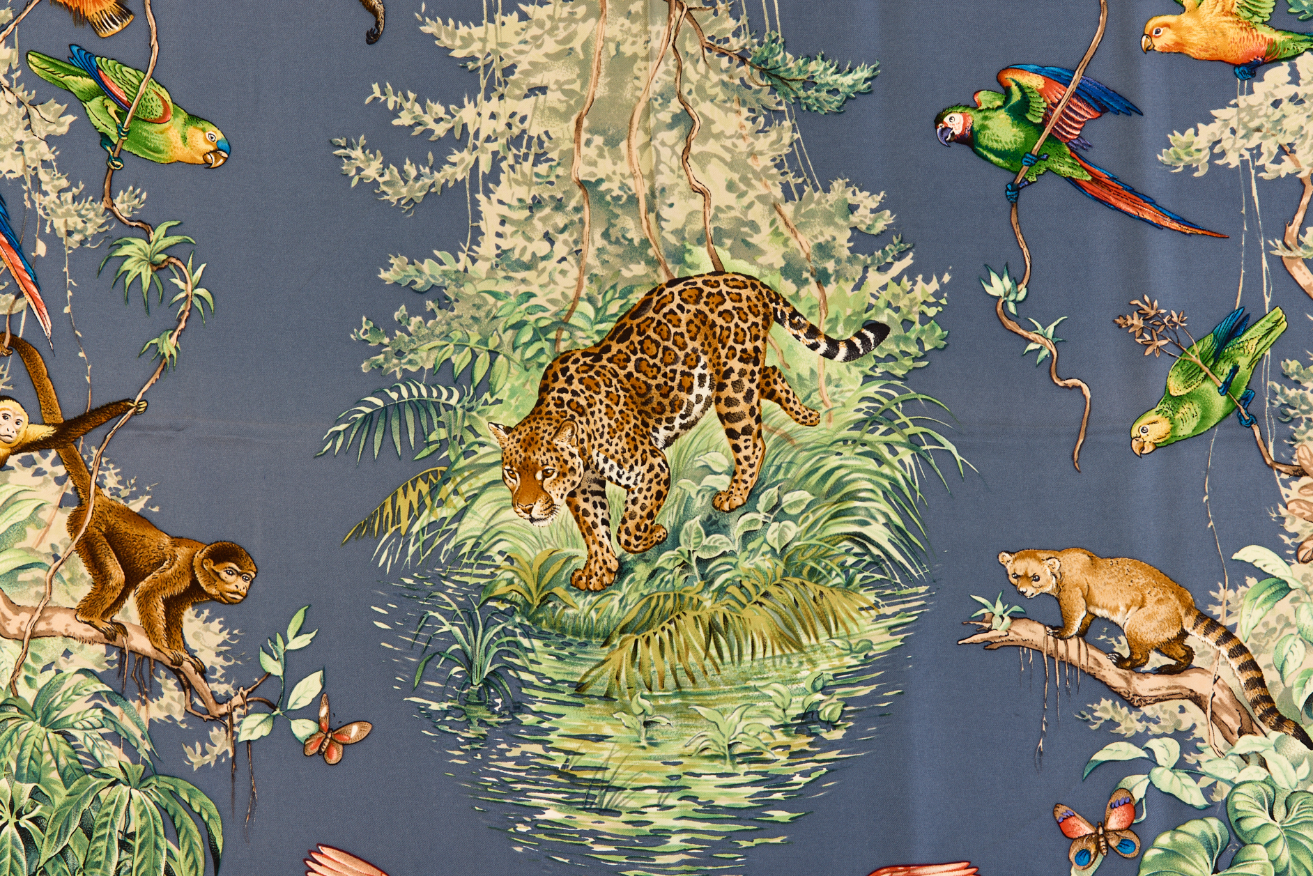Hermes Silk Scarf Carre 90 “Equateur” Blue Silk Scarf