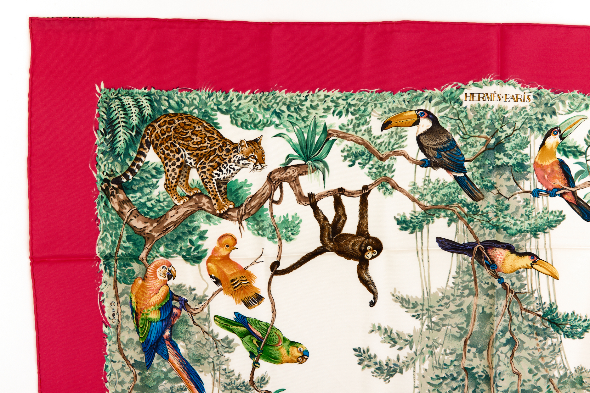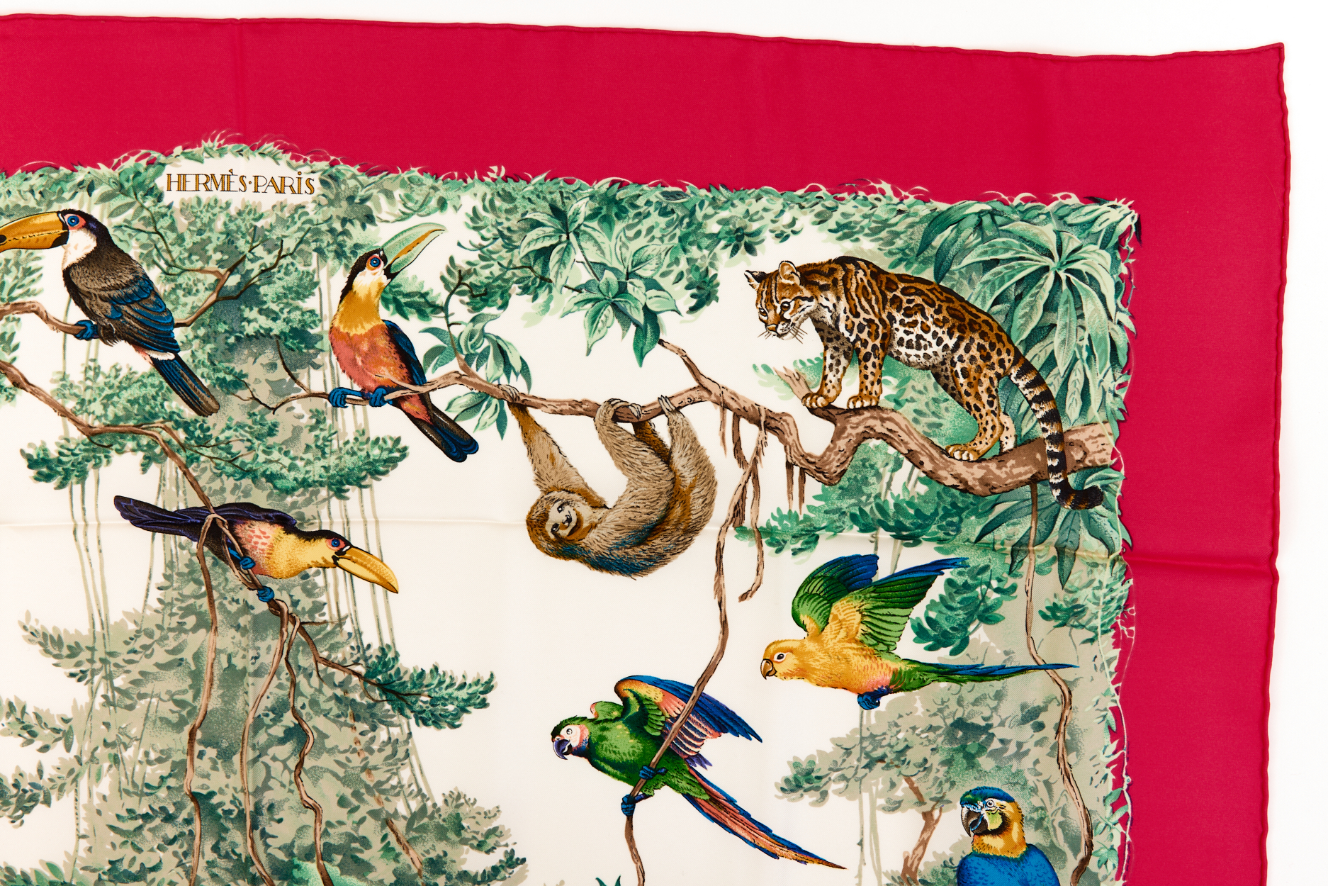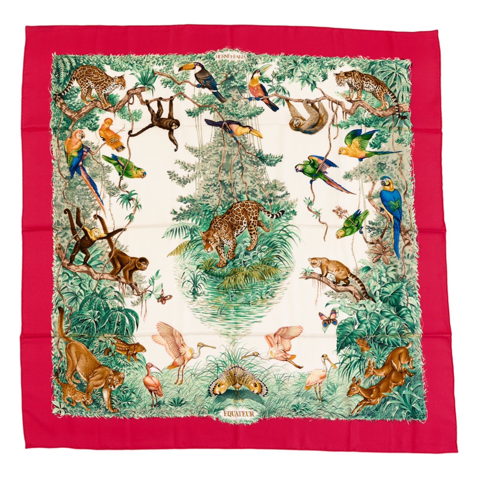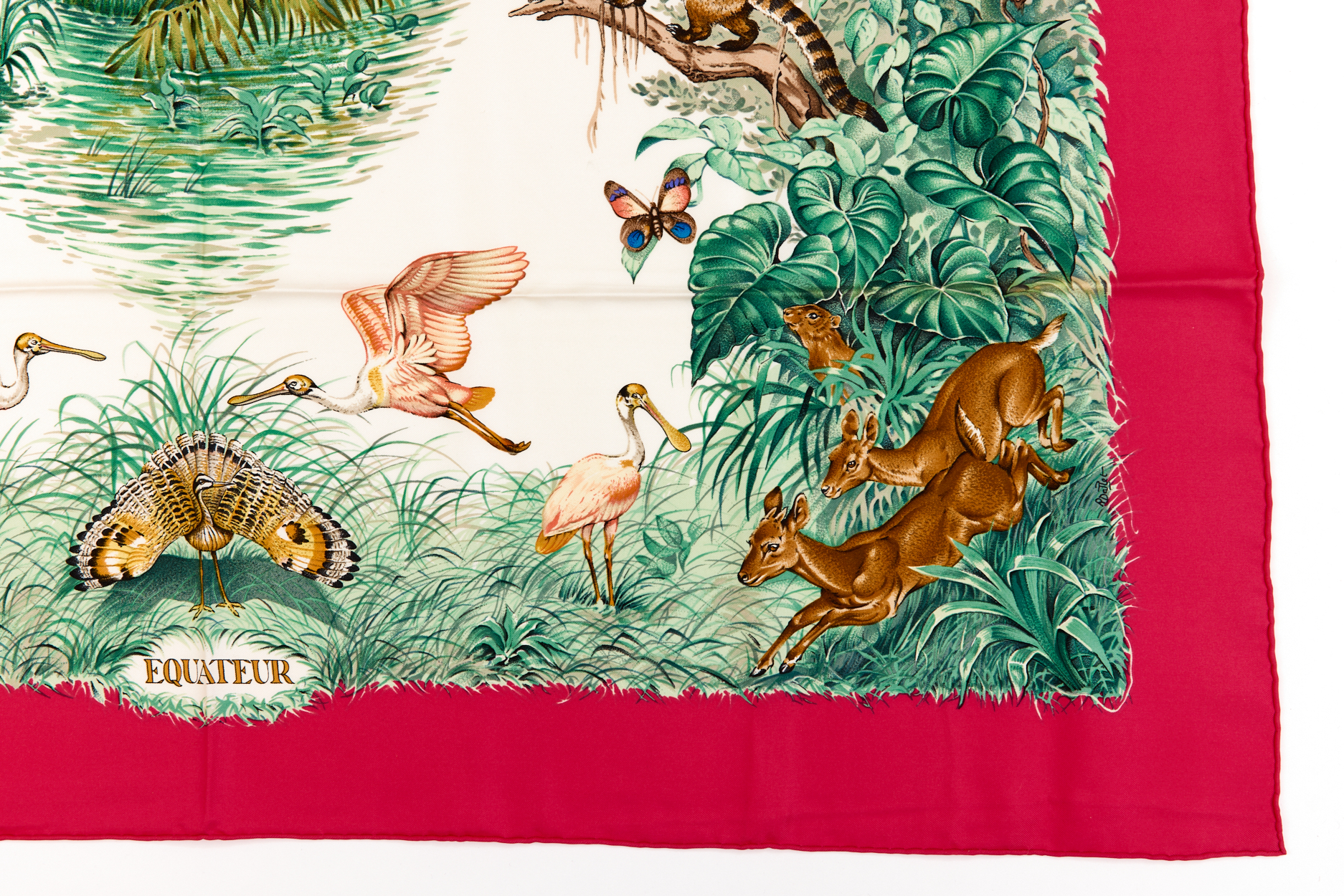 Hermes Silk Scarf Carre 90 “Equateur” Red Silk Scarf