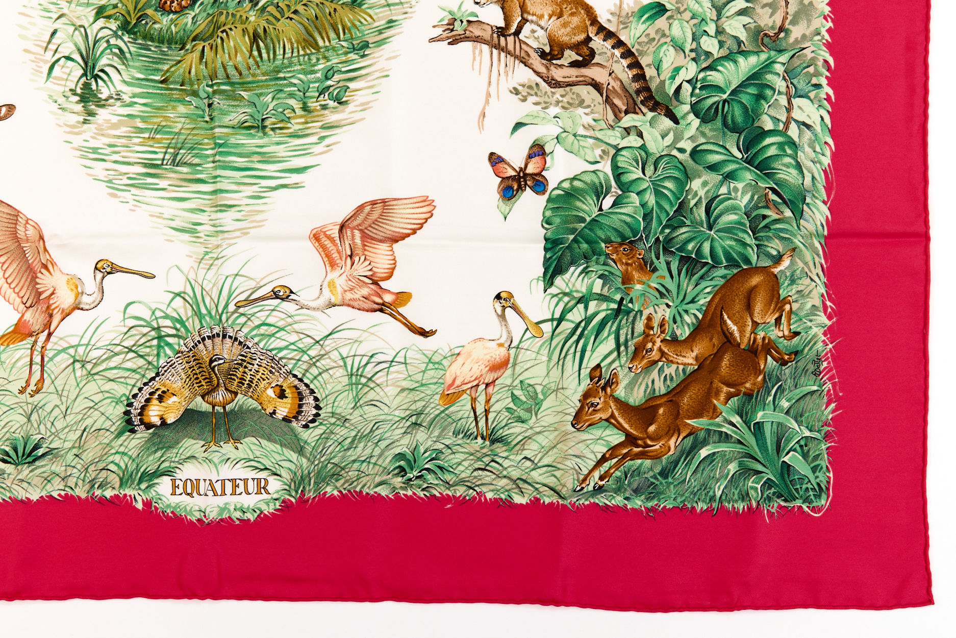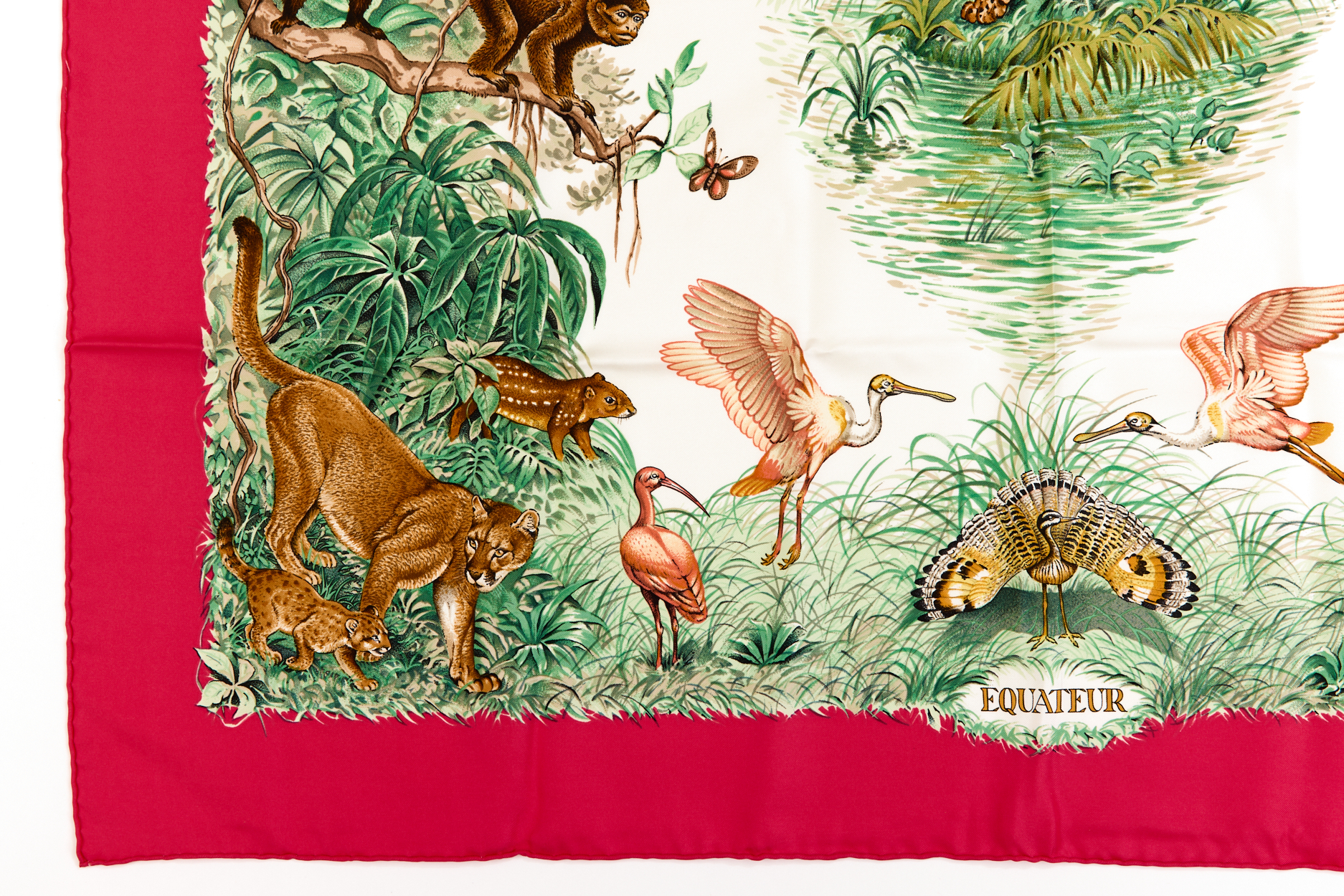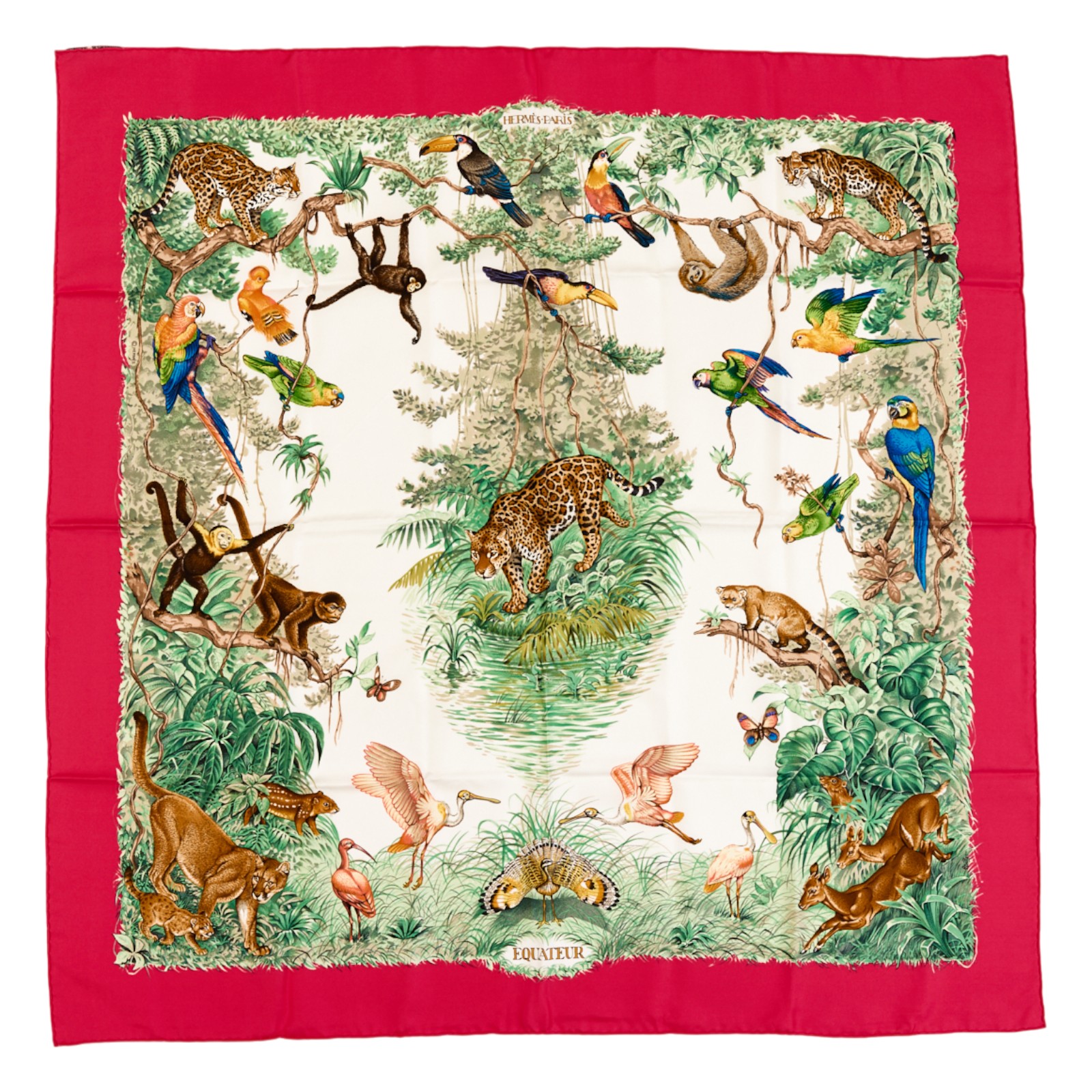 Hermes Silk Scarf Carre 90 “Equateur” Red,Pink Silk Scarf
