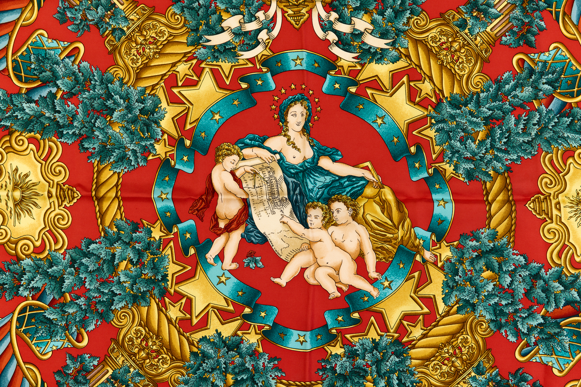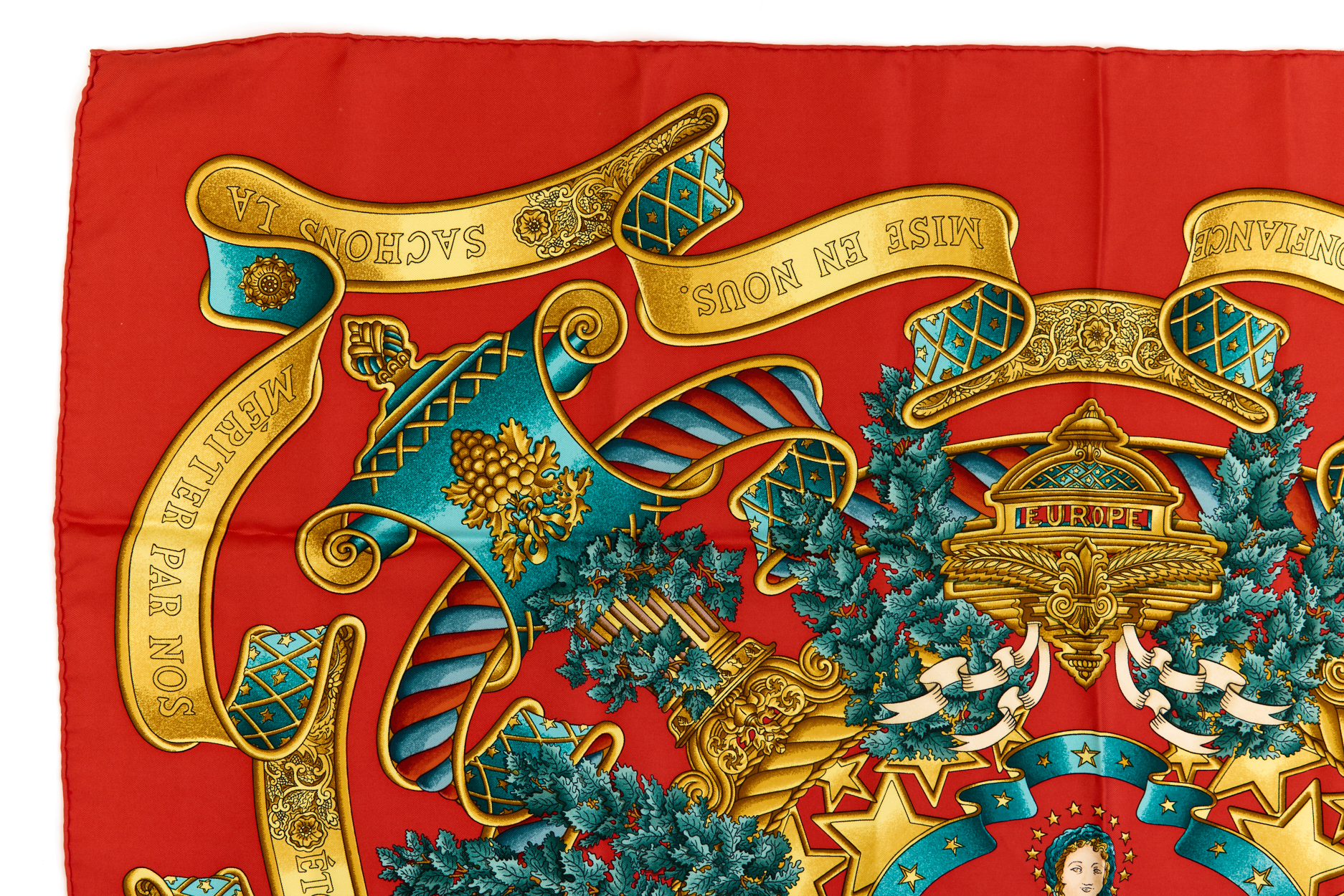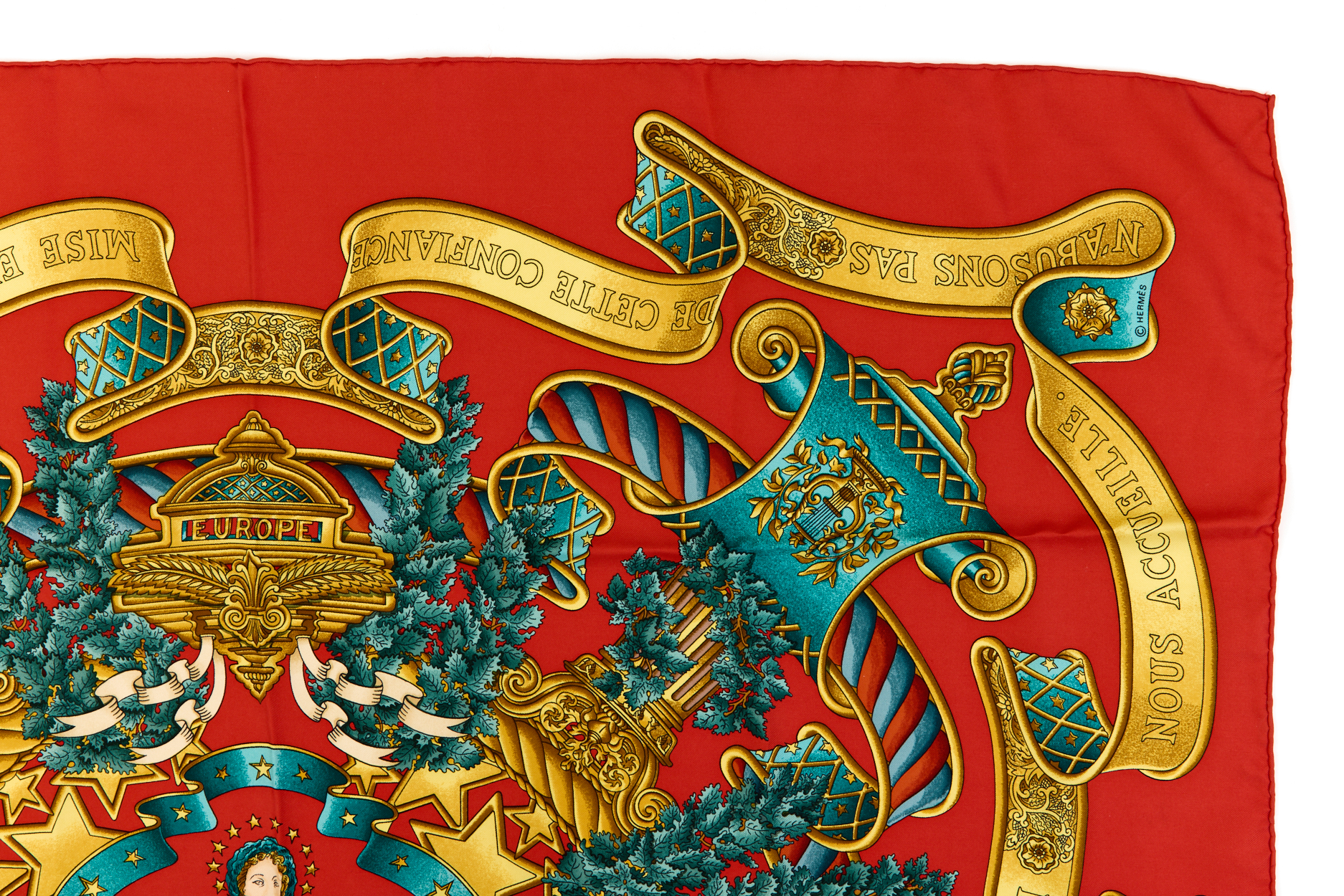 Hermes Silk Scarf Carre 90 “EUROPE” Red Silk Scarf