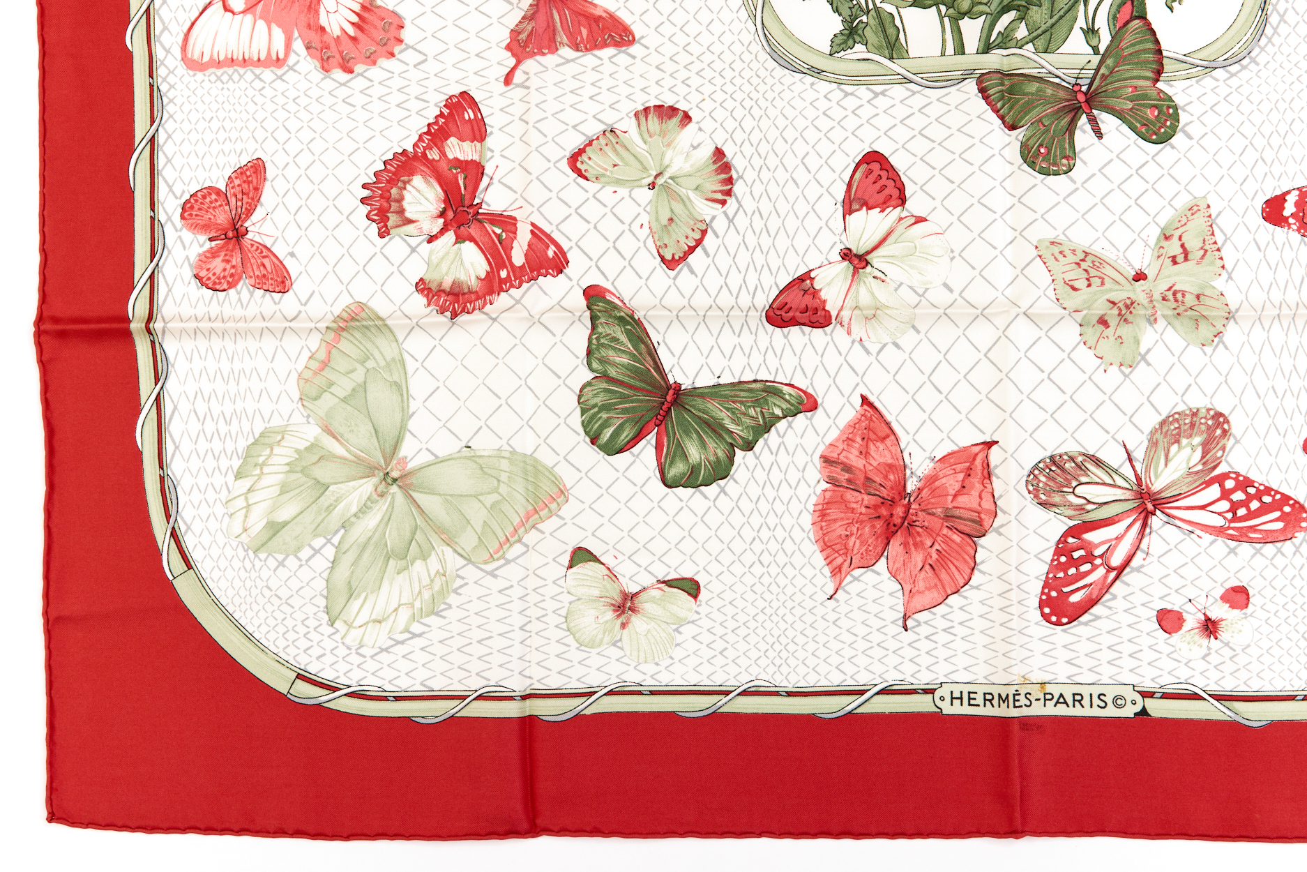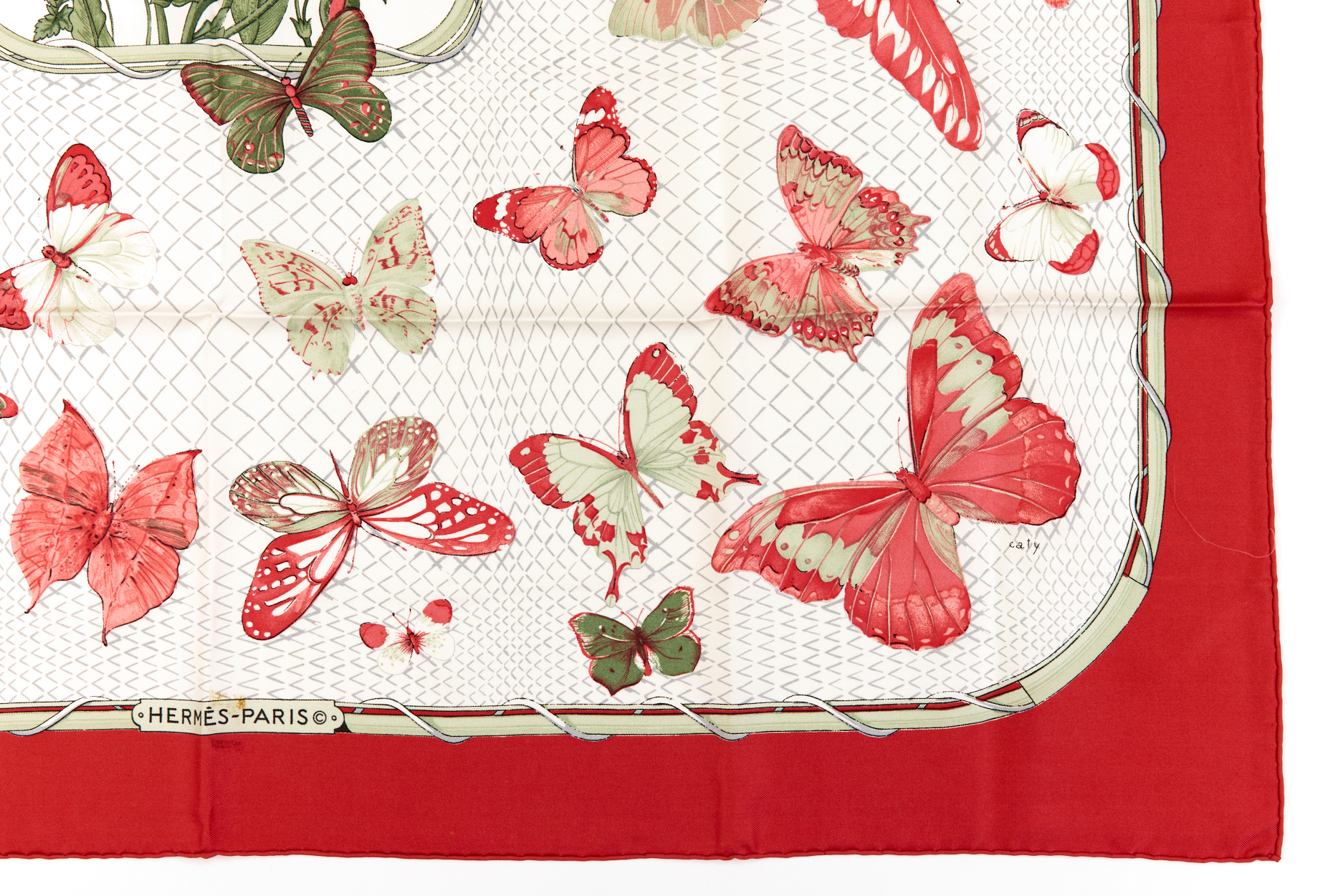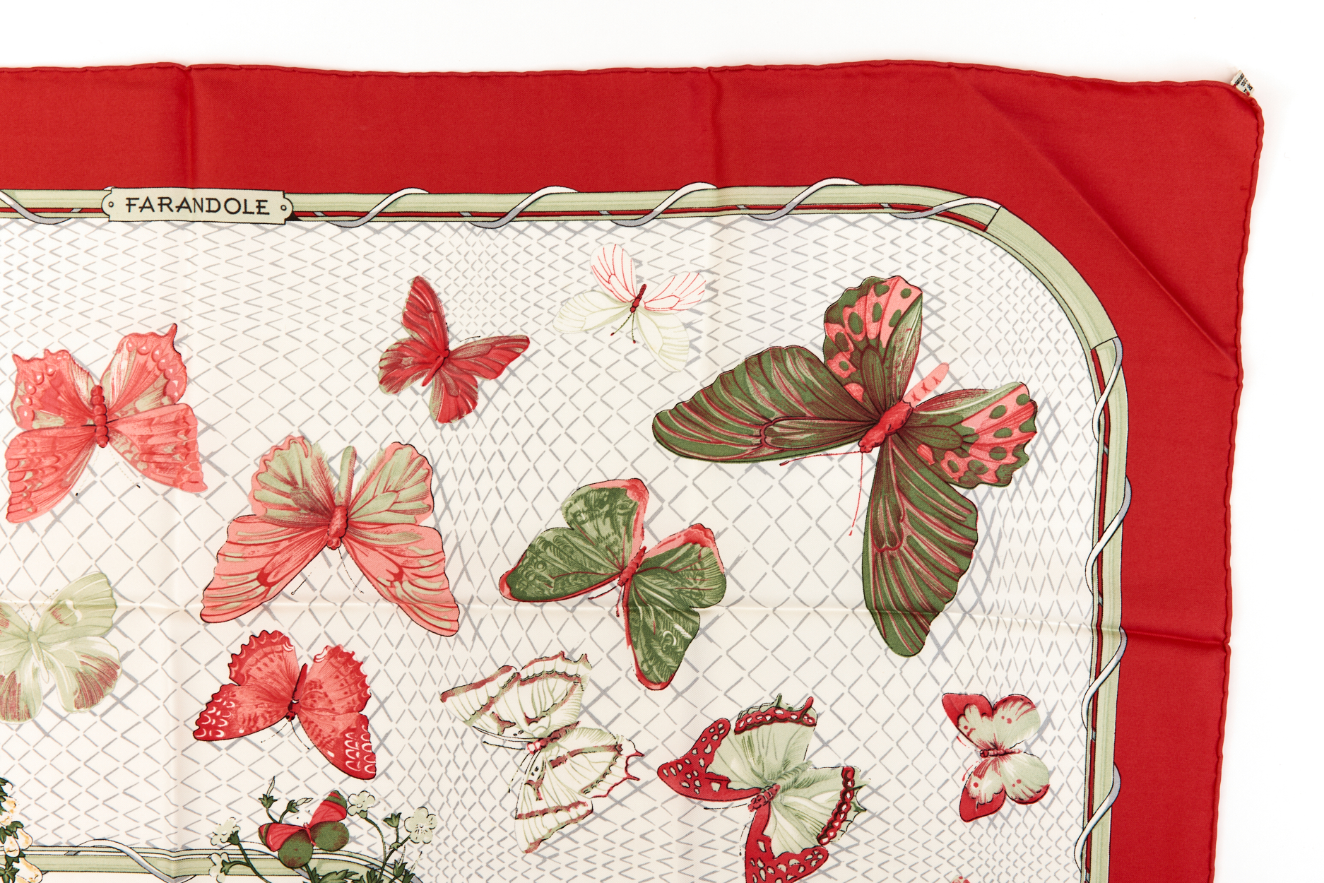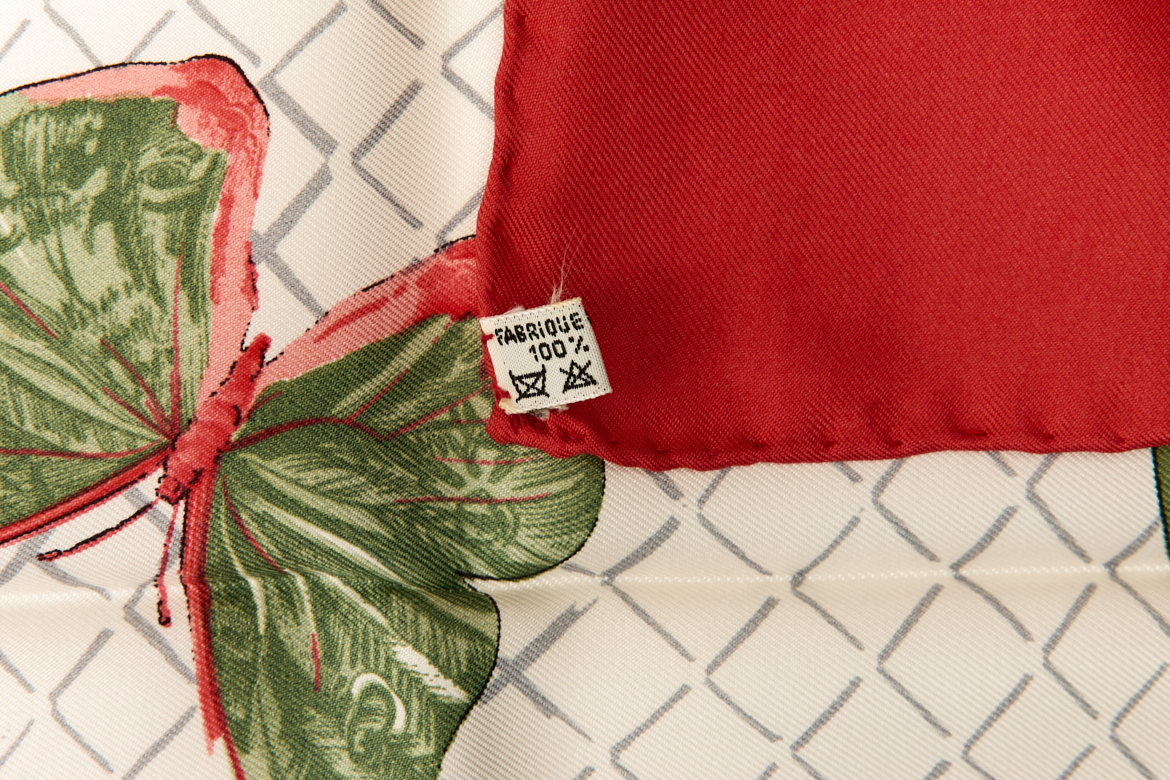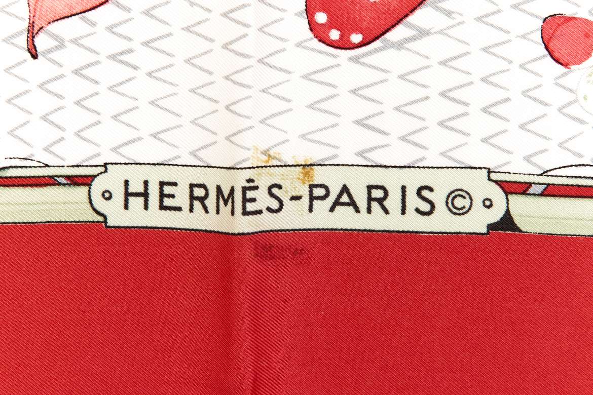 Hermes Silk Scarf Carre 90 “FARANDOLE” Red Silk Scarf Brand : HERMESDesign by Caty Latham Issued 1985Item : ScarfSize : 88.5cm * 88.5cmMaterial : 100% SilkCondition Score: A-B+*For reference. The condition shown in the image takes precedence.*Please see the last two photos to see if the tag is still attached