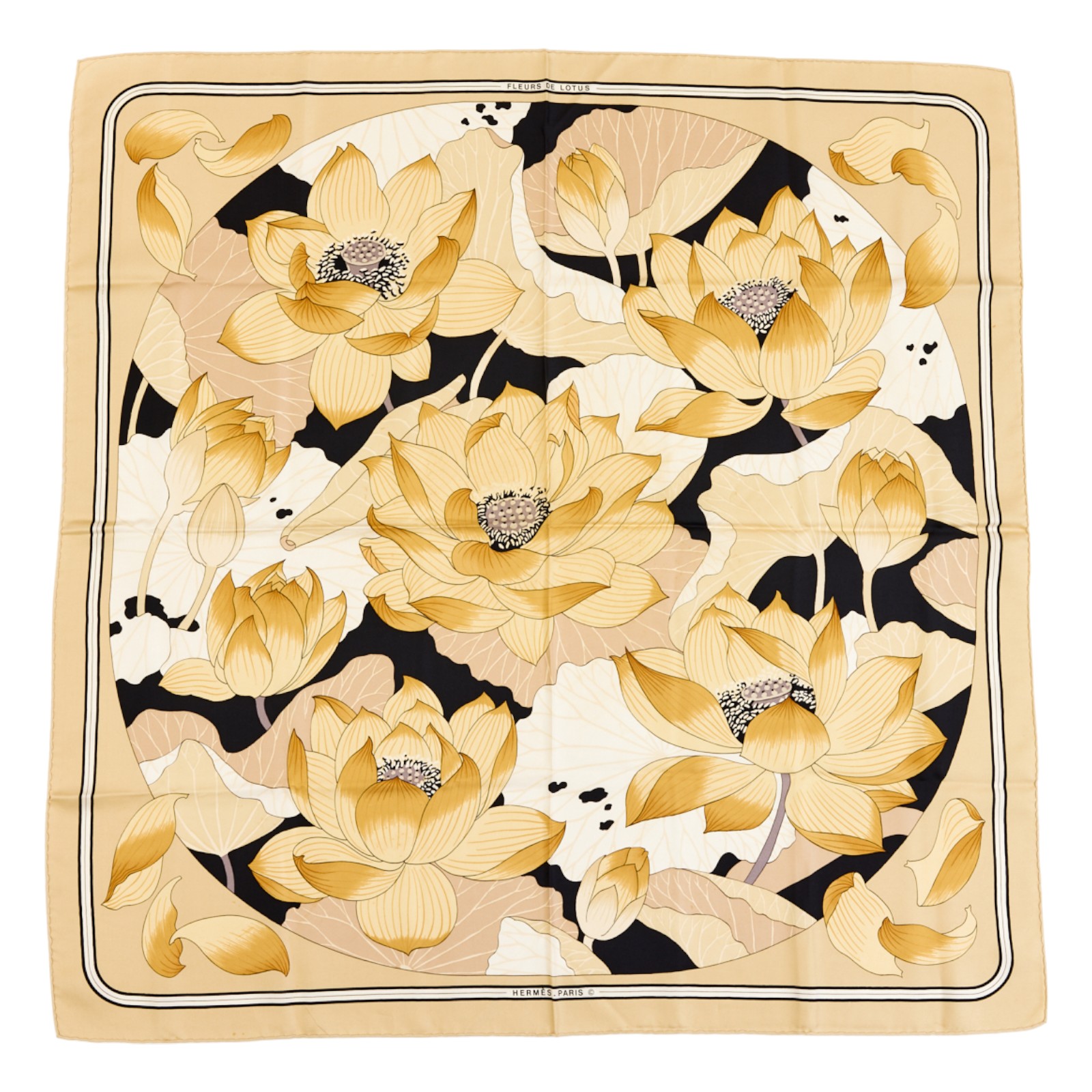 Hermes Silk Scarf Carre 90 “Fleurs de Lotus” Beige Silk Scarf