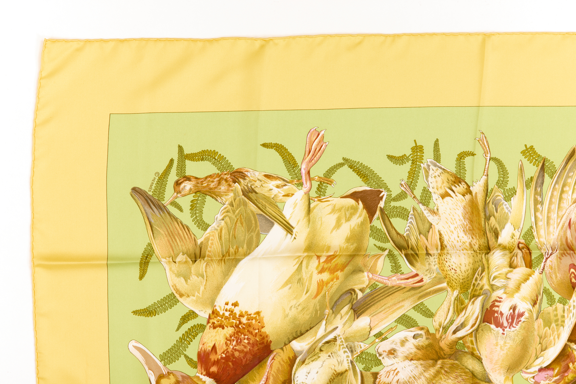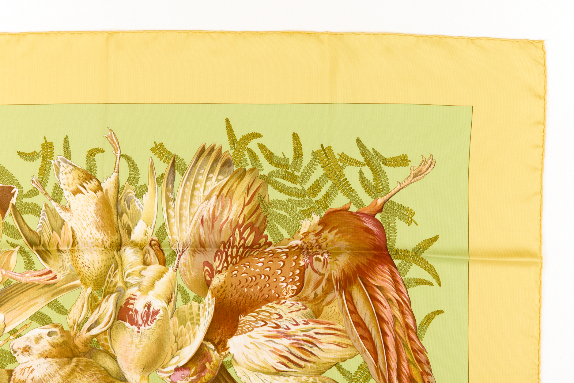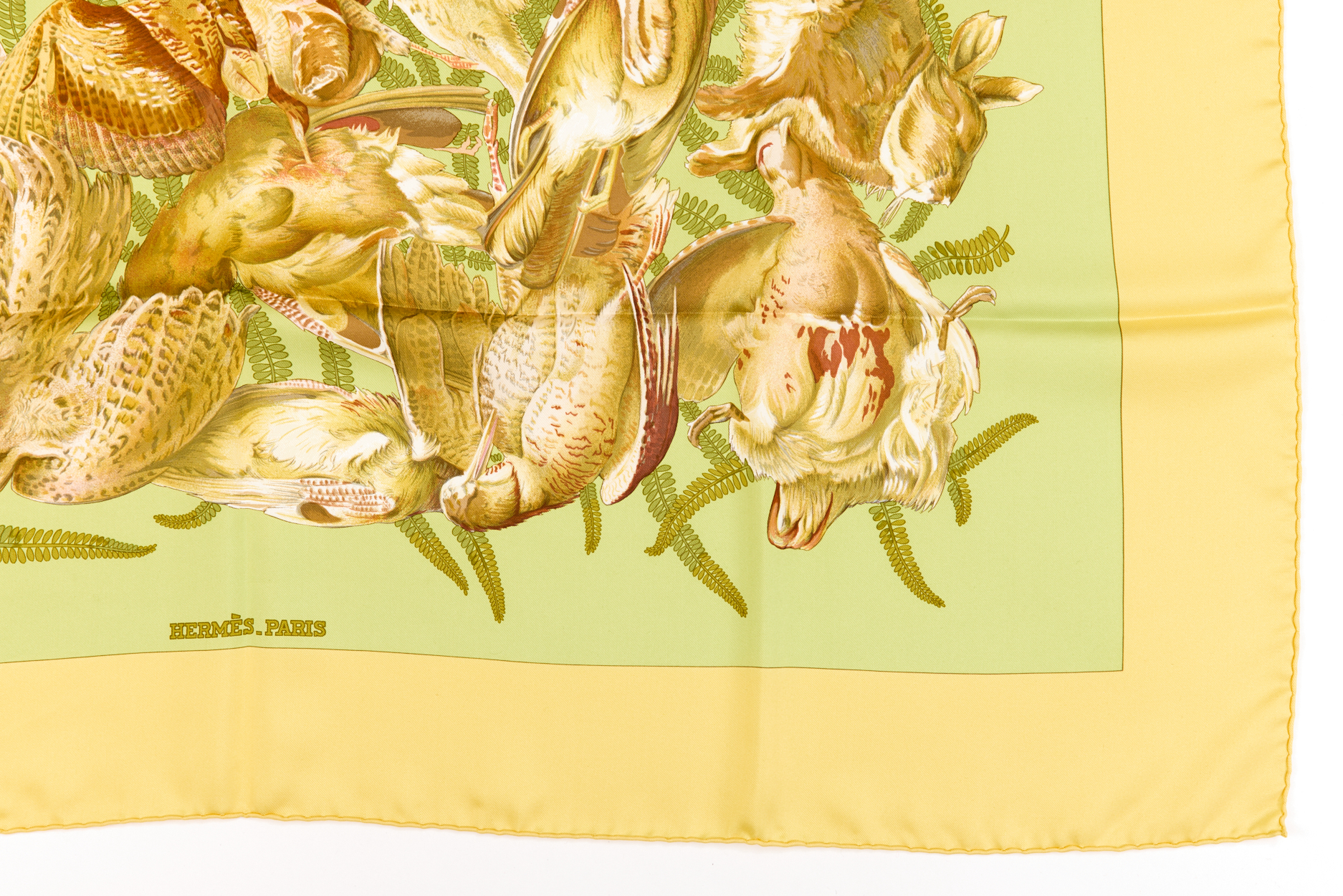 Hermes Silk Scarf Carre 90 “Gibiers” Yellow Silk Scarf