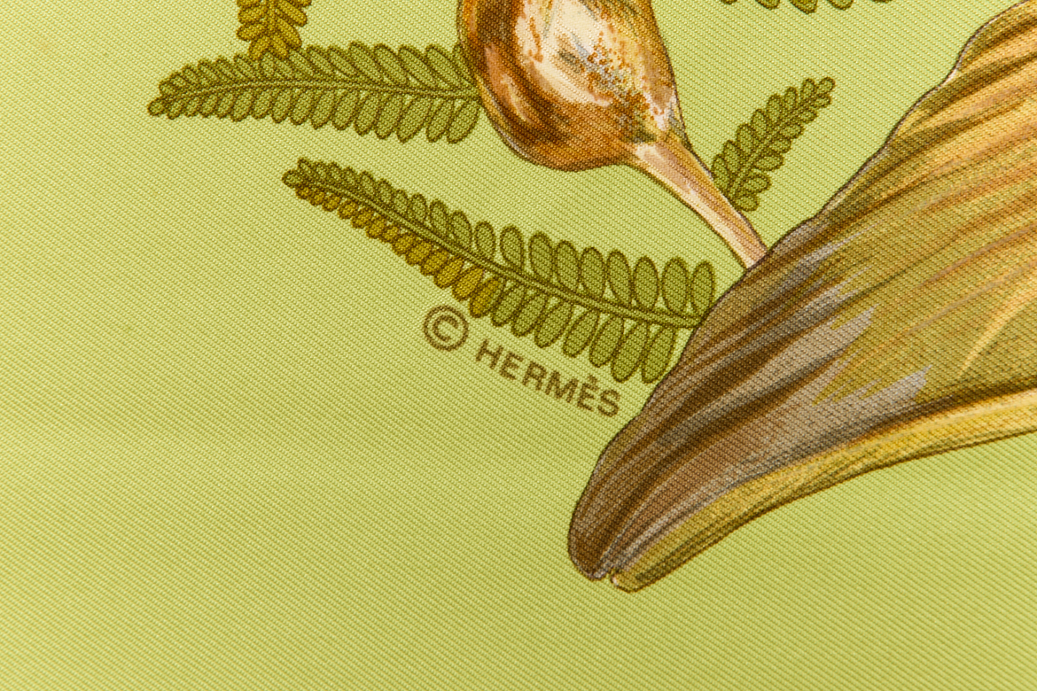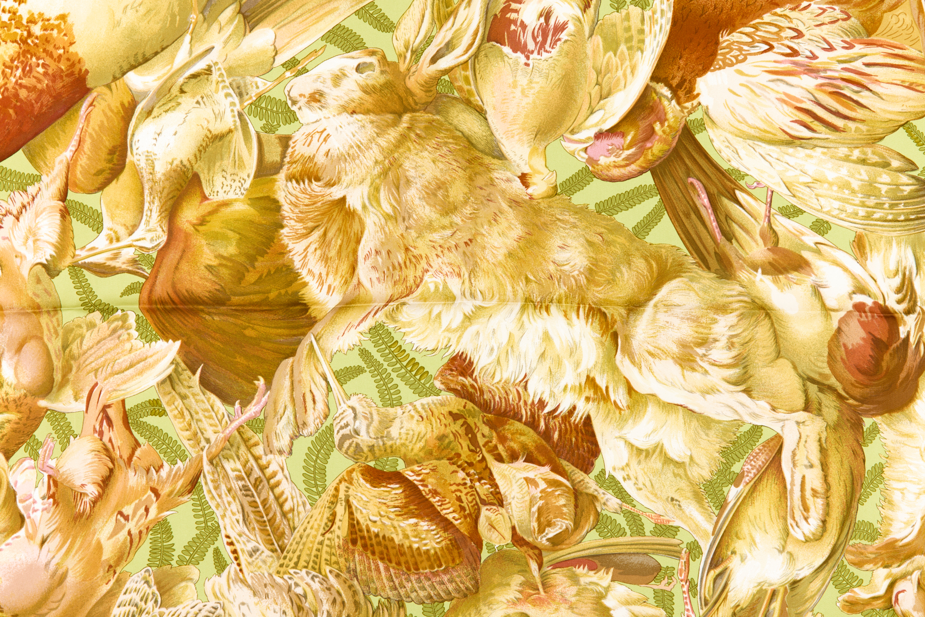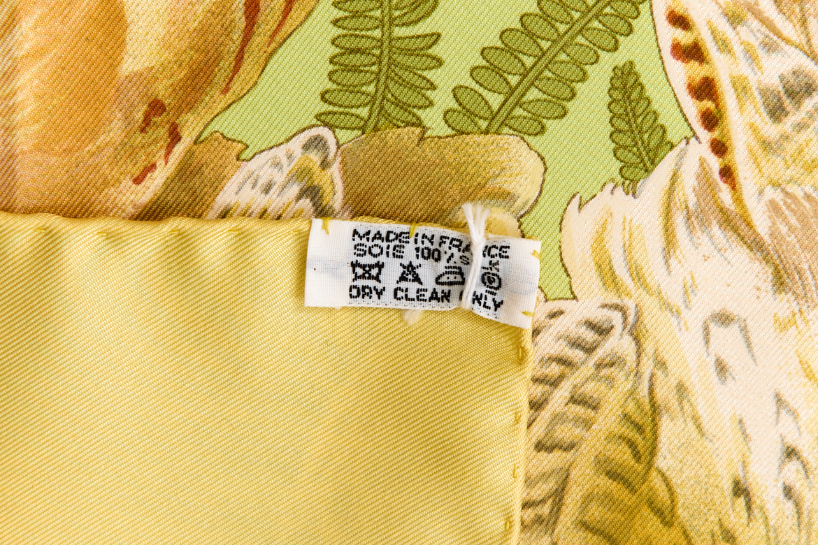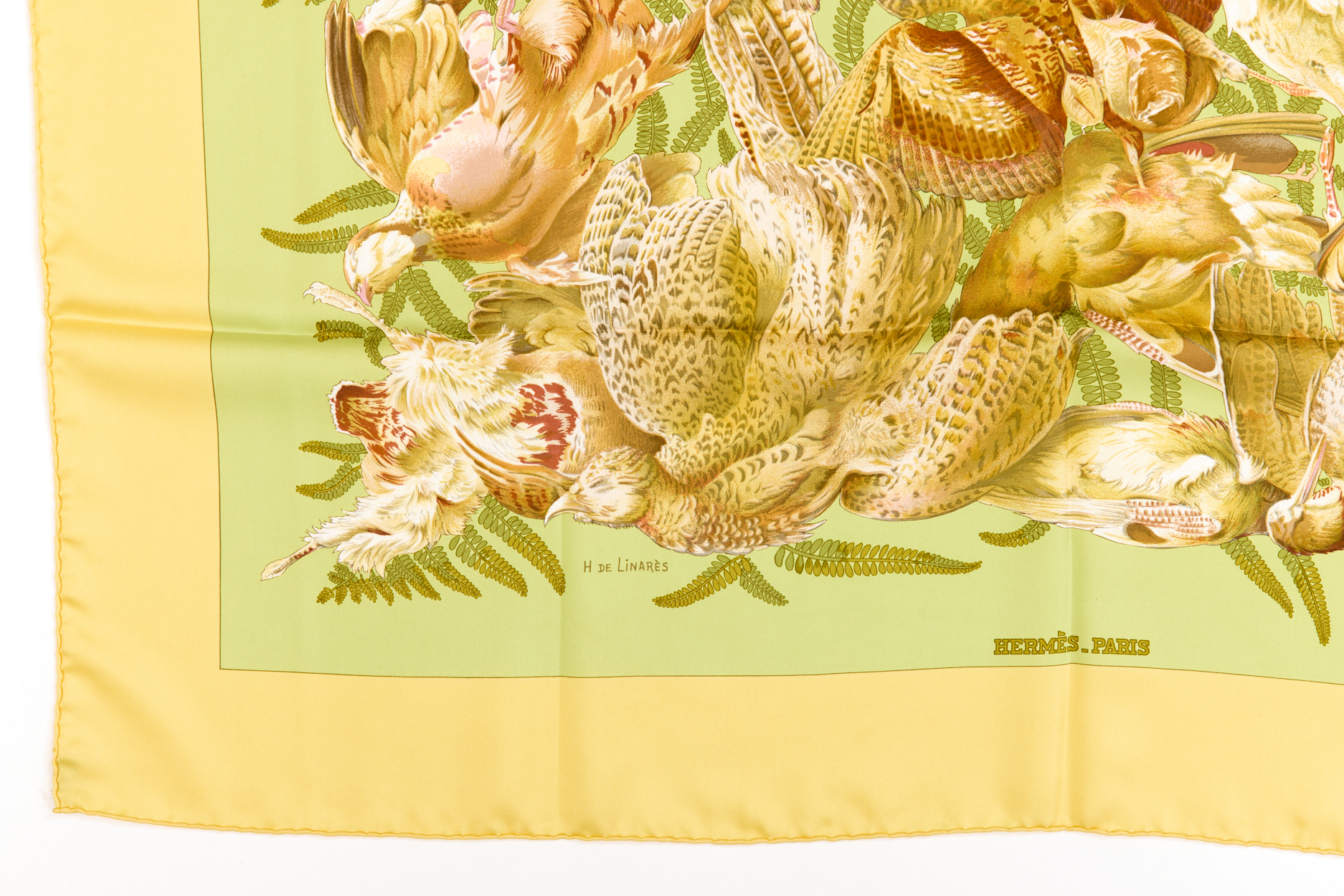 Hermes Silk Scarf Carre 90 “Gibiers” Yellow Silk Scarf