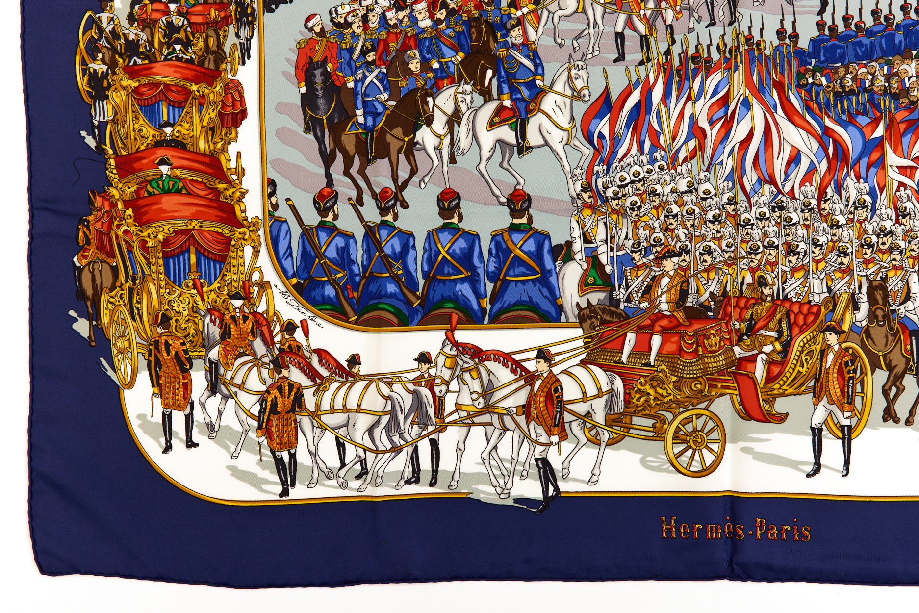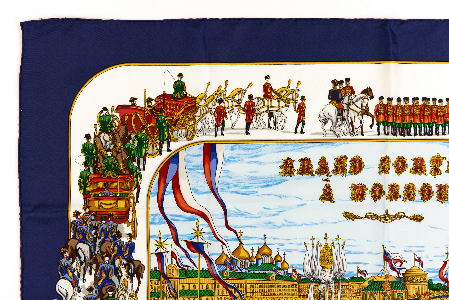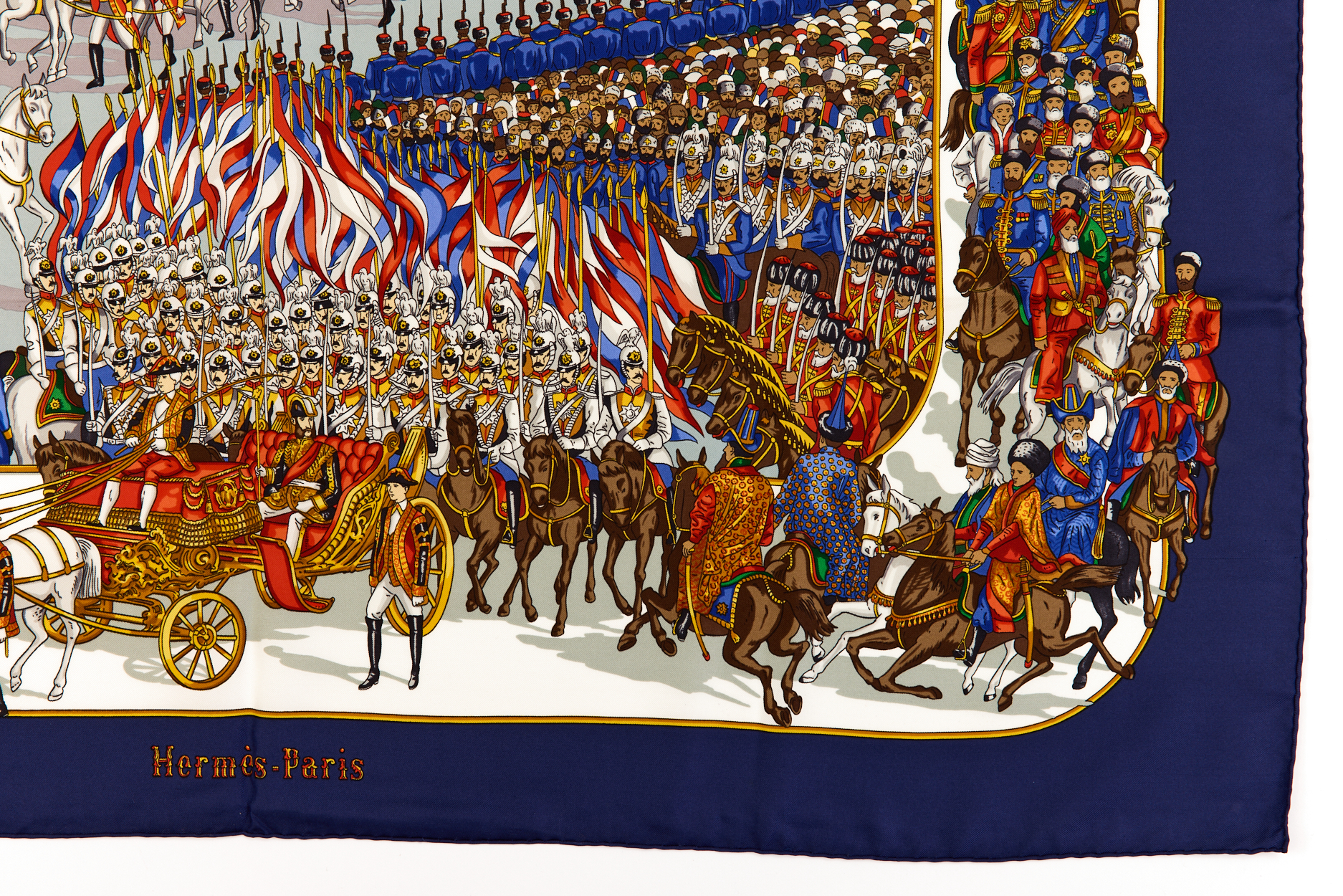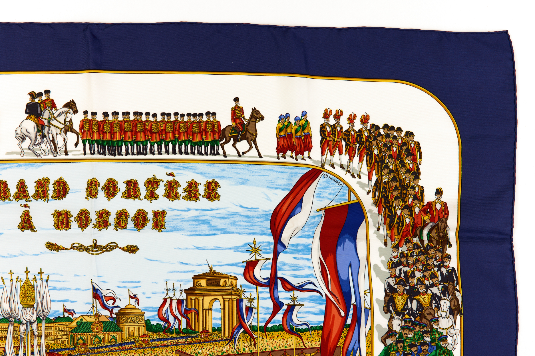 Hermes Silk Scarf Carre 90 “GRAND CORTEGE A MOSCOU” Blue Silk Scarf
