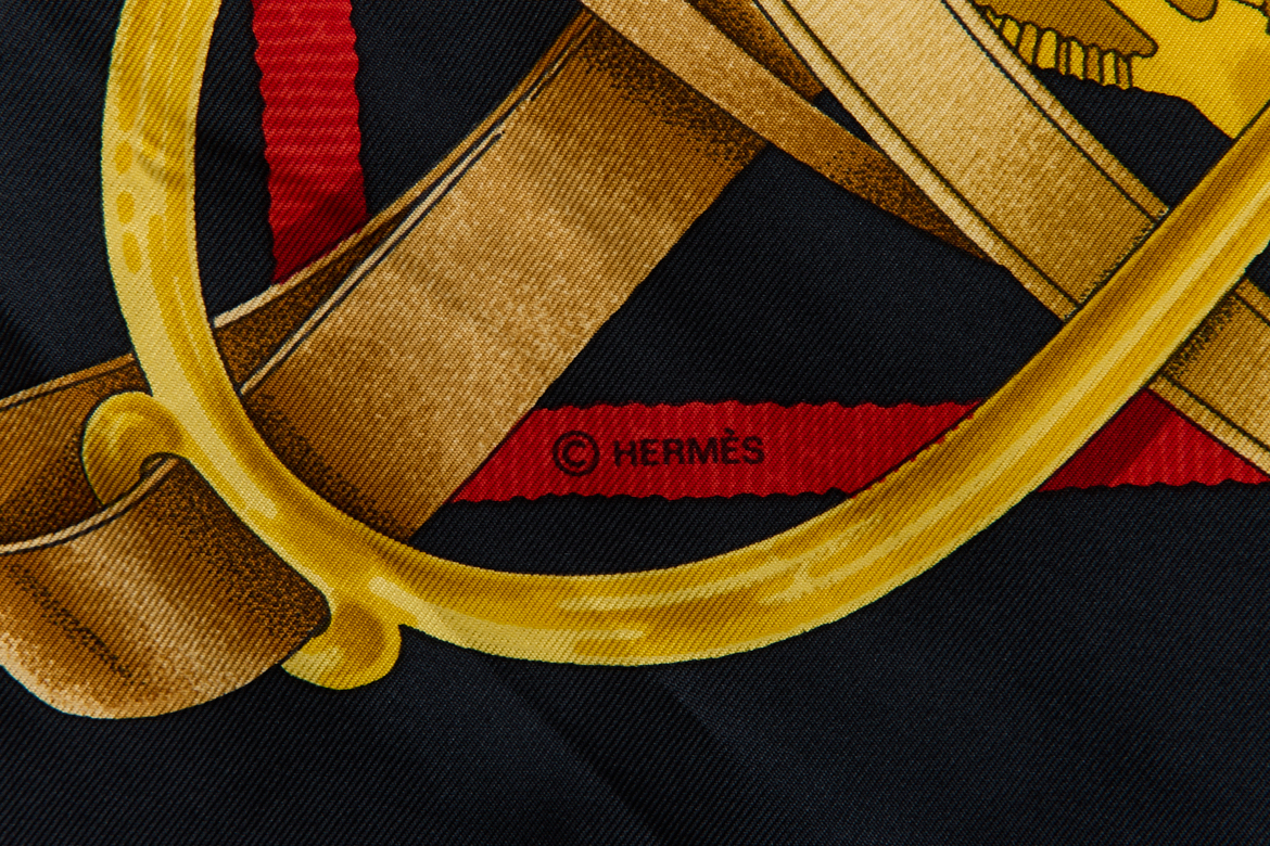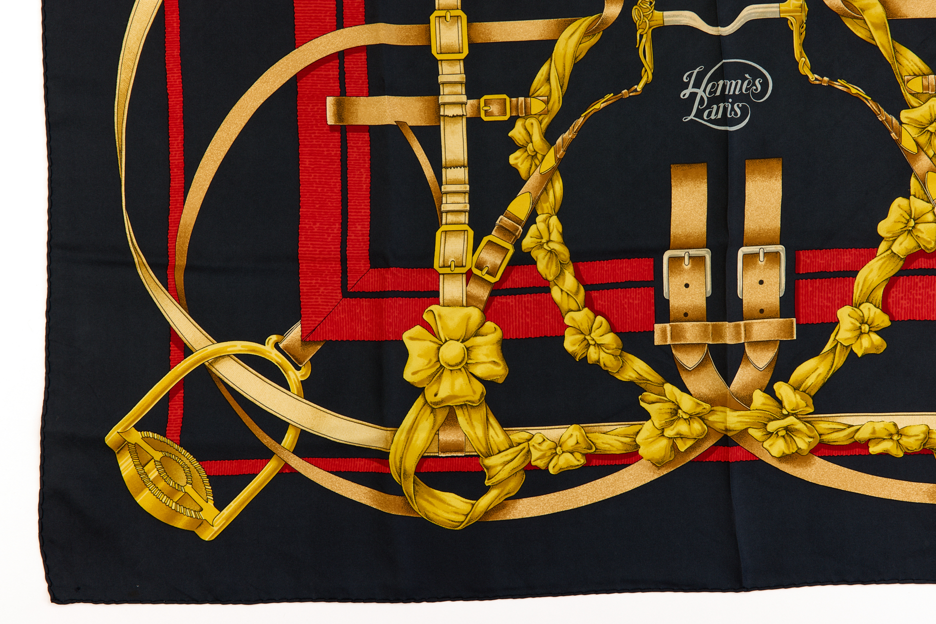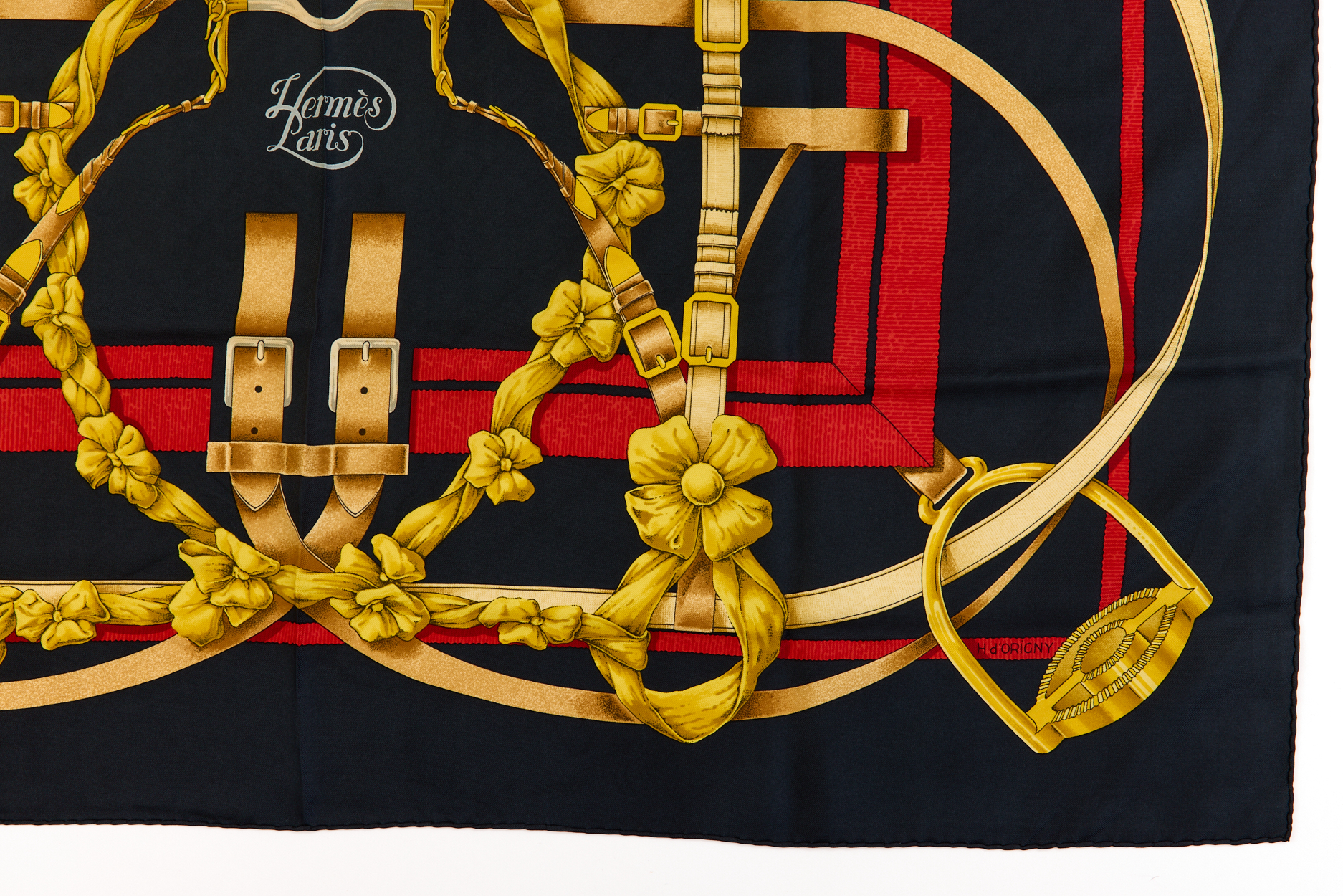 Hermes Silk Scarf Carre 90 “Grand Manege” Black Silk Scarf Brand : HERMESDesign by Henri d’Origny Issued 1990Item : ScarfSize : 88.5cm * 88.5cmMaterial : 100% SilkCondition Score: B+*For reference. The condition shown in the image takes precedence.*Please see the last two photos to see if the tag is still attached