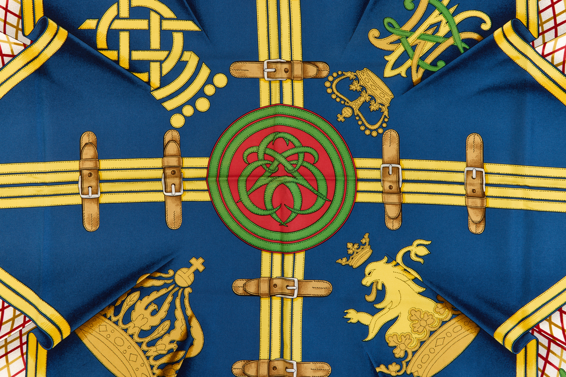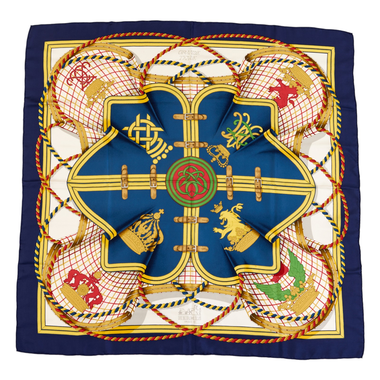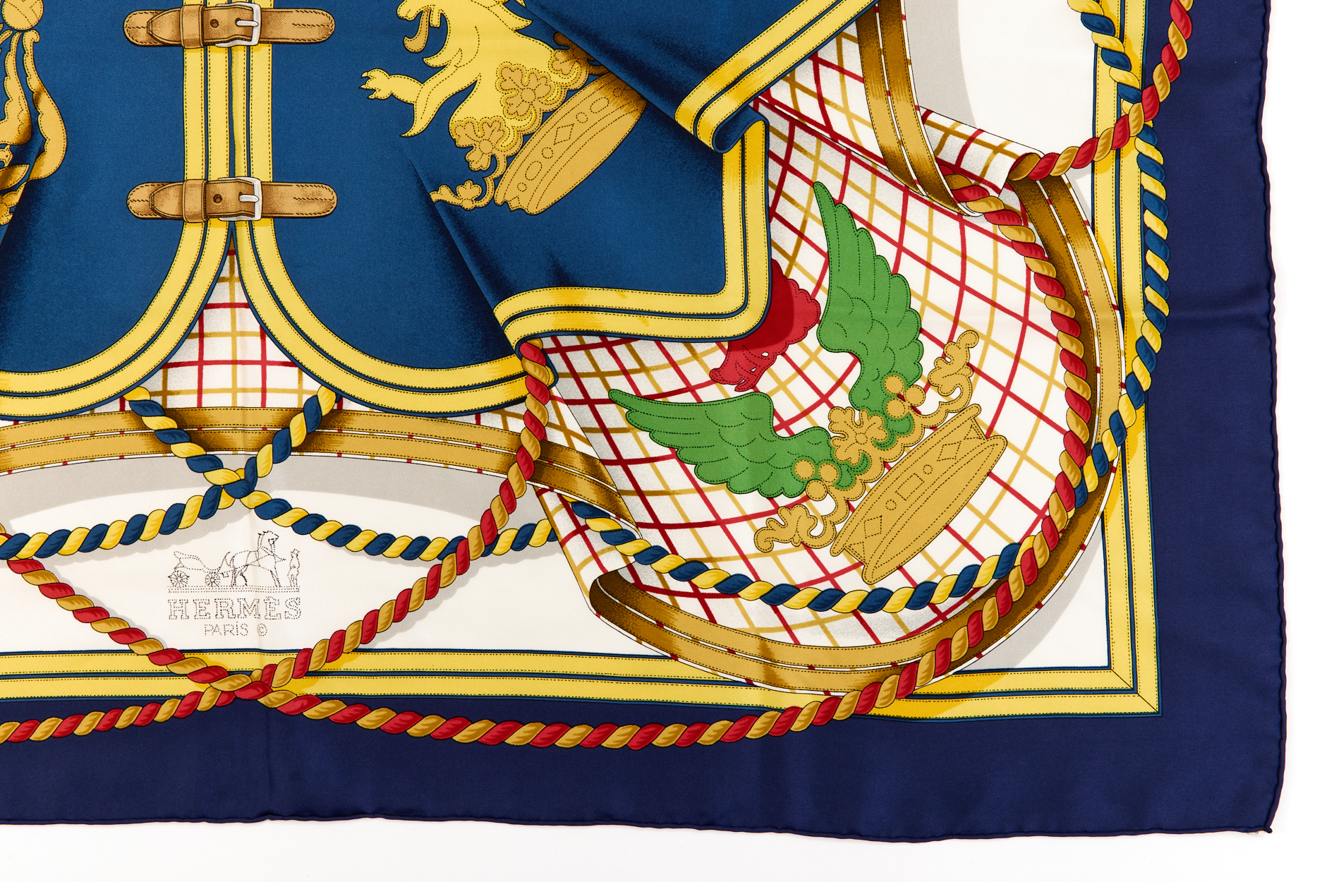 Hermes Silk Scarf Carre 90 “GRANDE TENUE” Blue Silk Scarf