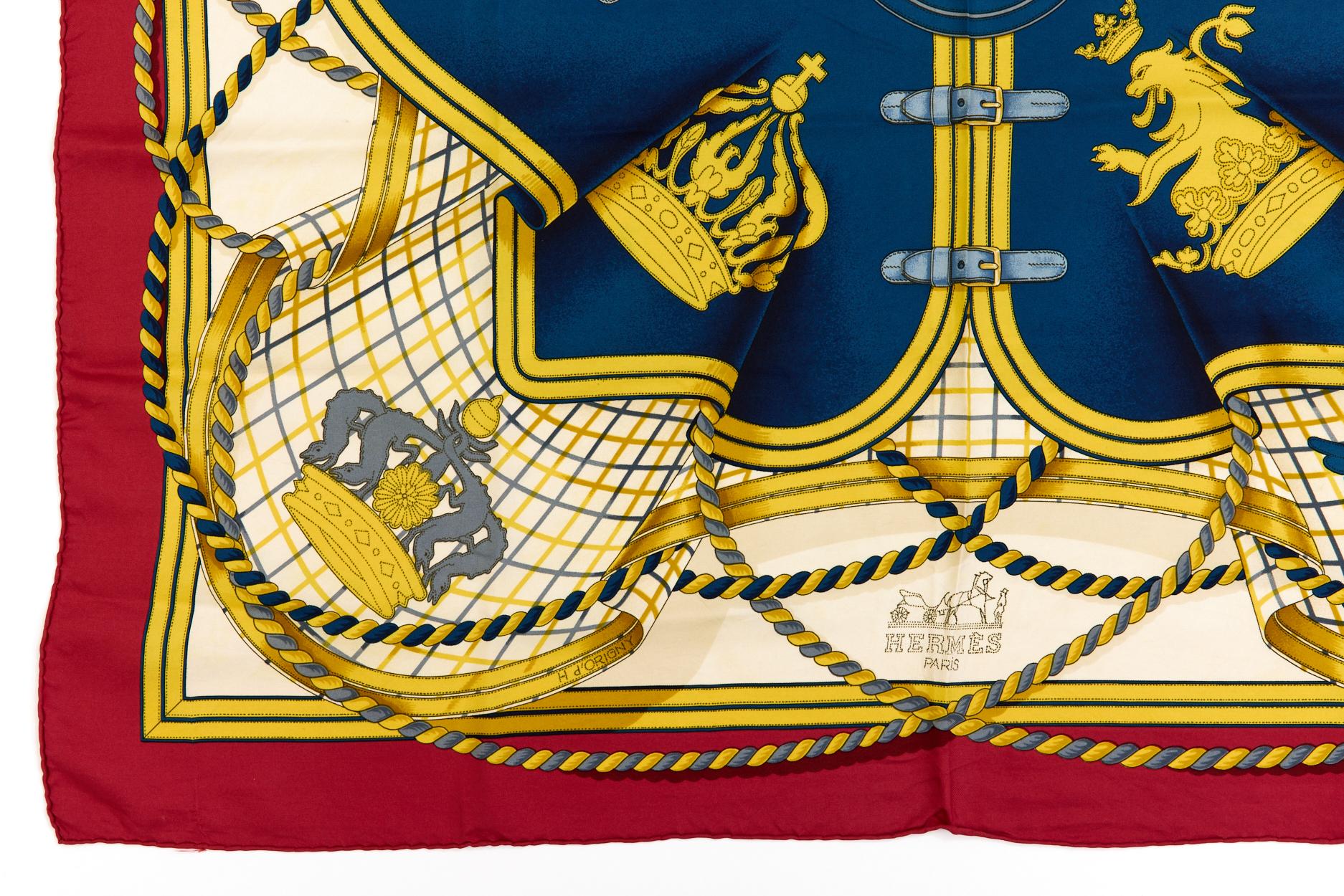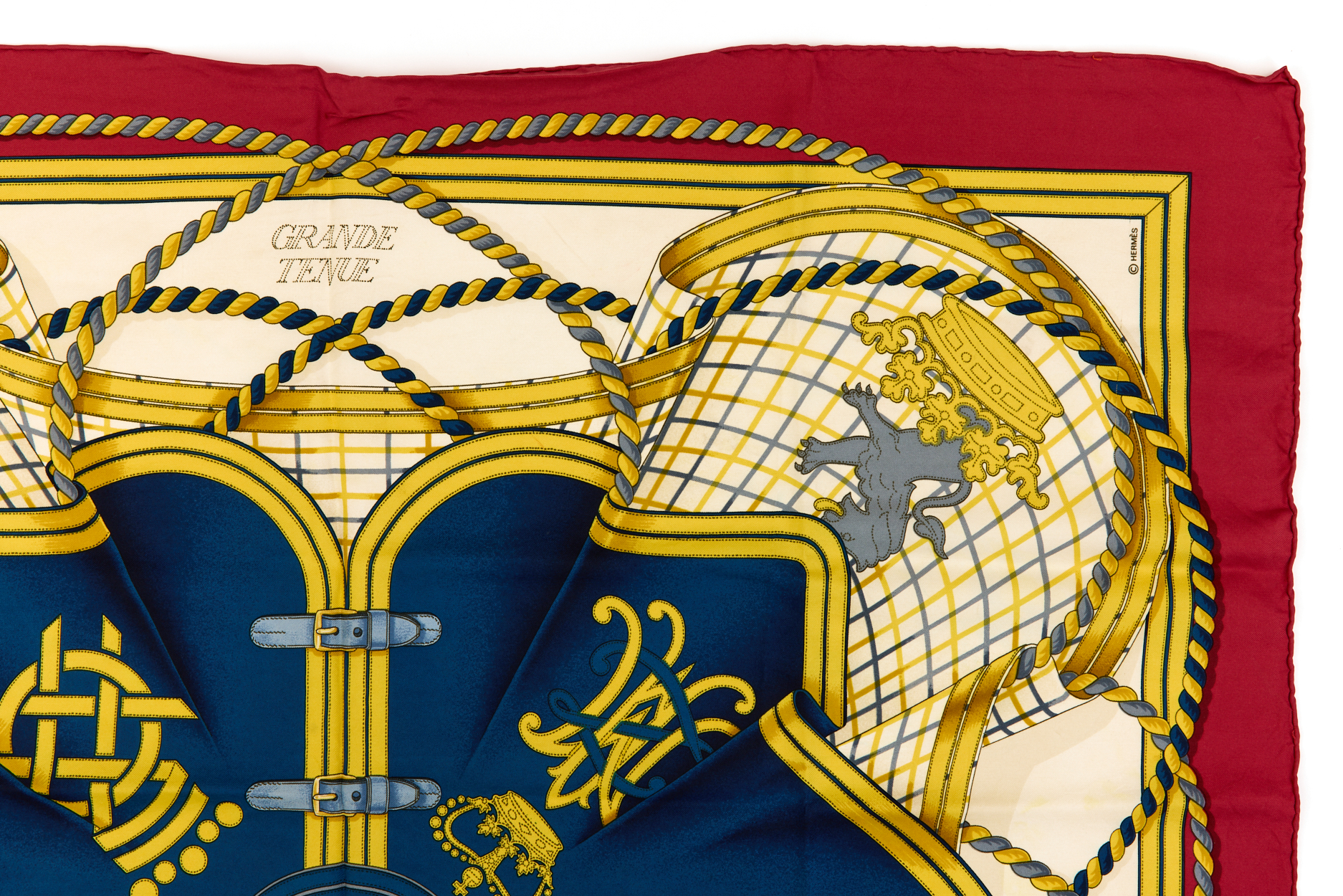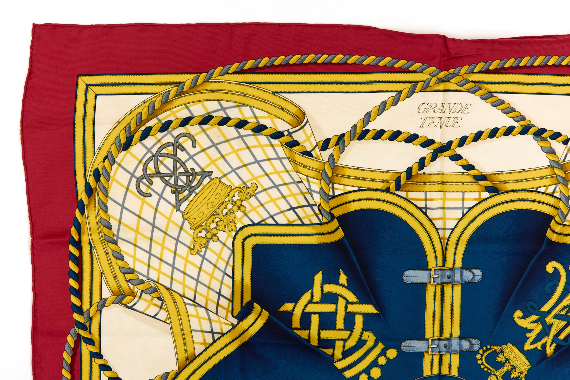 Hermes Silk Scarf Carre 90 “GRANDE TENUE” Red Silk Scarf Brand : HERMESDesign by Henri D’origny Issued 1993Item : ScarfSize : 88.5cm * 88.5cmMaterial : 100% SilkCondition Score: B+*For reference. The condition shown in the image takes precedence.*Please see the last two photos to see if the tag is still attached